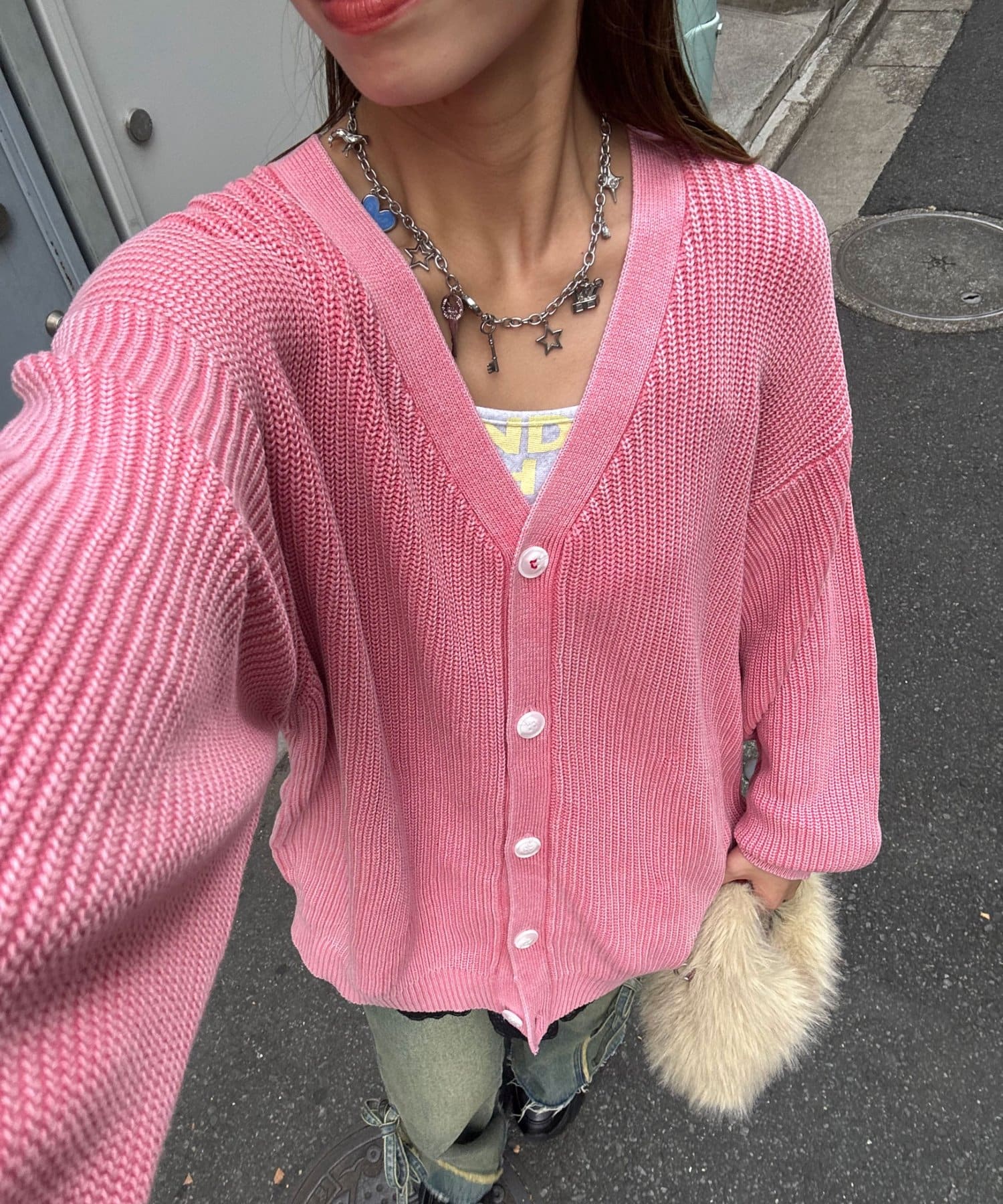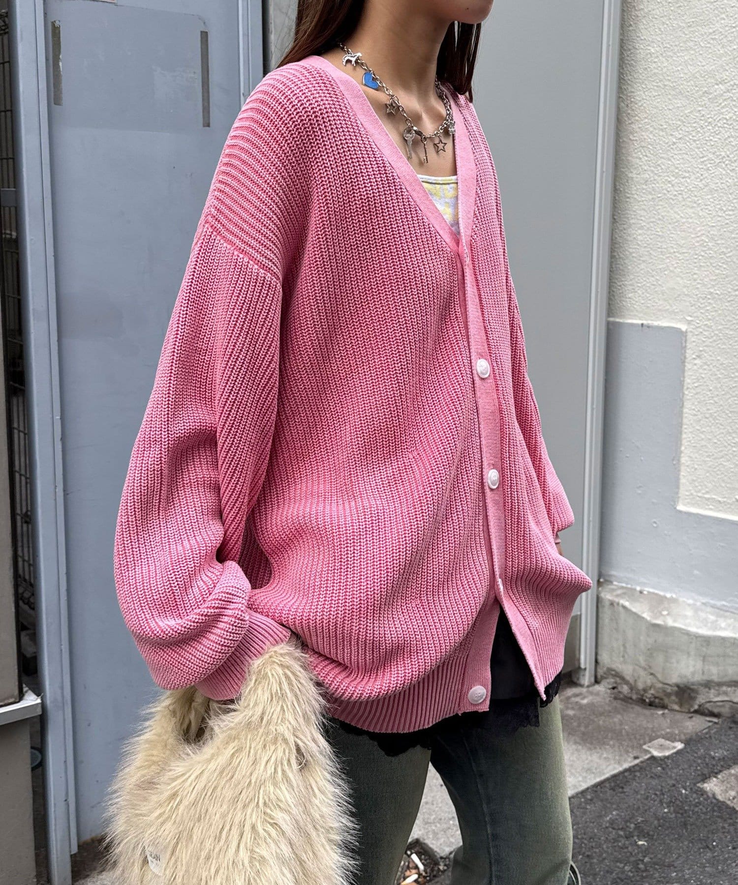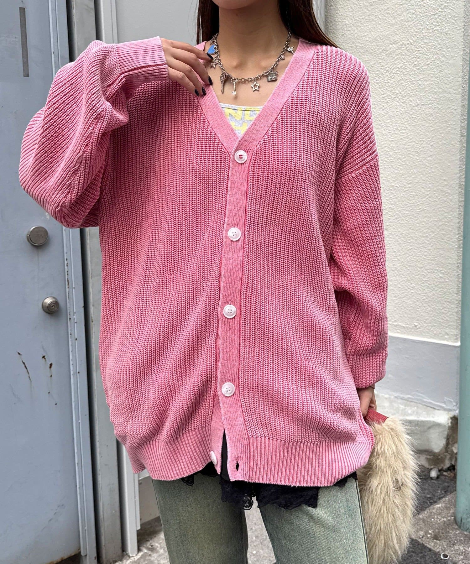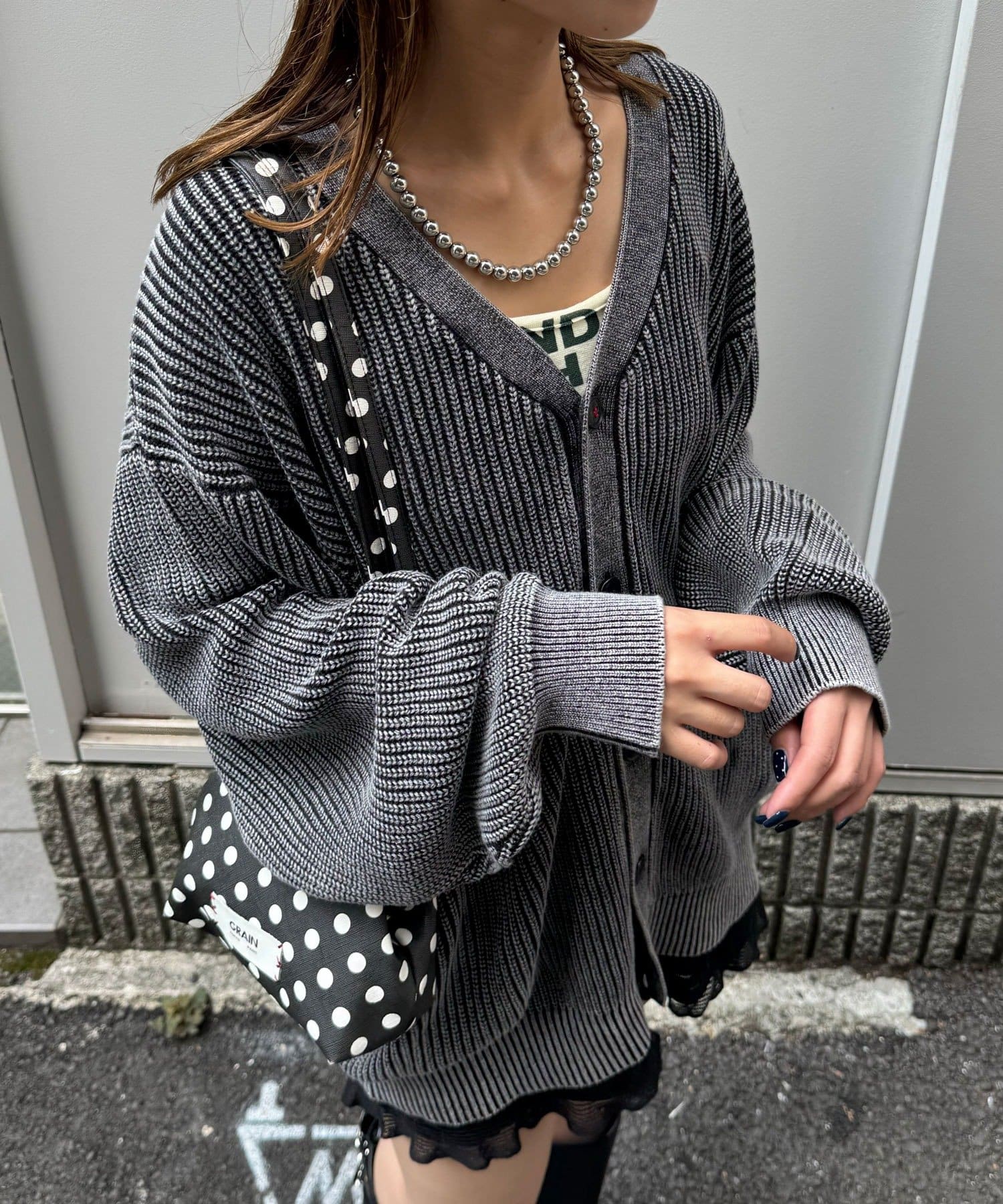 ストーンウォッシュ加工で、ヴィンテージライクな雰囲気に仕上げたニットカーディガン。
