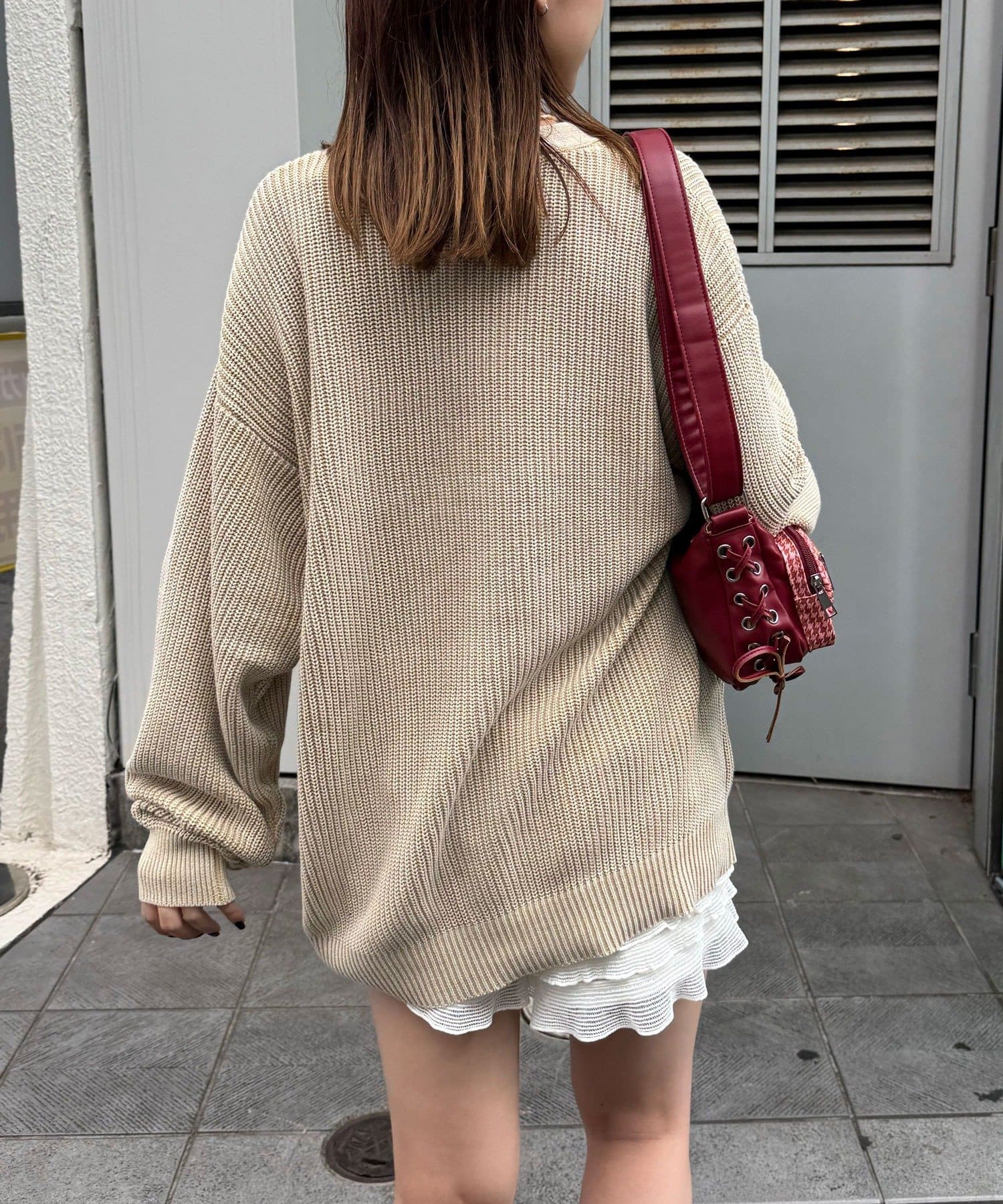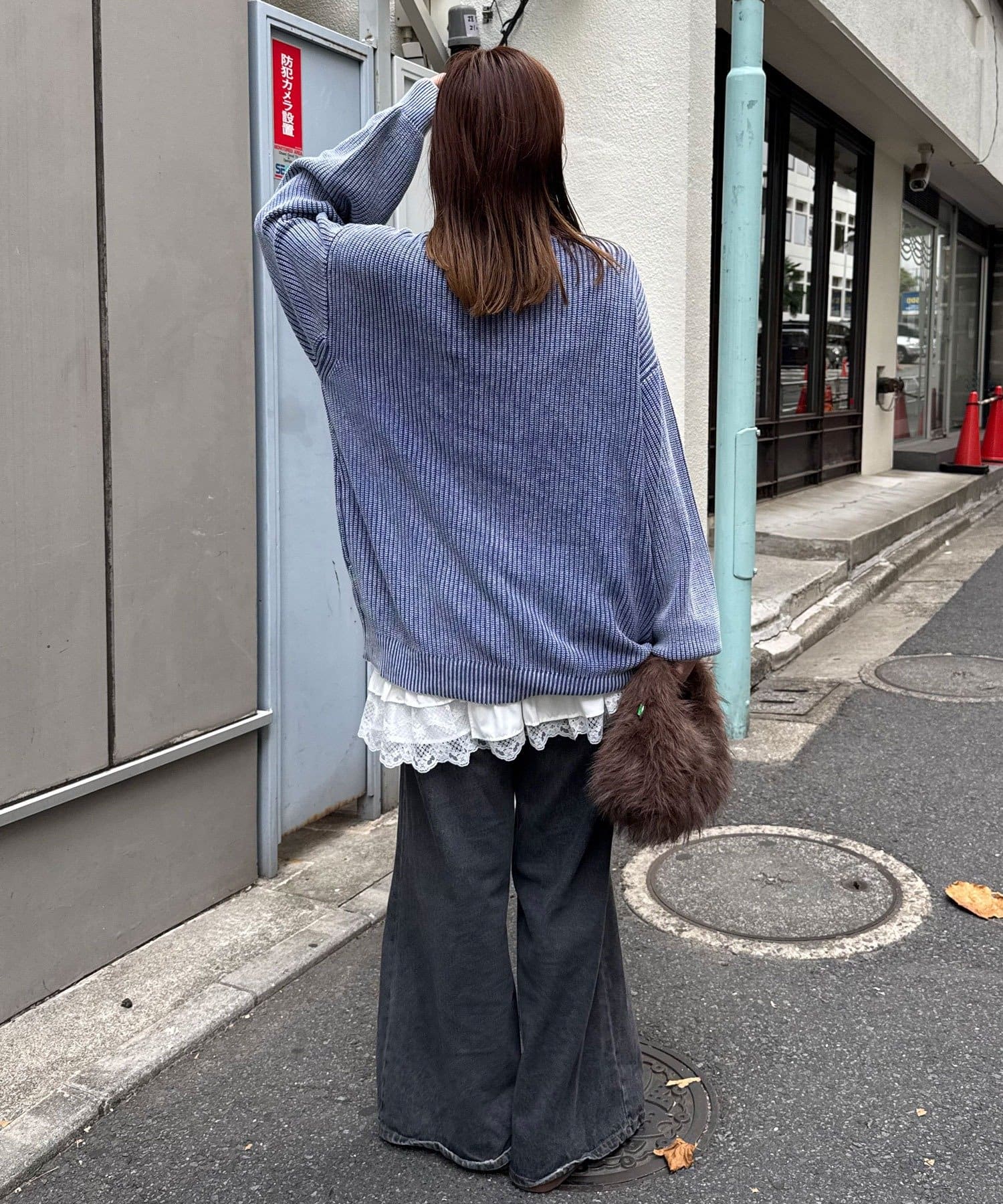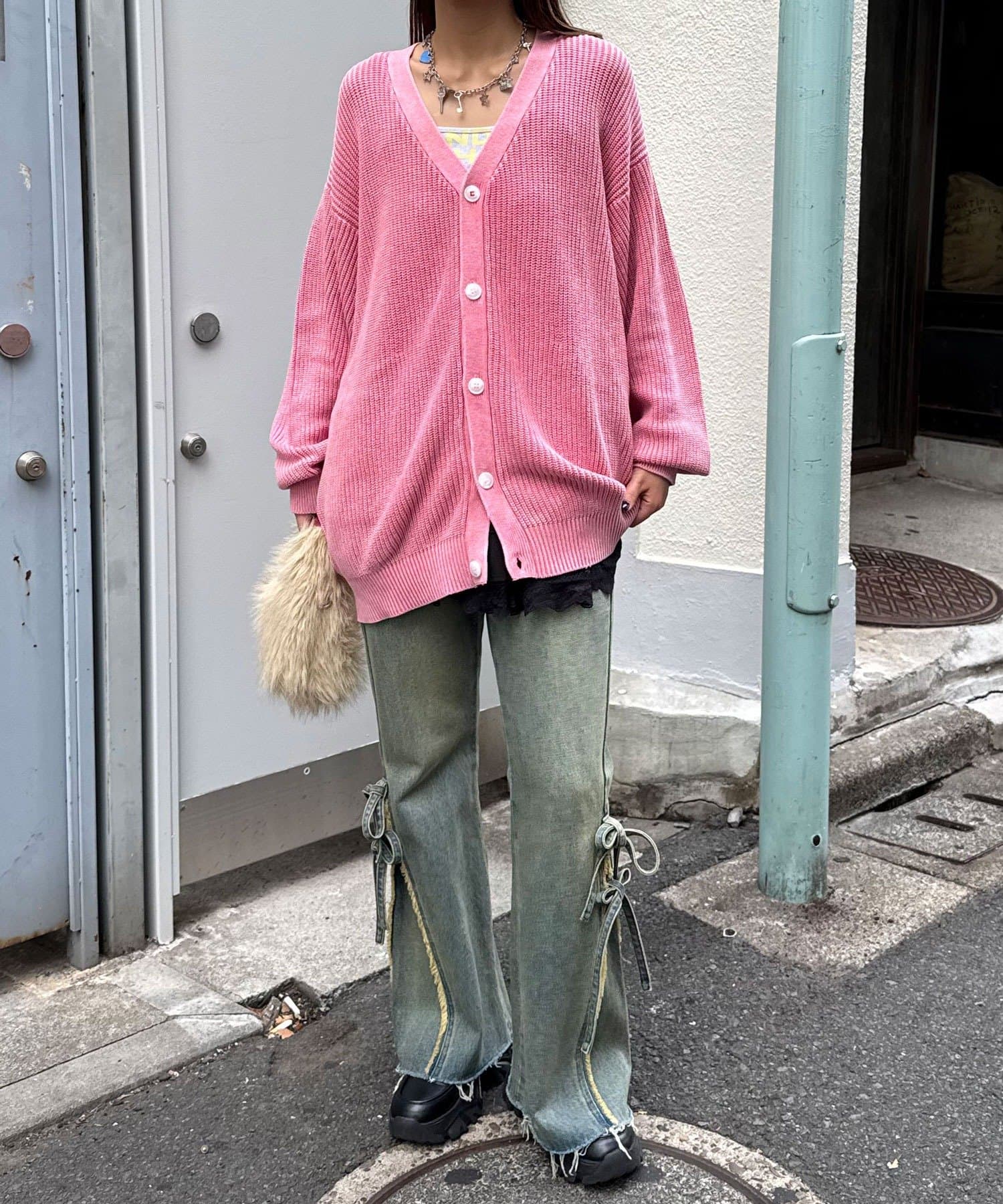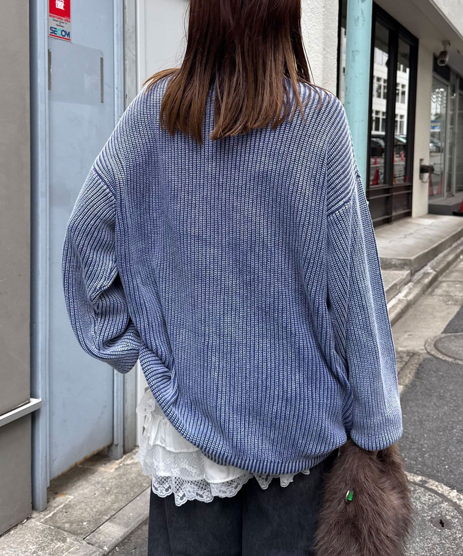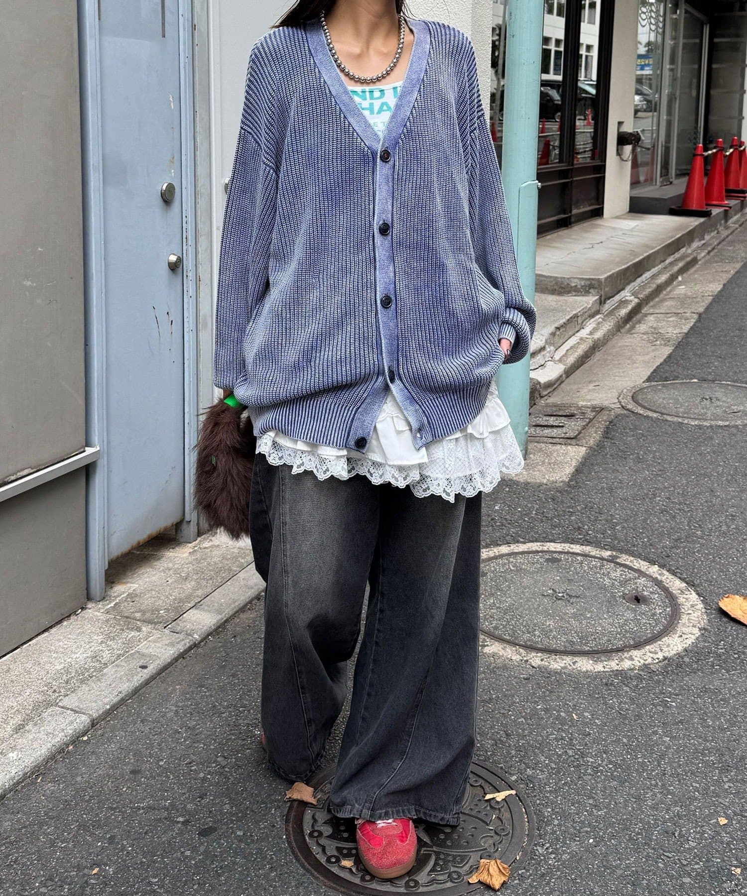ストーンウォッシュ加工で、ヴィンテージライクな雰囲気に仕上げたニットカーディガン。