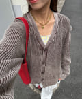 ストーンウォッシュ加工で、ヴィンテージライクな雰囲気に仕上げたニットカーディガン。