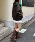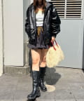 ショートワンピやレースボトムに重ねて、韓国っぽい甘辛レイヤードスタイルに。