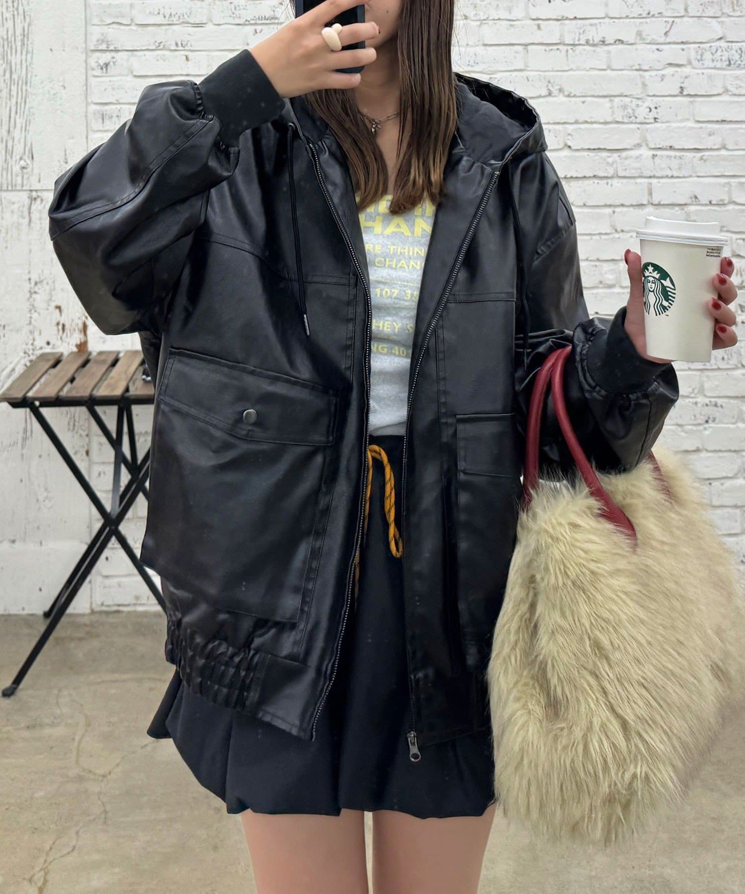 ほどよいルーズ感と存在感あるフェイクレザーの質感で、どんなスタイルにも今っぽさをプラスしてくれます。