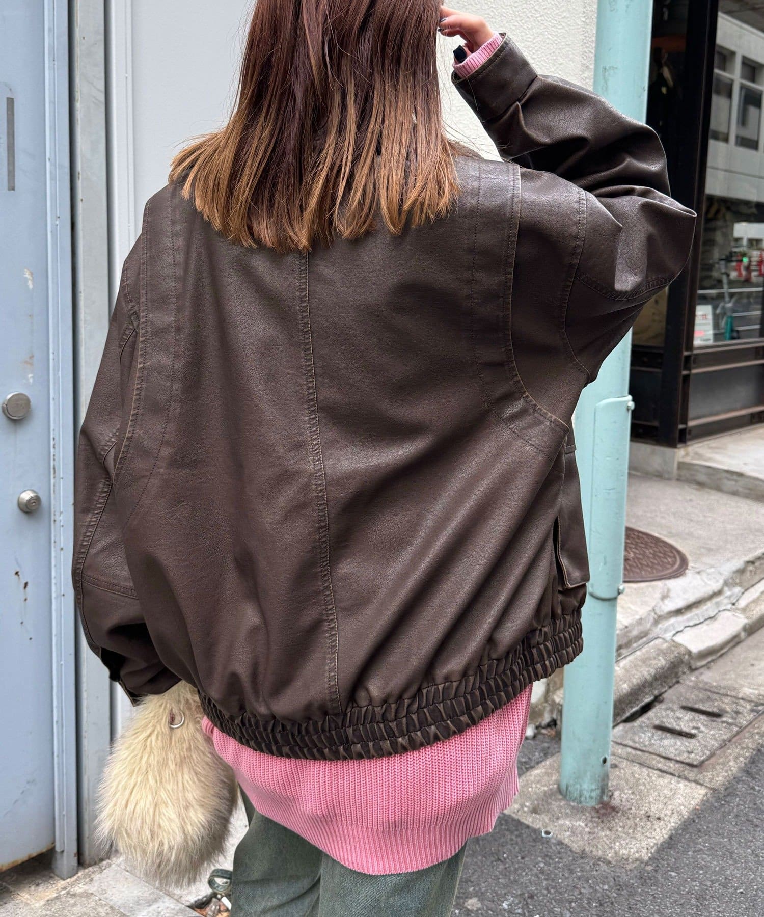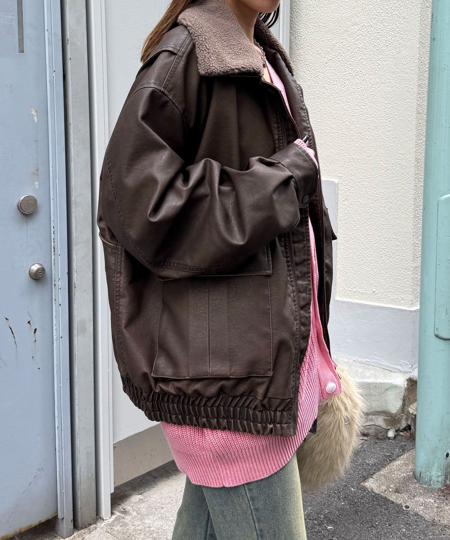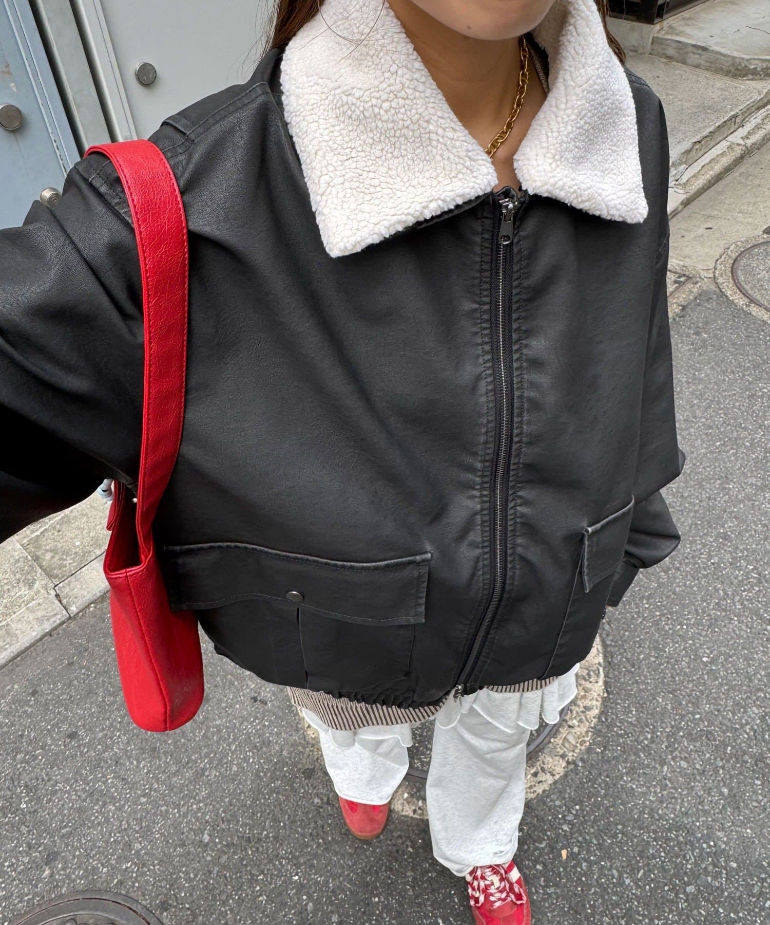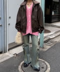 ヴィンテージライクなフェイクレザーを使用したブルゾン。