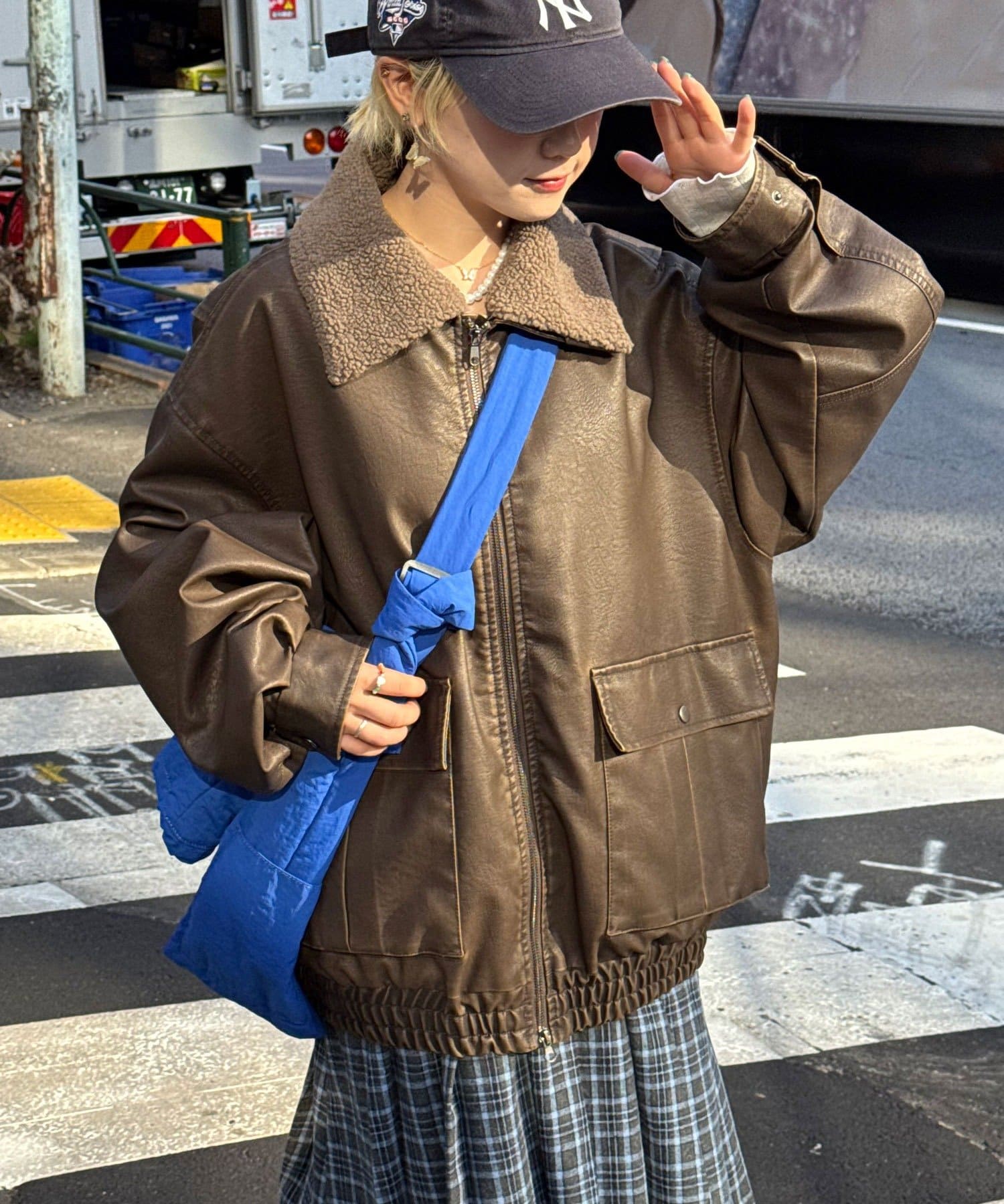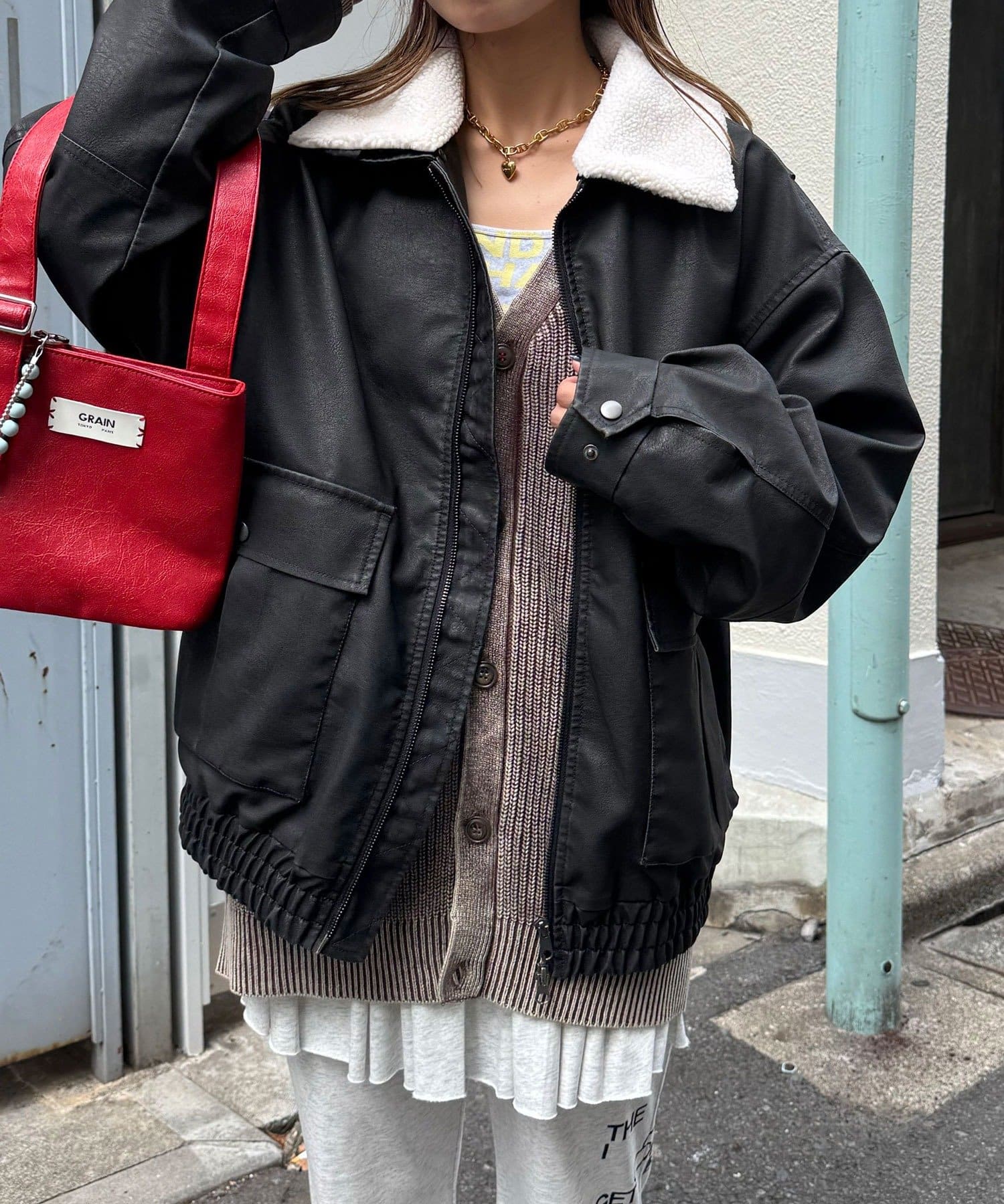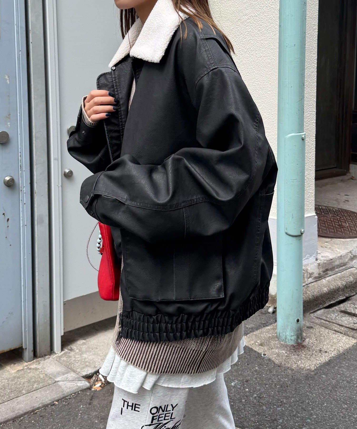 ヴィンテージライクなフェイクレザーを使用したブルゾン。