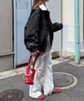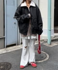ダブルジップ仕様と大きめのフラップポケットで、機能性とデザイン性を兼ね備えた一着です。
