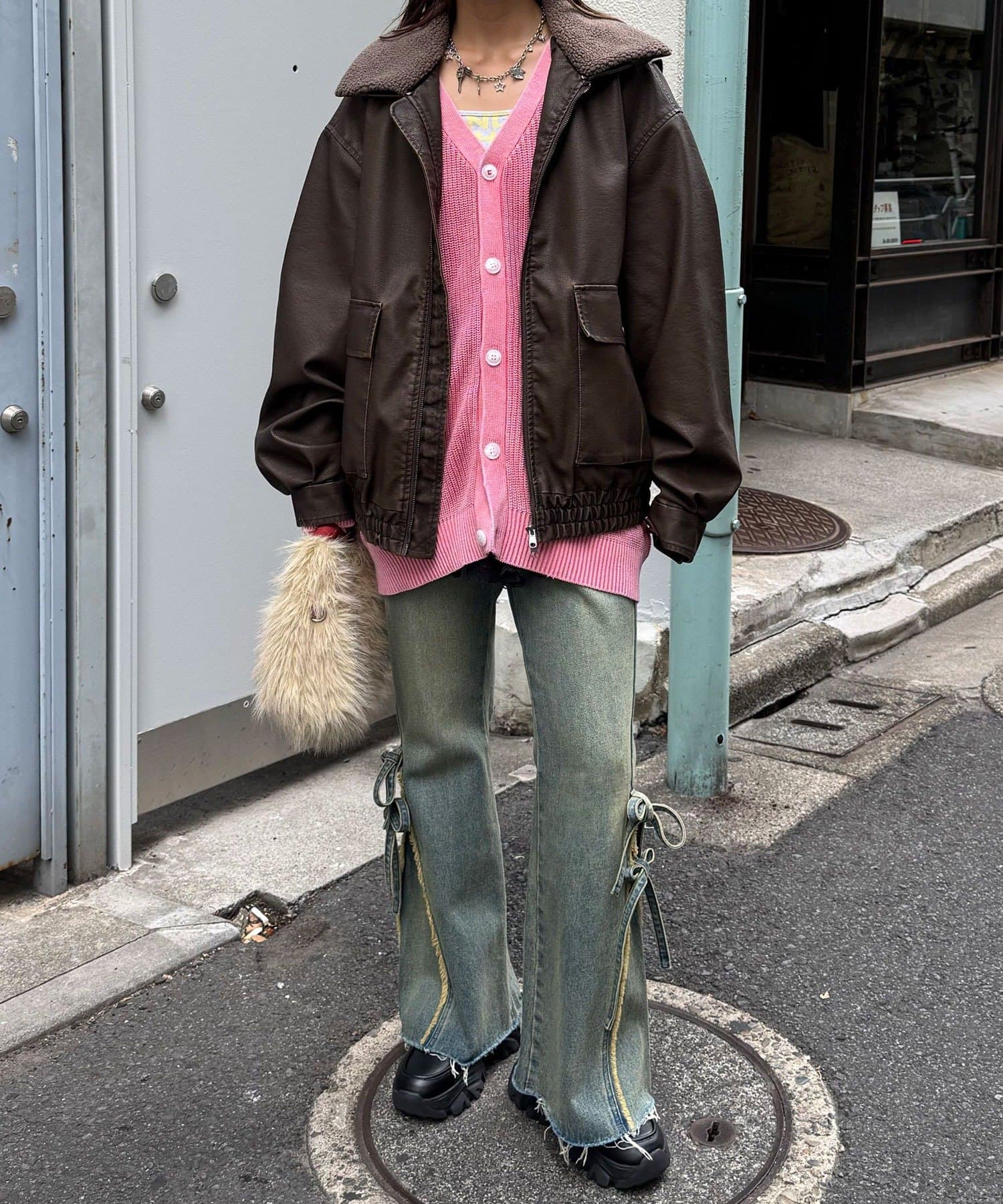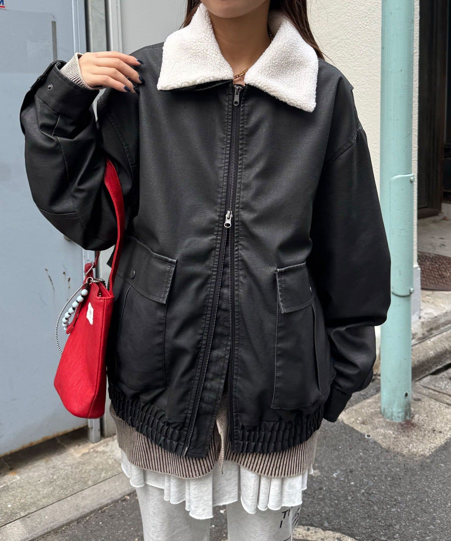 取り外し可能なボア襟で、シーズンや気分に合わせて2WAYの着こなしが楽しめます。