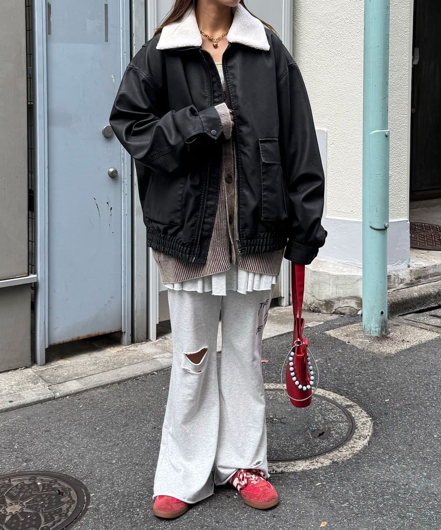 スウェットパンツやスカートに羽織るだけで、旬なリラックスコーデに。