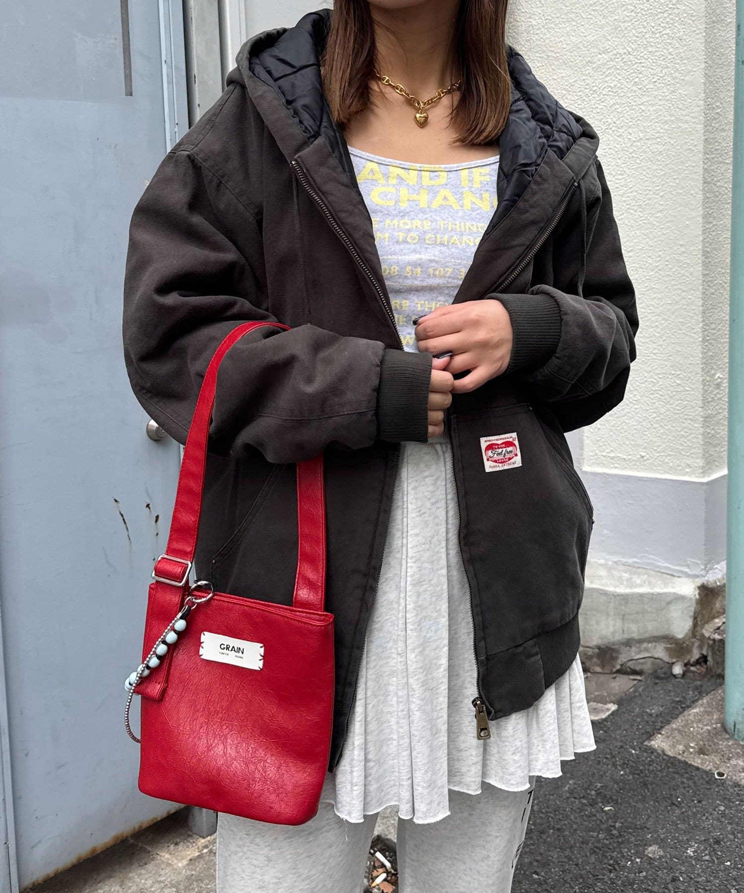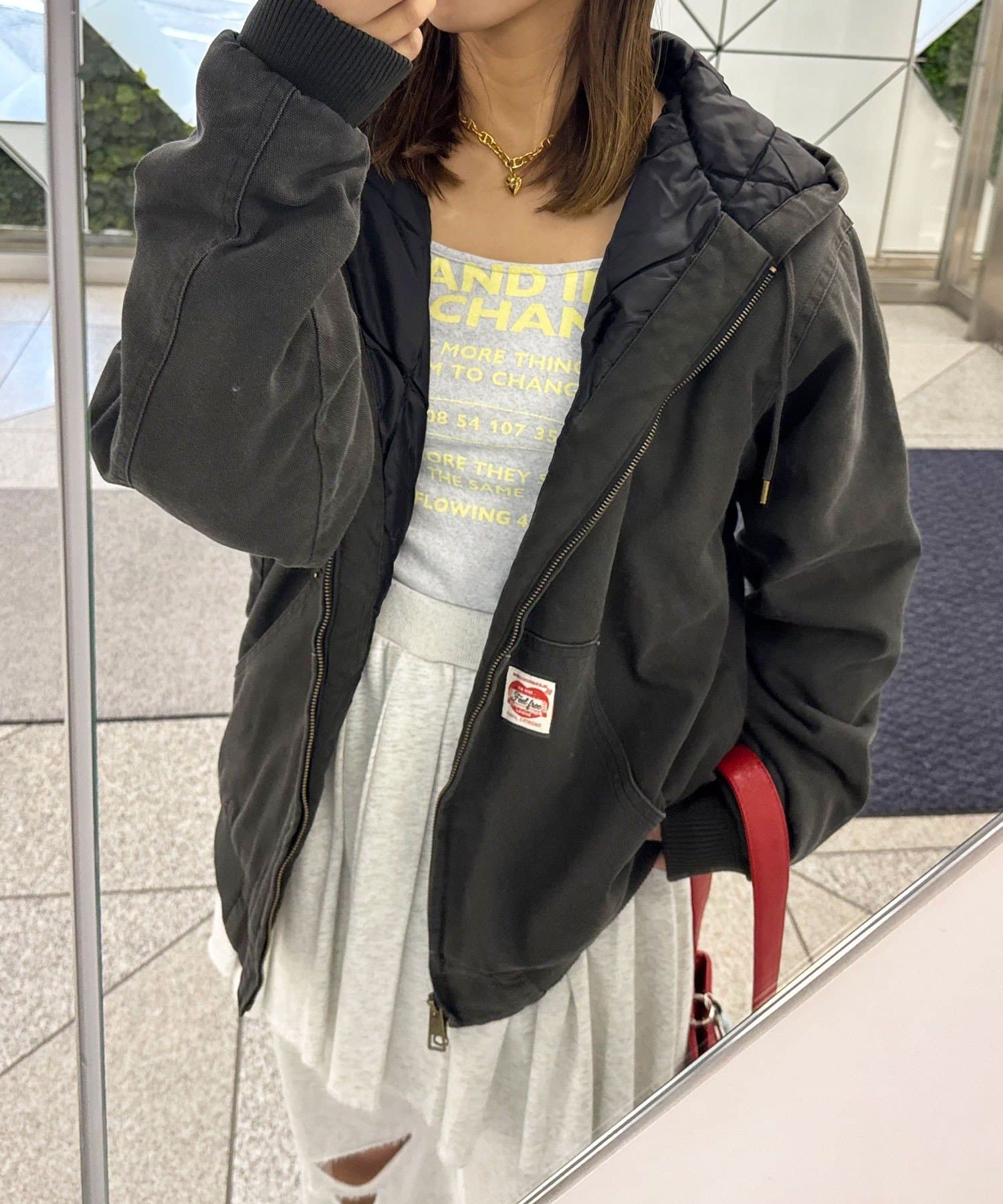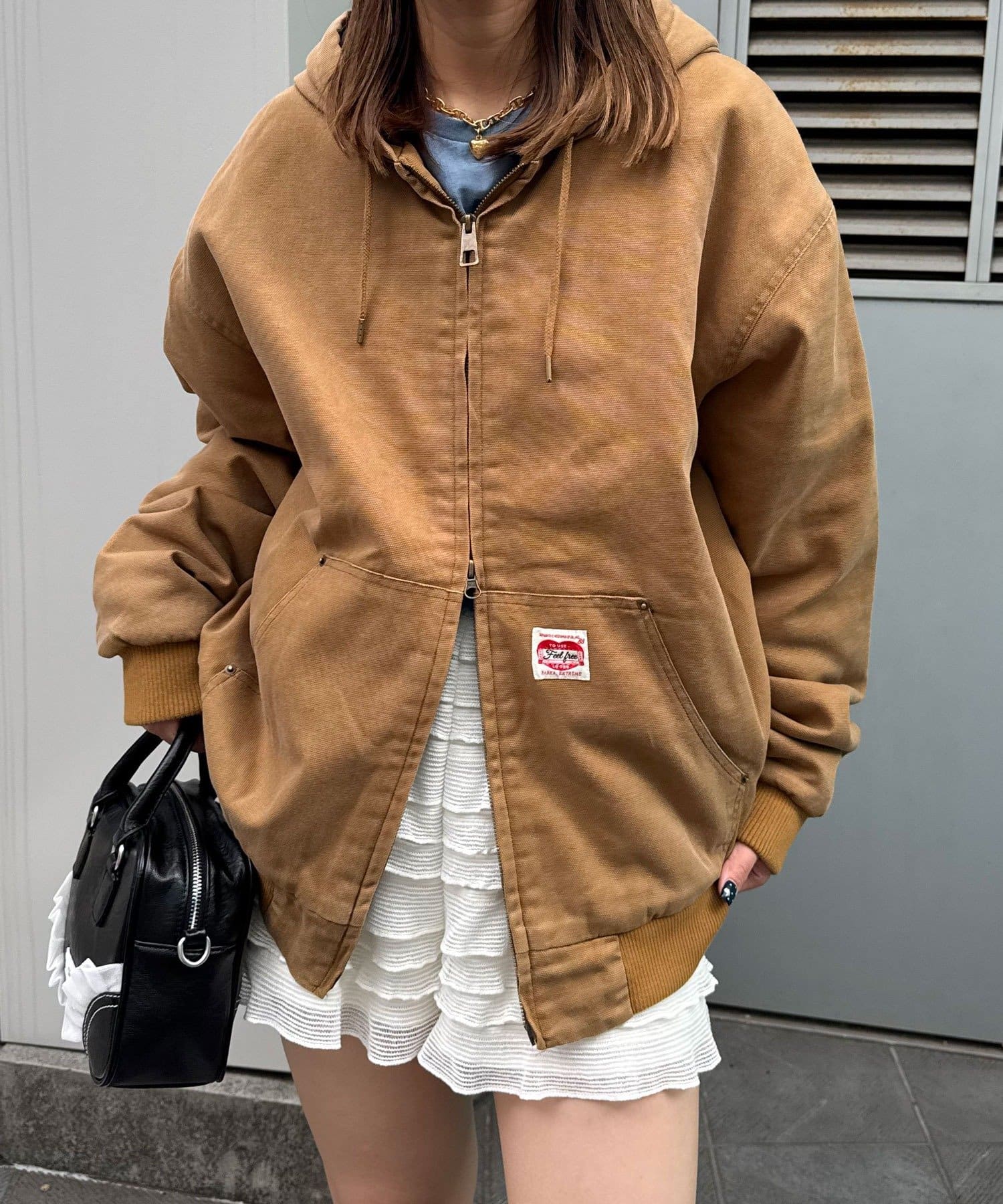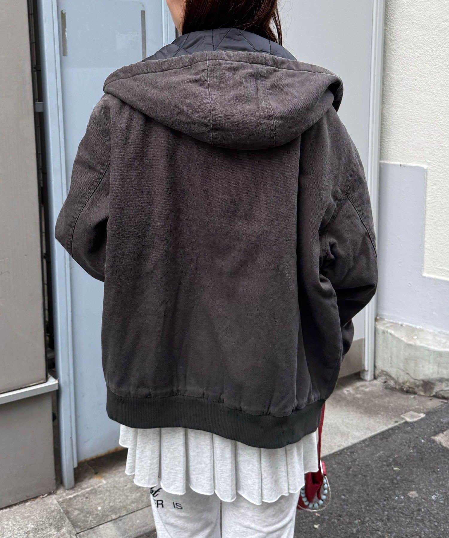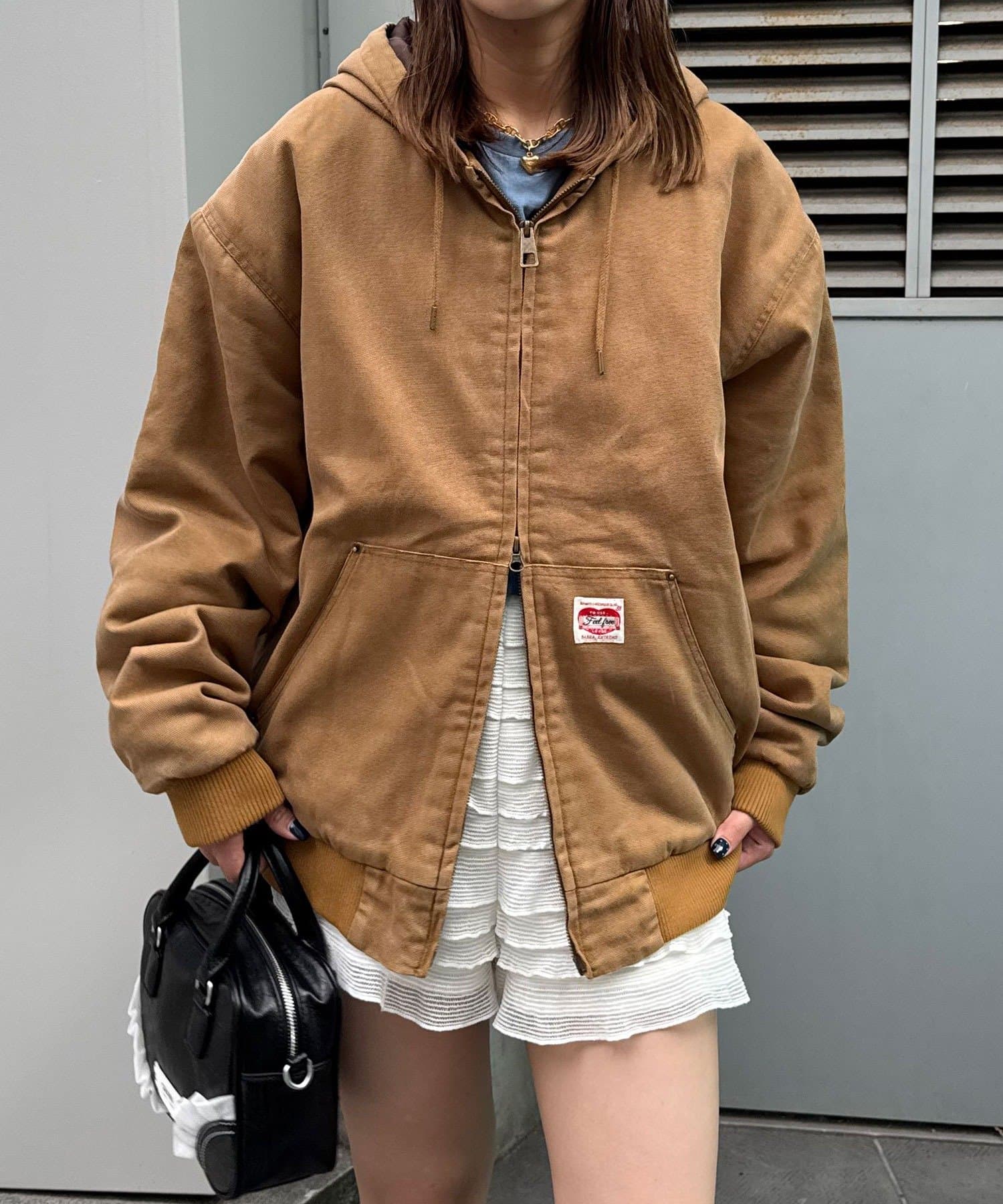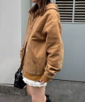 フロントのダブルジップと大きめポケットで実用性も高く、古着ライクな風合いがこなれ感を演出します。