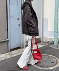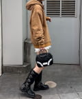 ミニスカートやワンピースに羽織れば、甘辛バランスの効いた今っぽいスタイルに。
