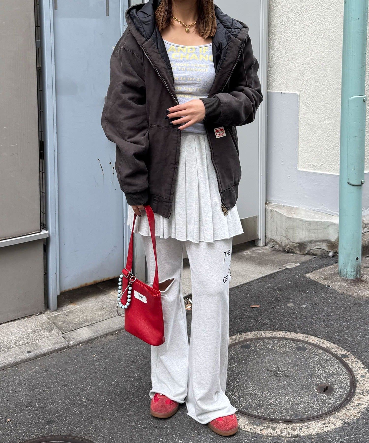 デニムやワイドパンツと合わせれば、ストリートライクな王道カジュアルが完成します。