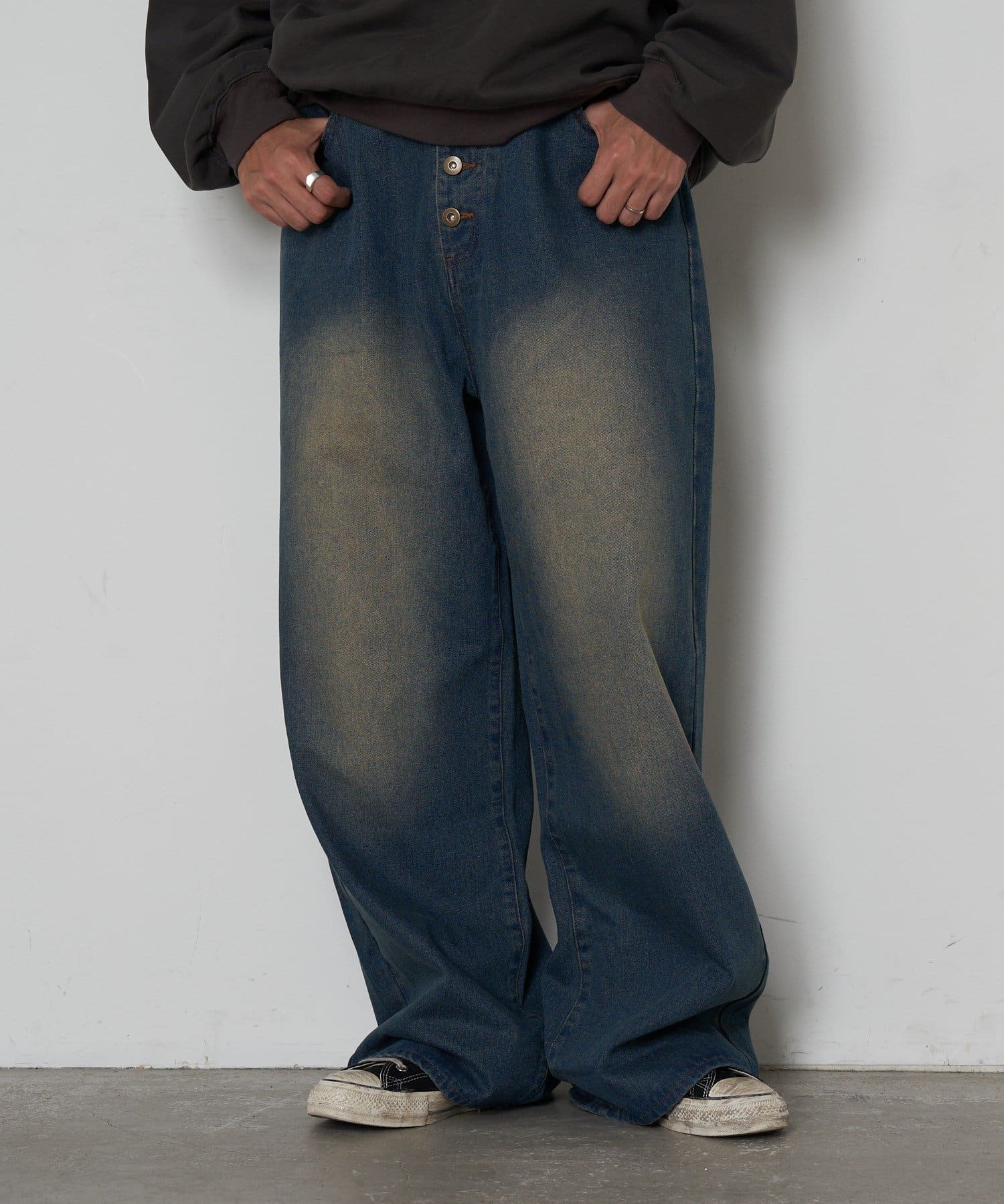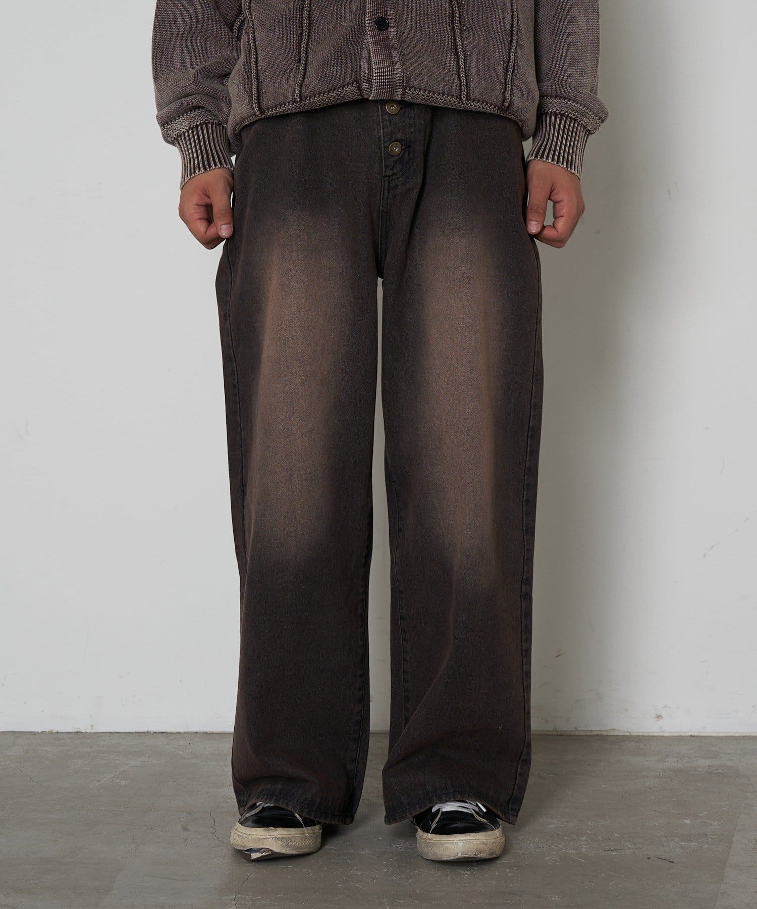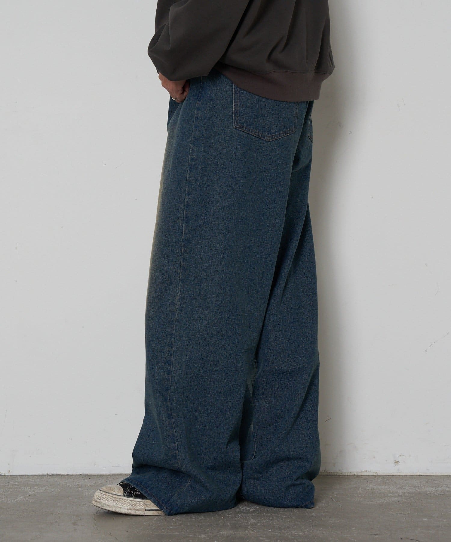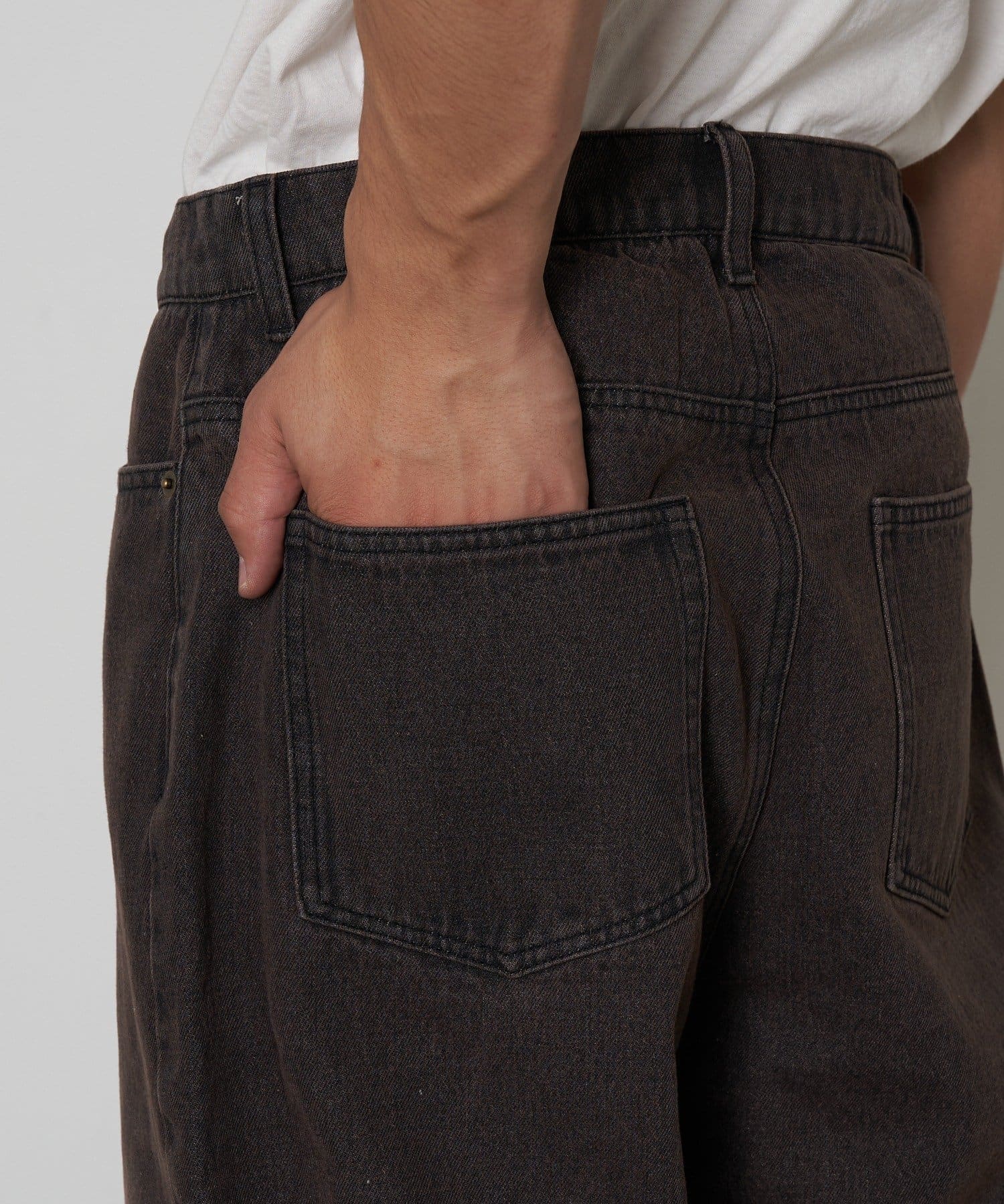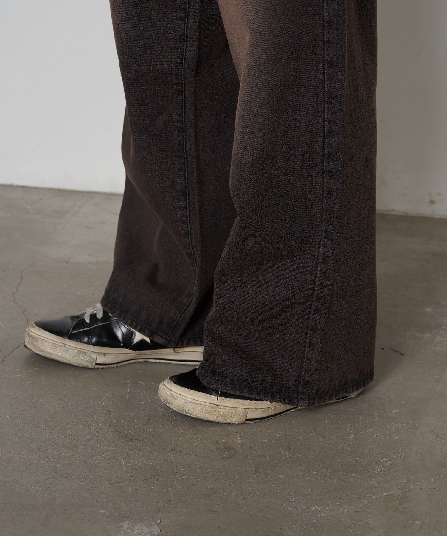 加工感のある生地と絶妙な色落ちで、こなれた古着ライクな雰囲気に。