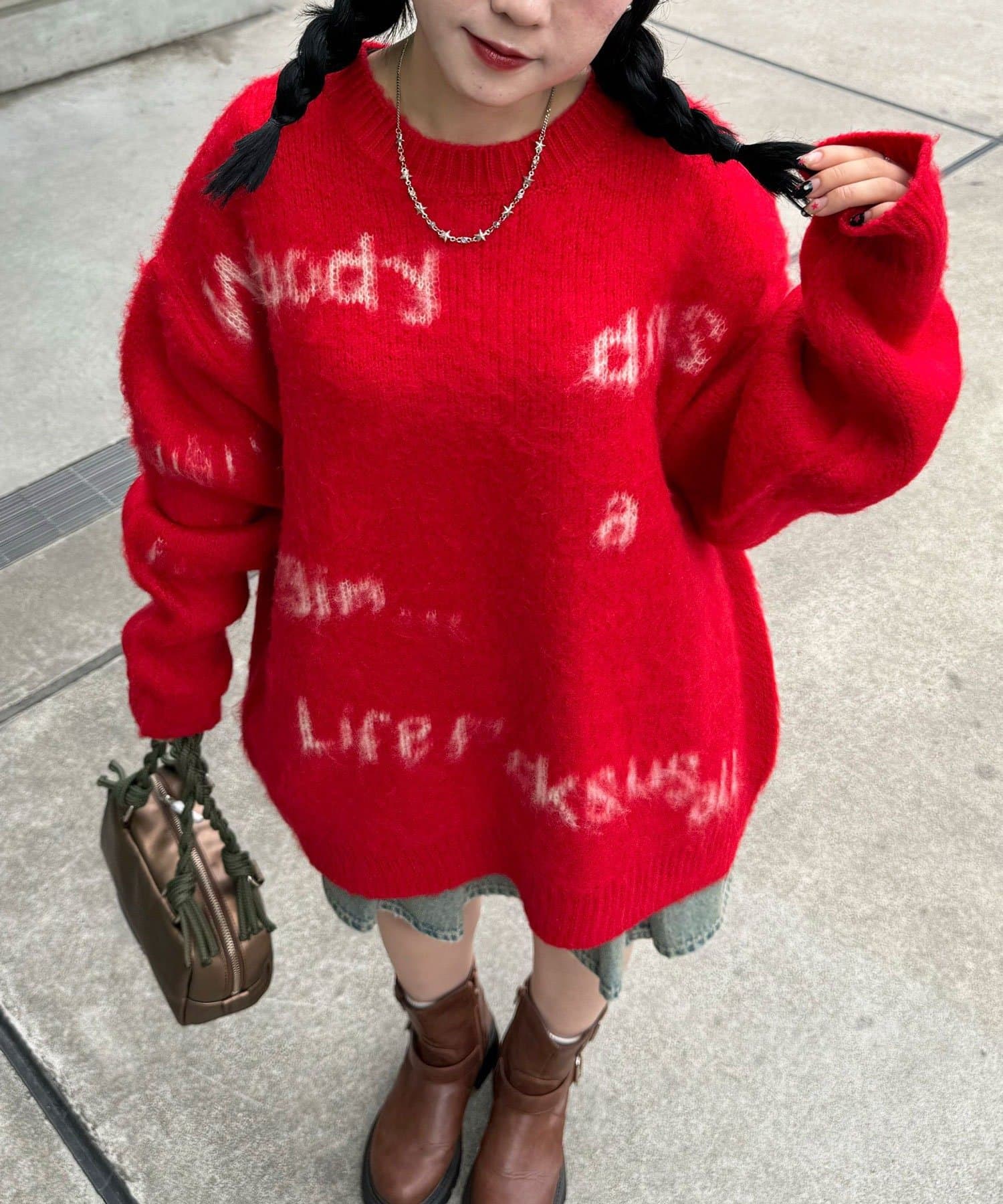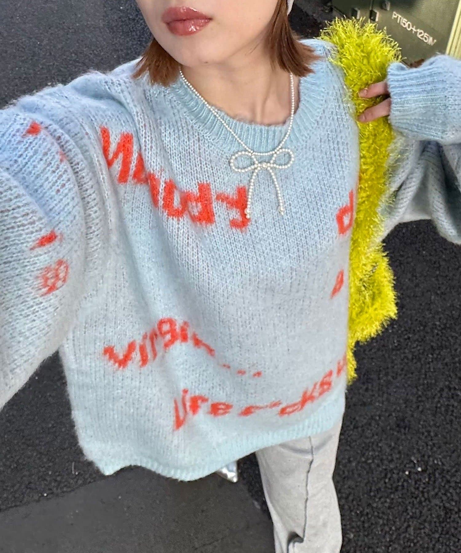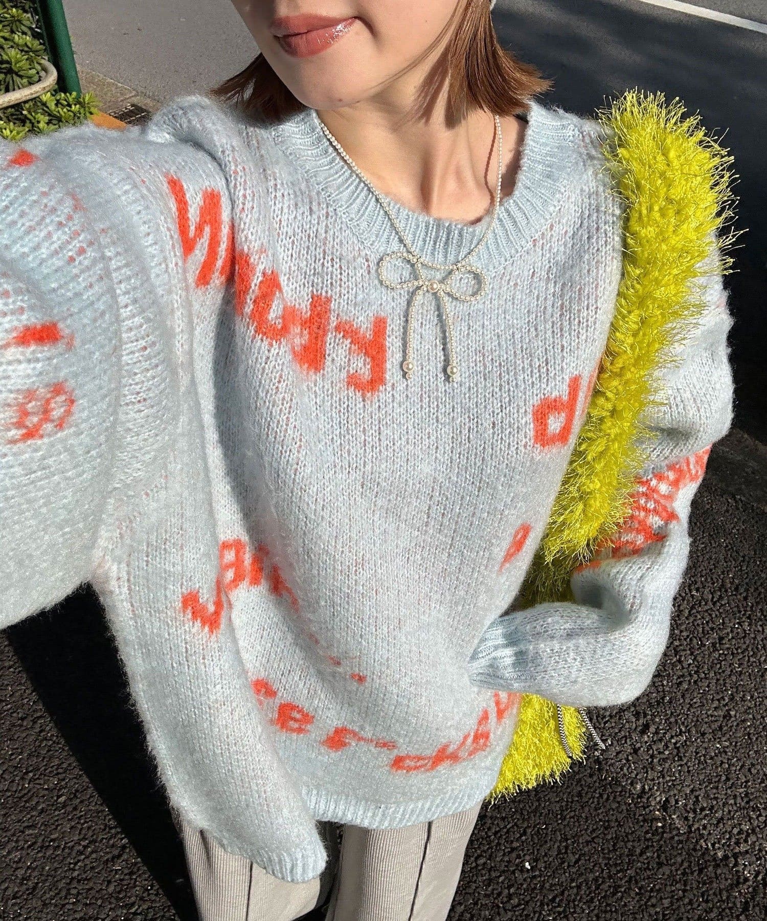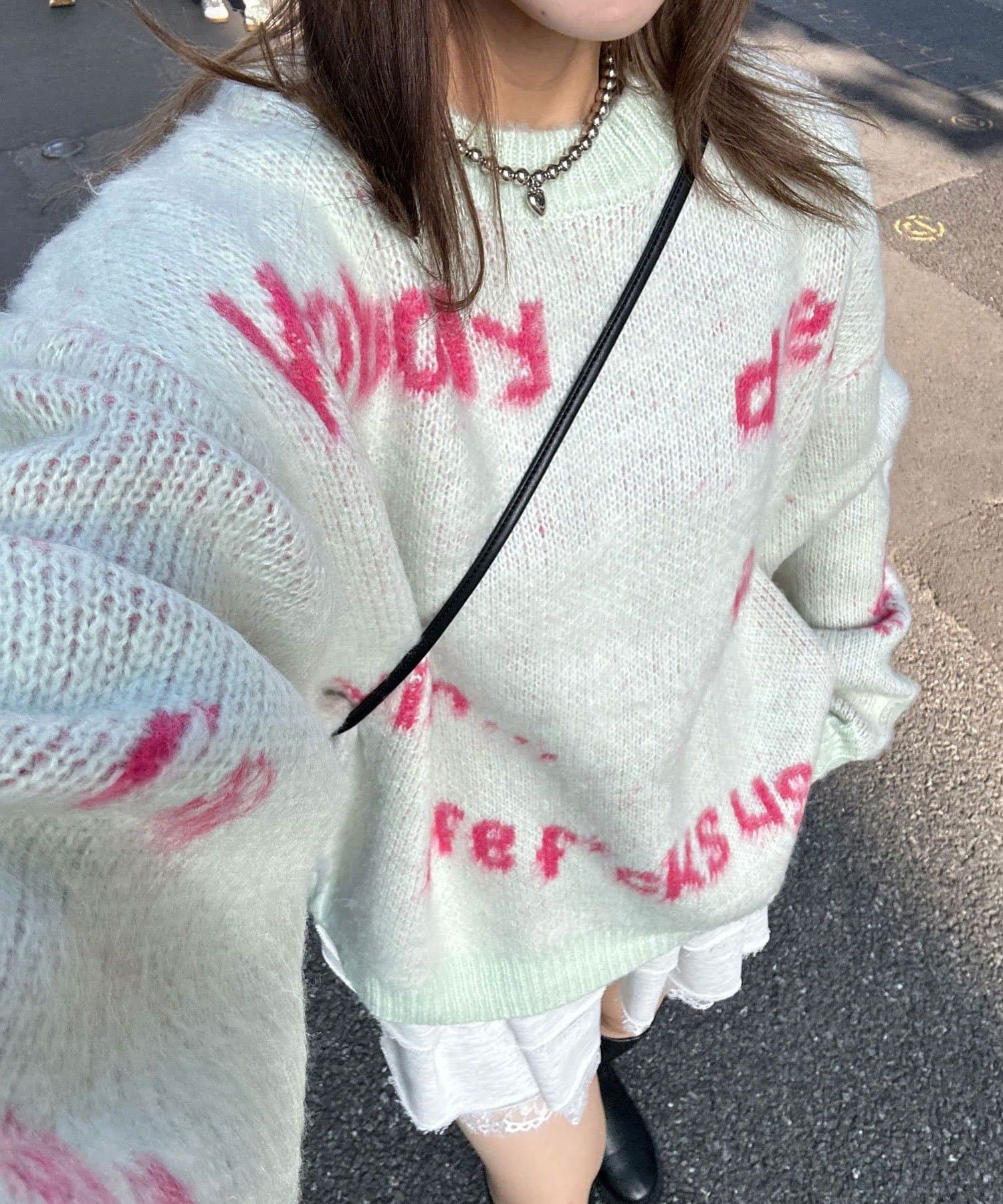 ふわふわシャギー感が可愛いオーバーサイズロゴニット。