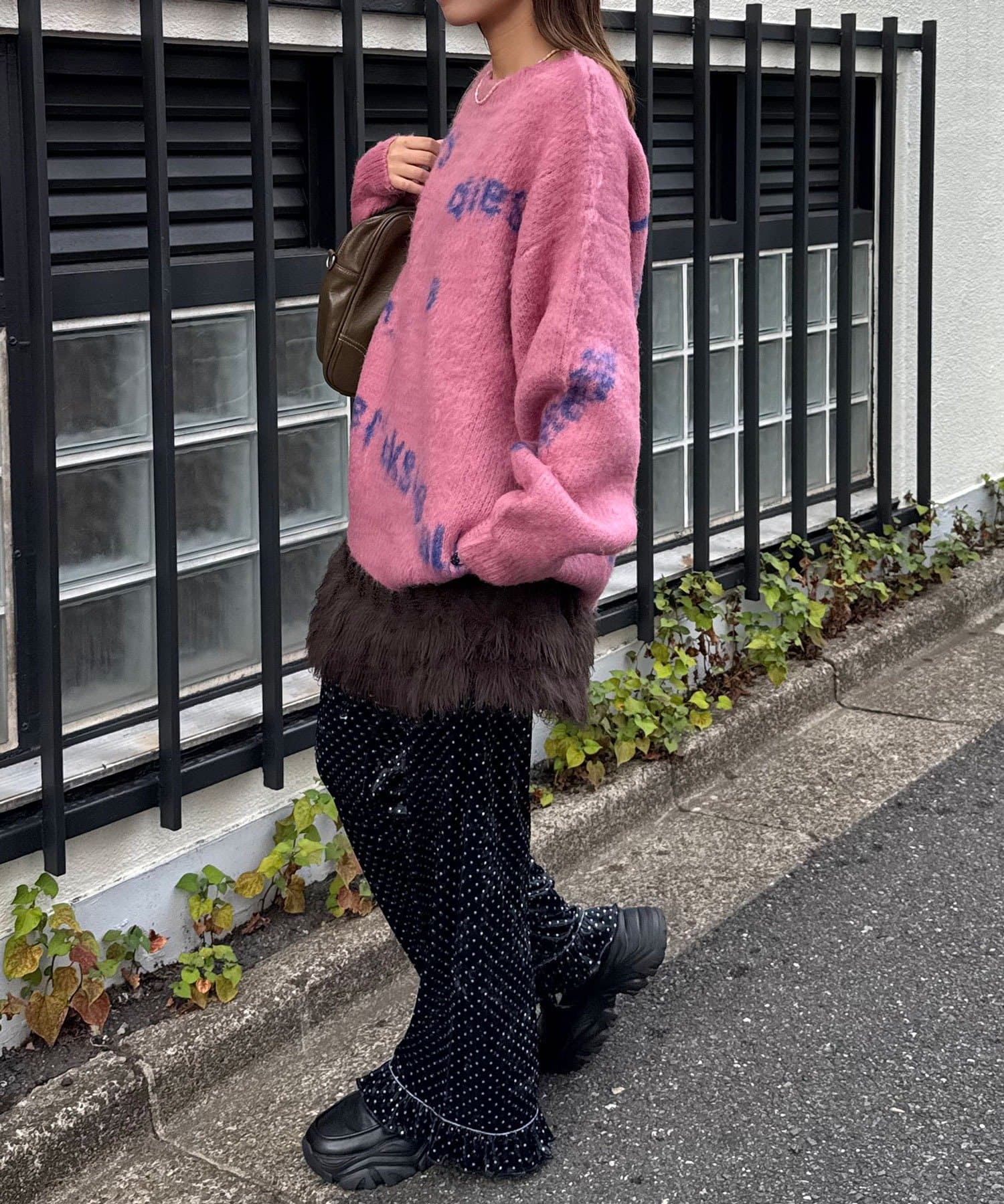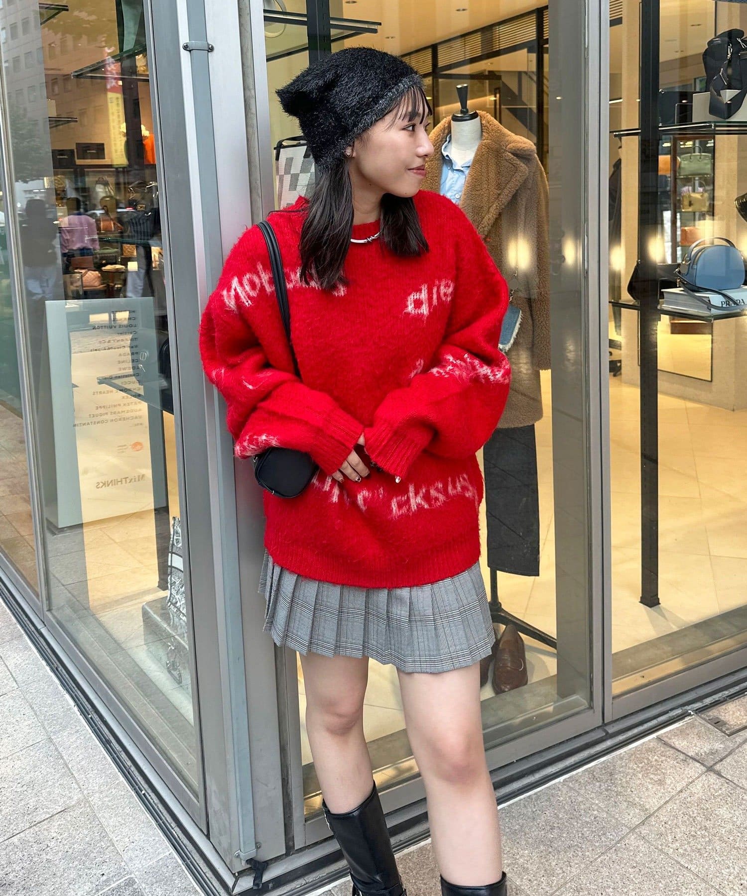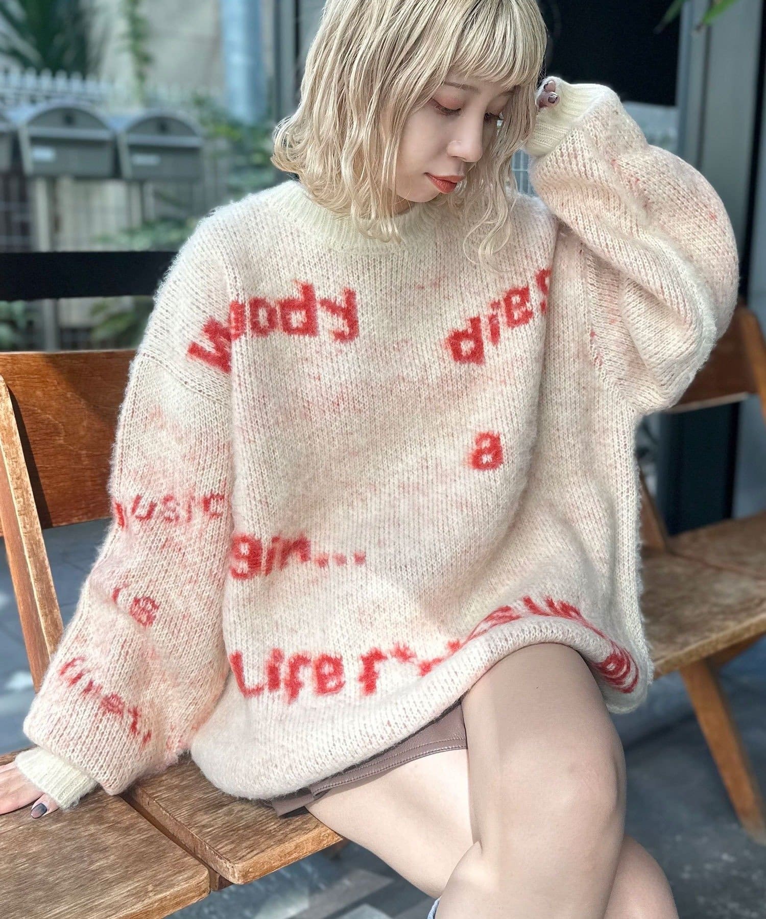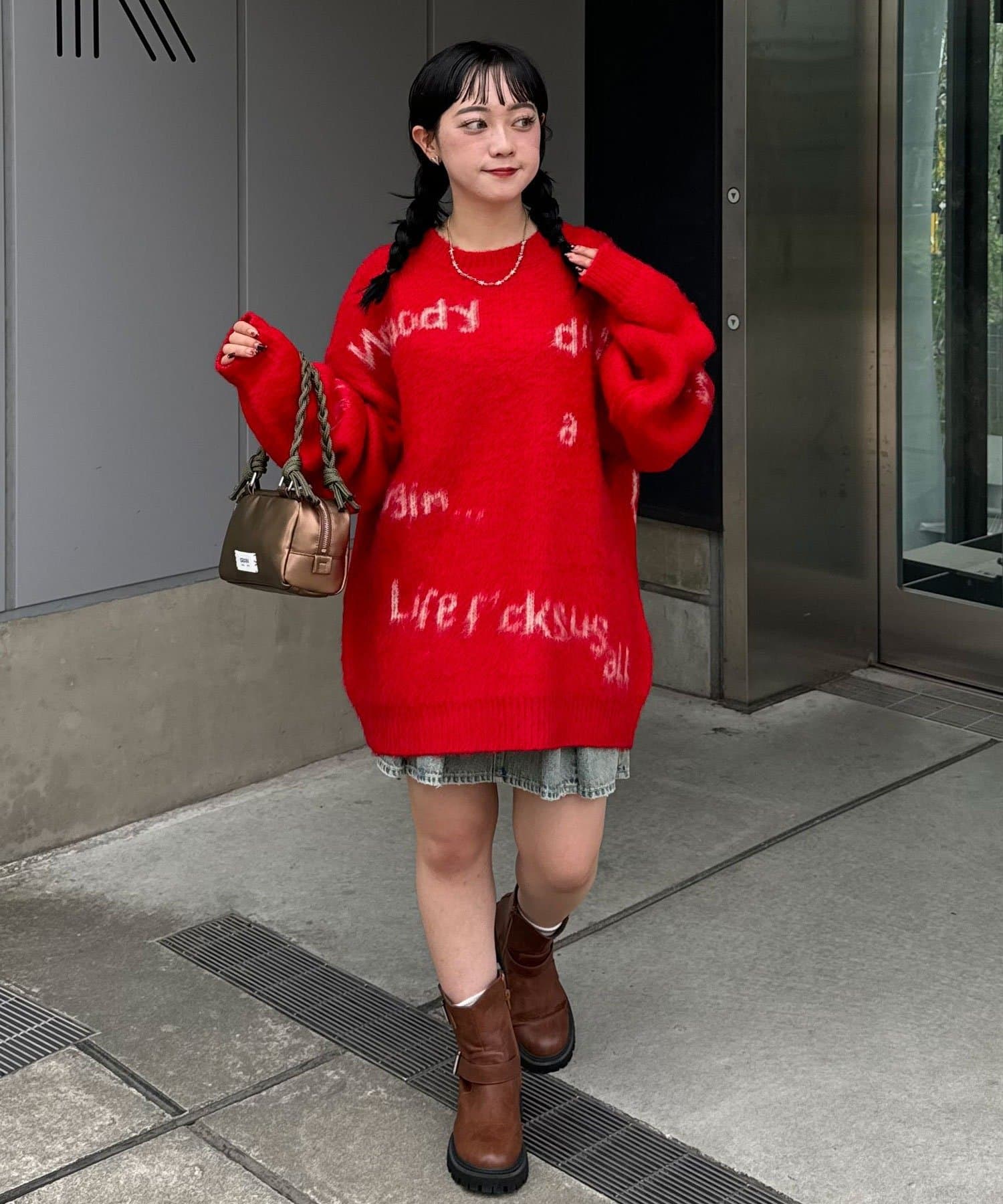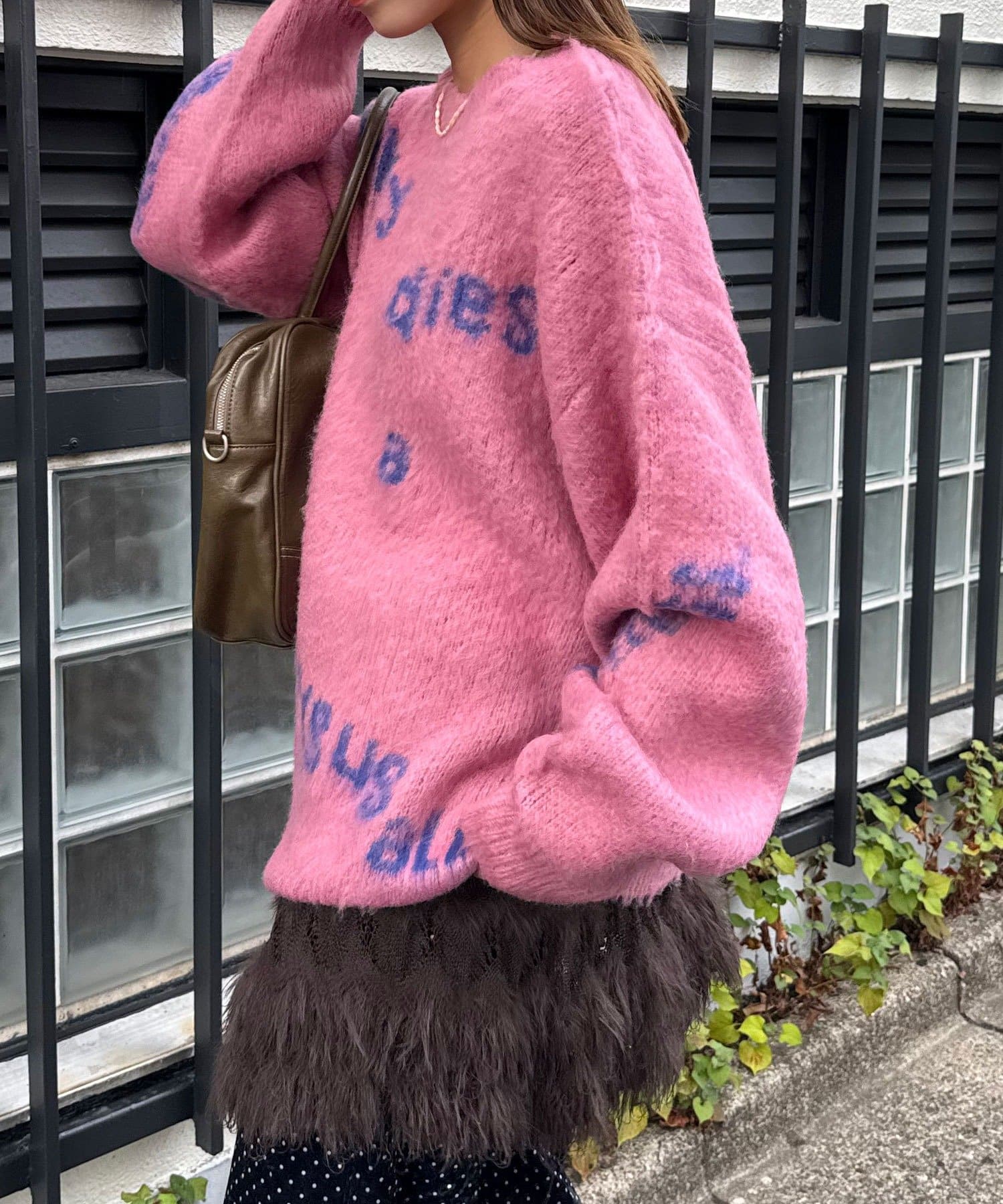 ふわふわシャギー感が可愛いオーバーサイズロゴニット。