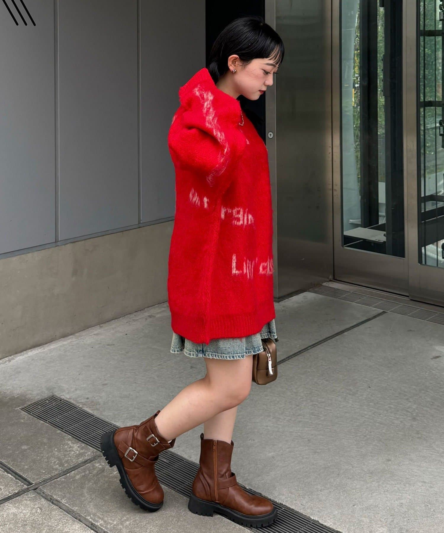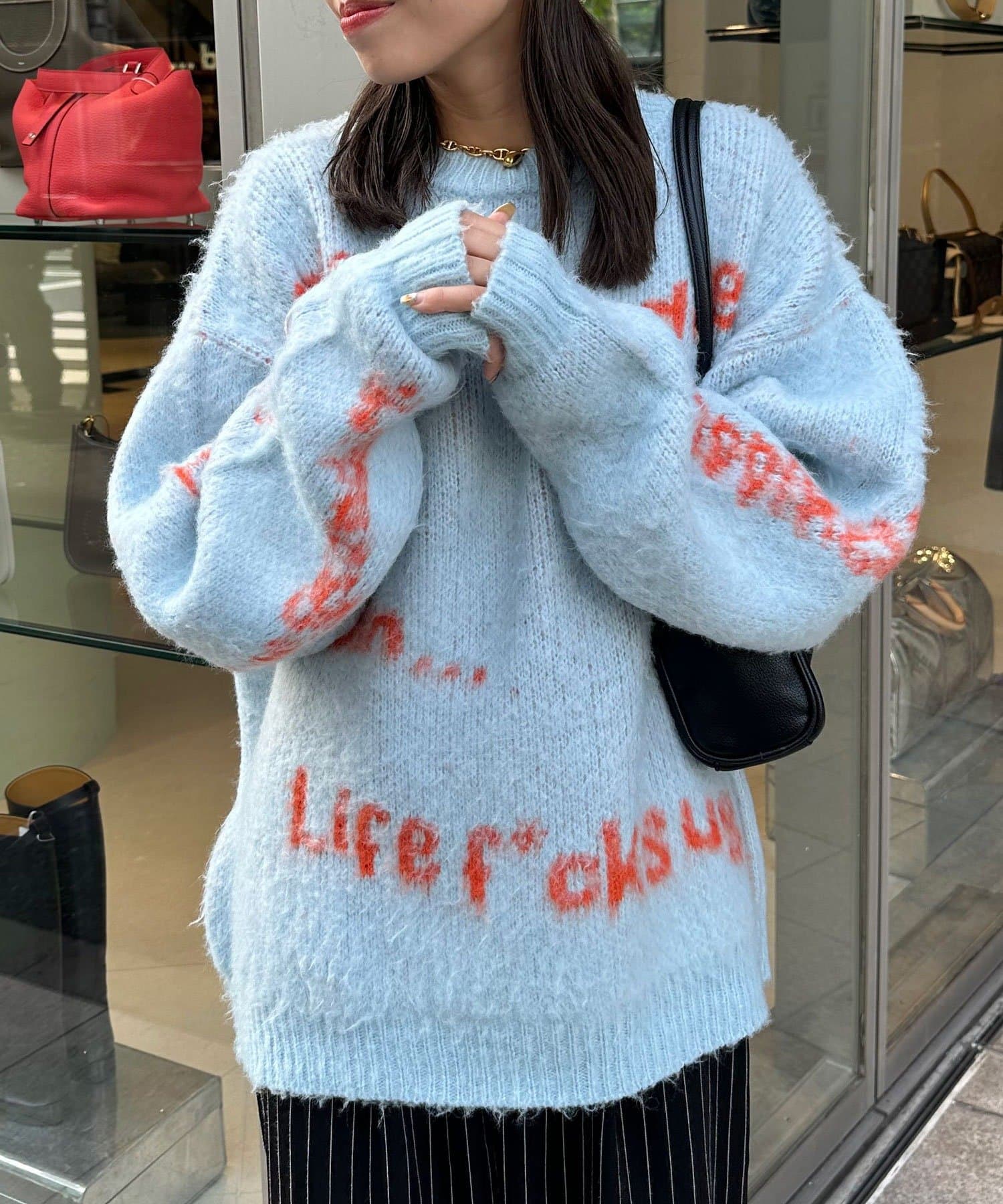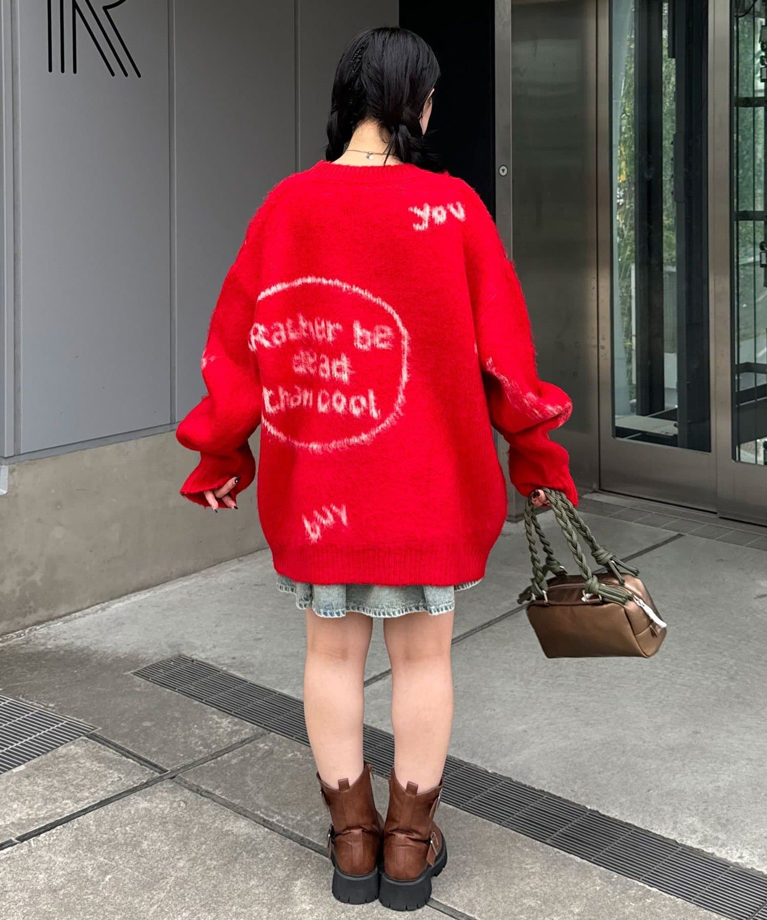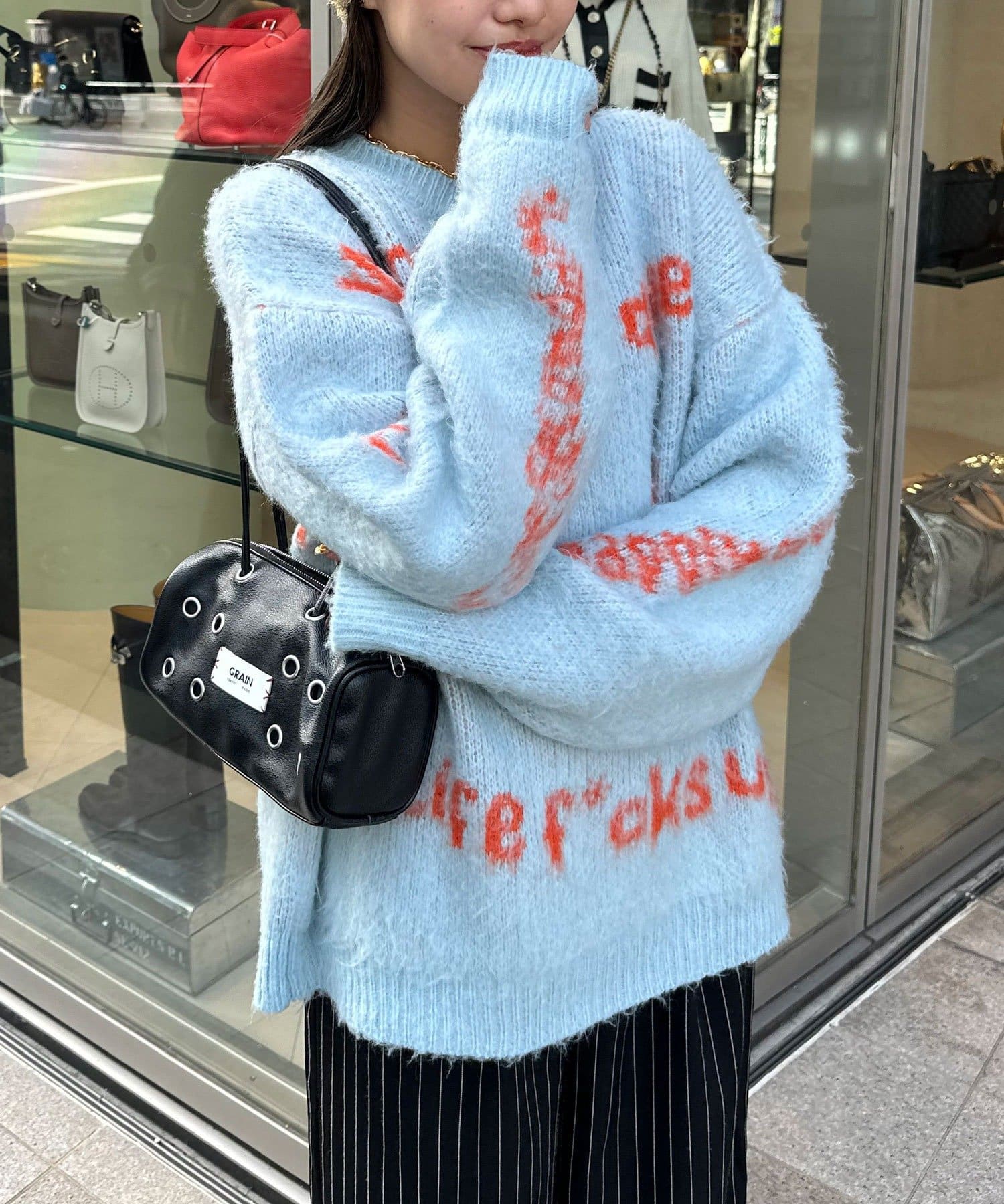 ふわふわシャギー感が可愛いオーバーサイズロゴニット。