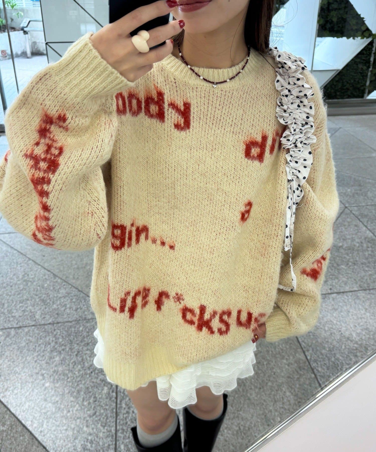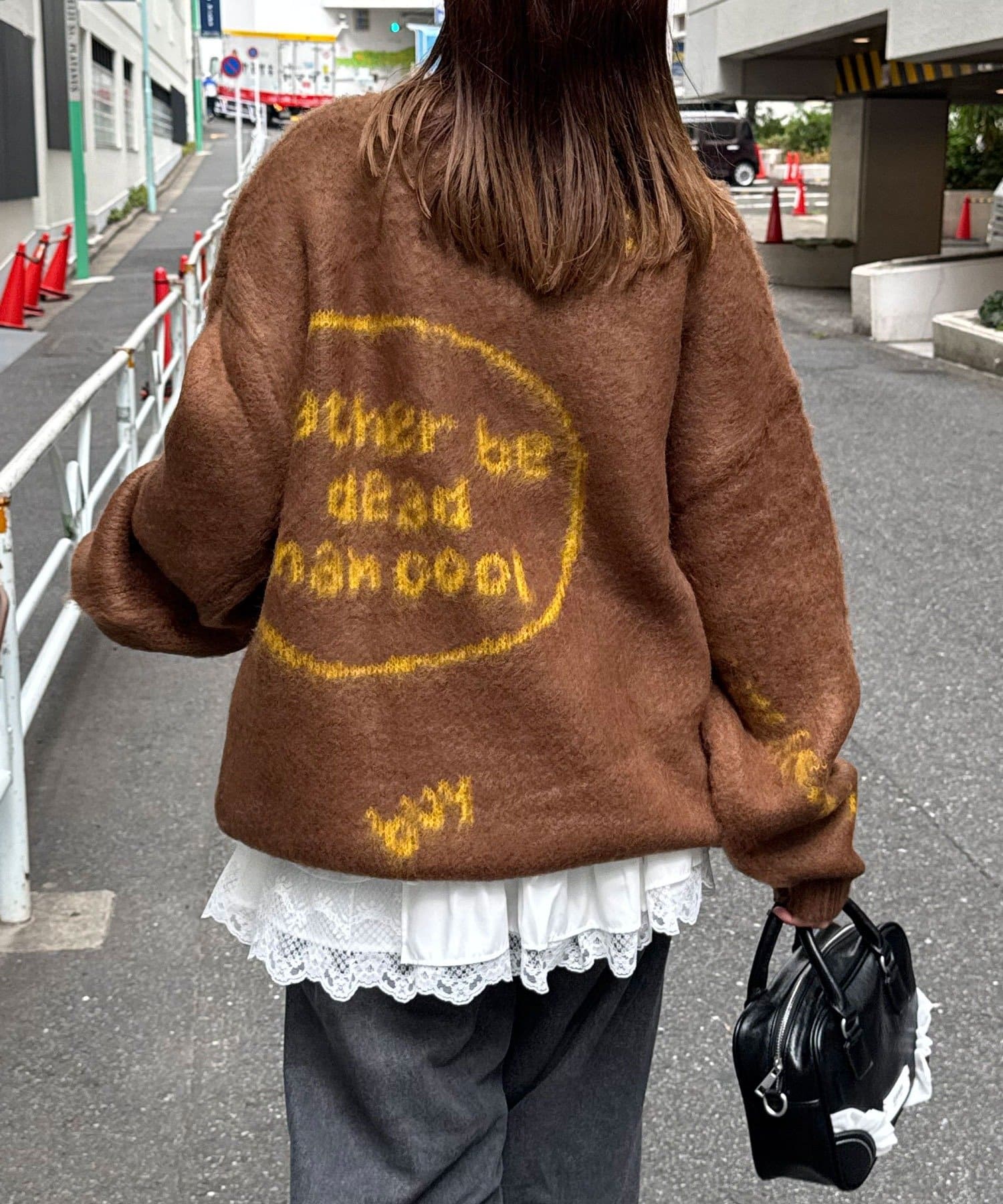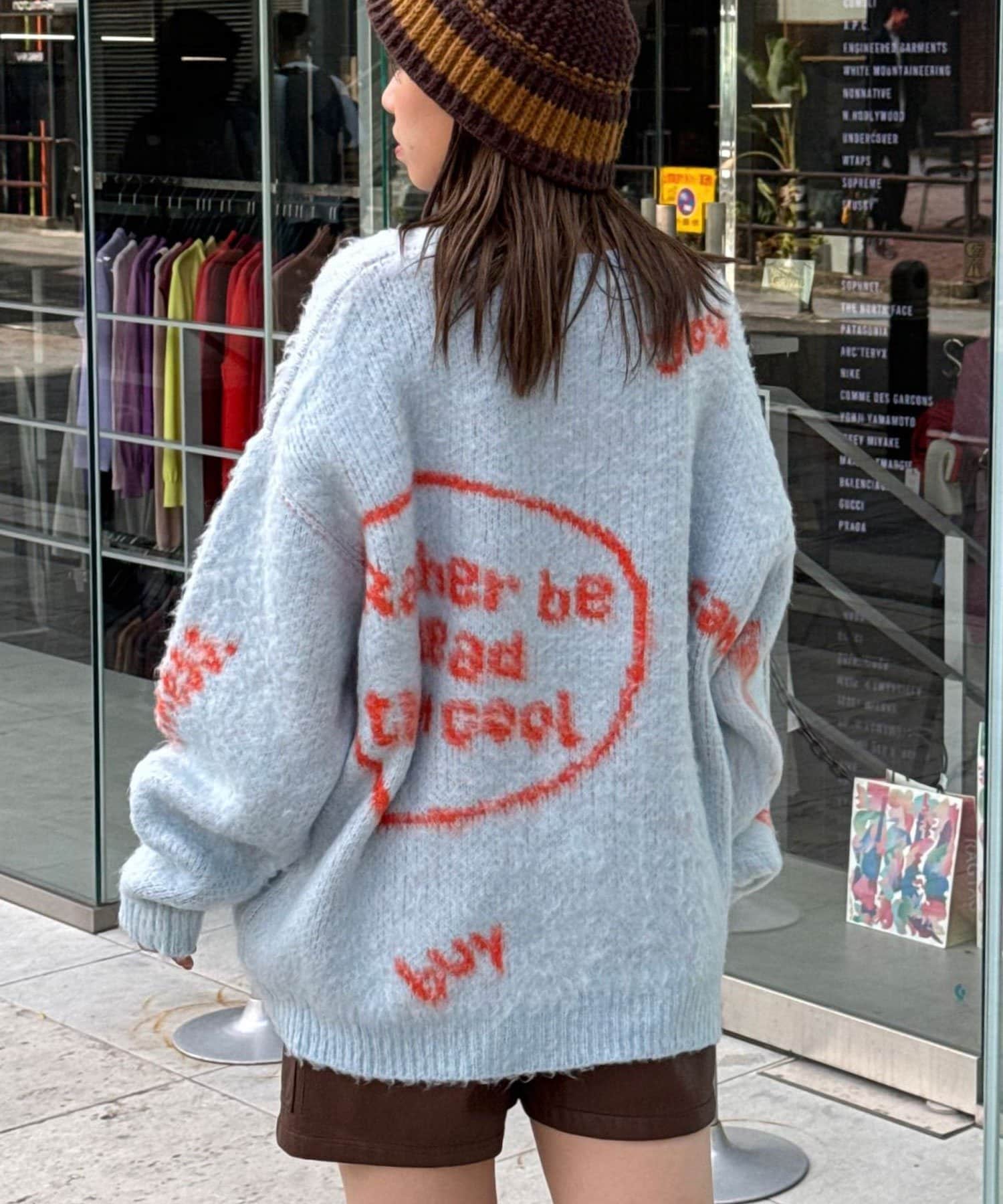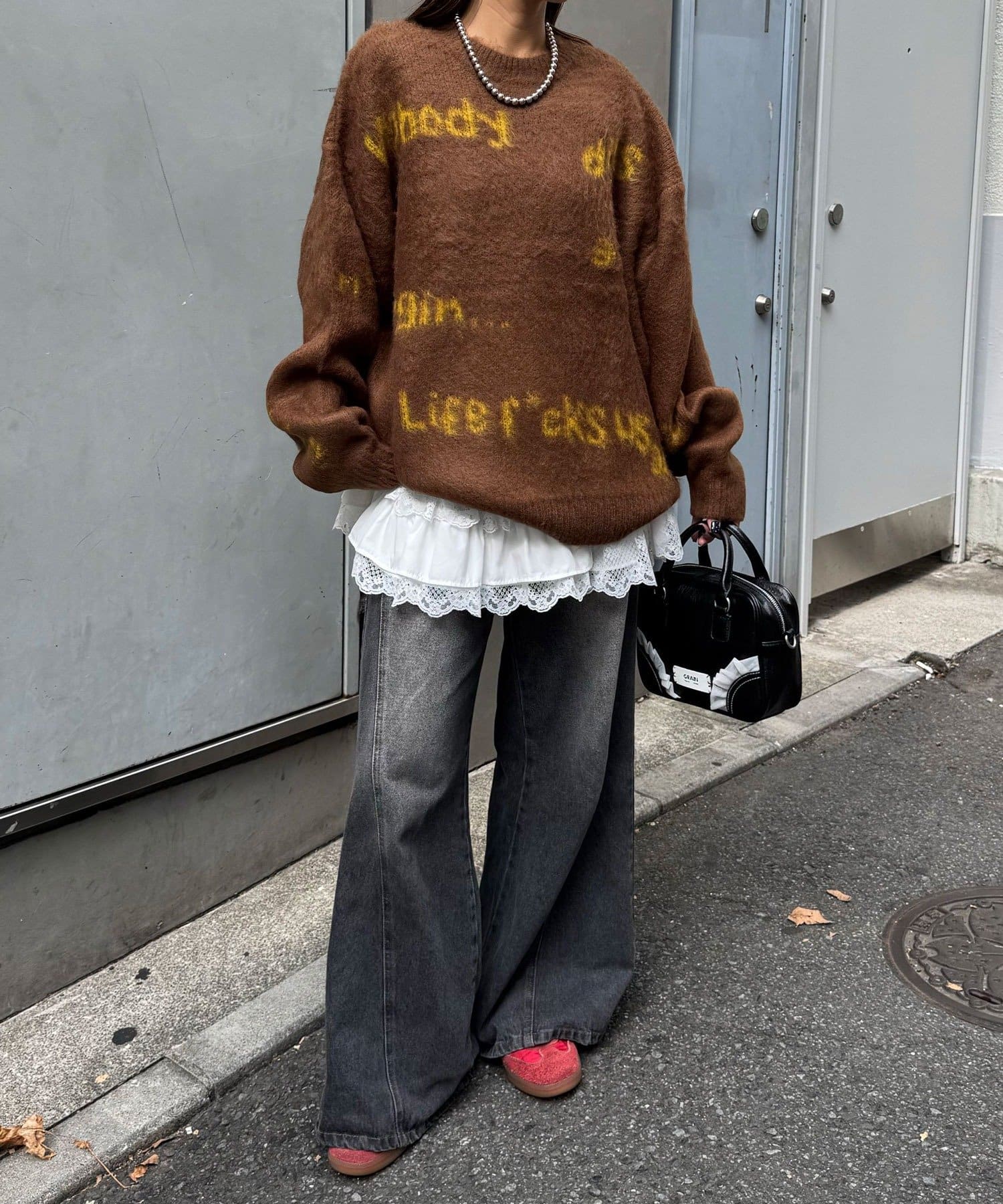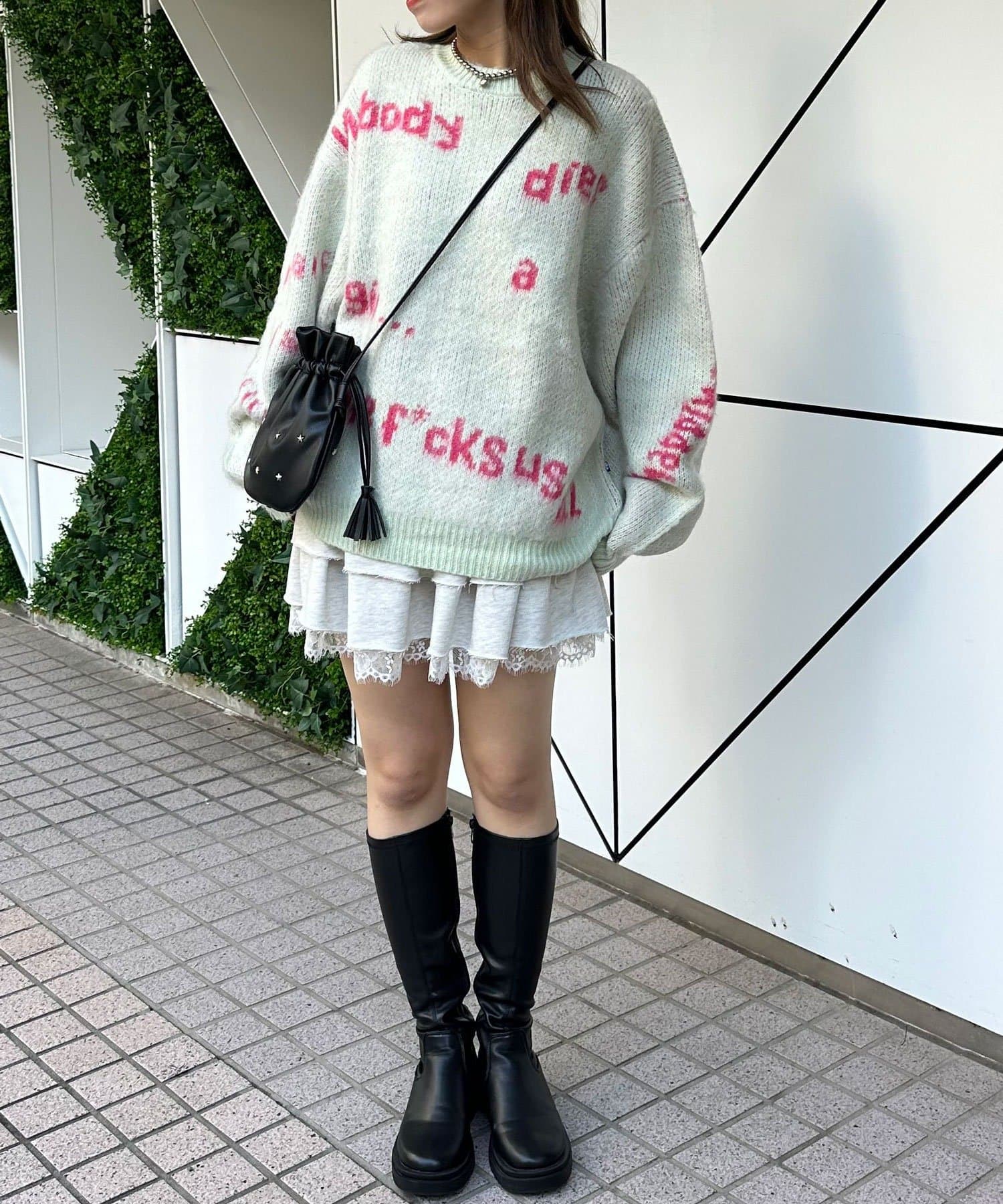 ふわふわシャギー感が可愛いオーバーサイズロゴニット。