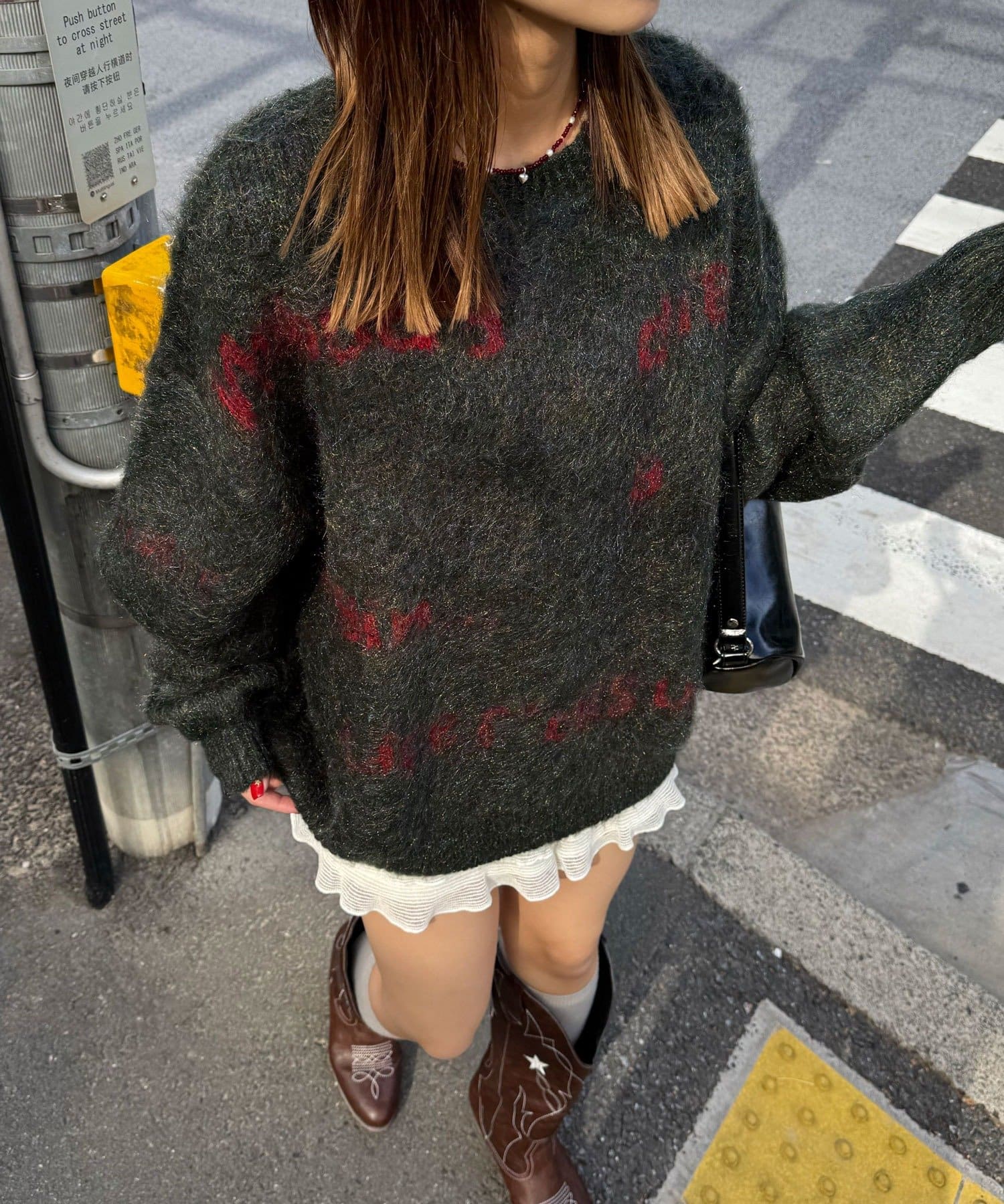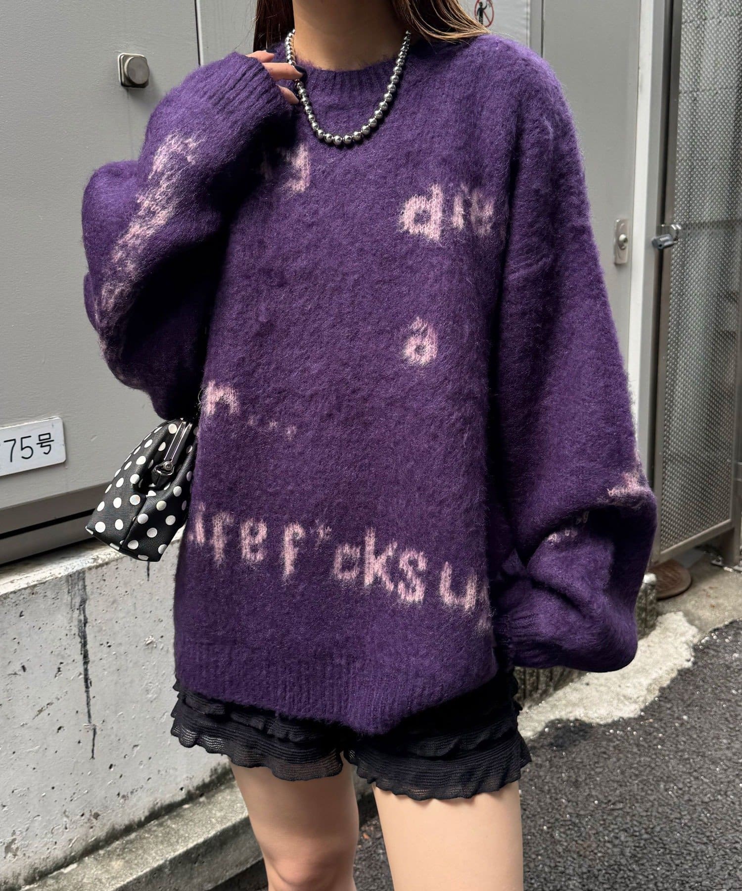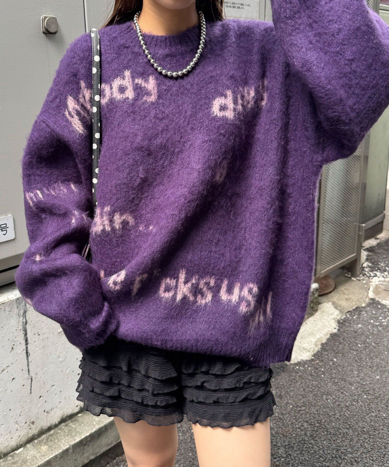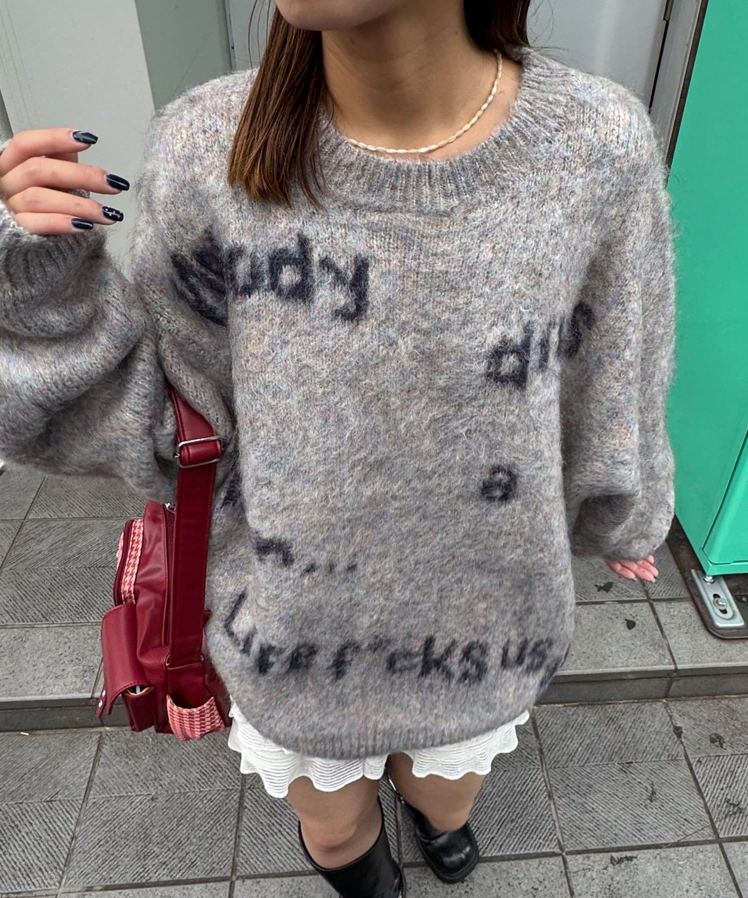 ふわふわシャギー感が可愛いオーバーサイズロゴニット。