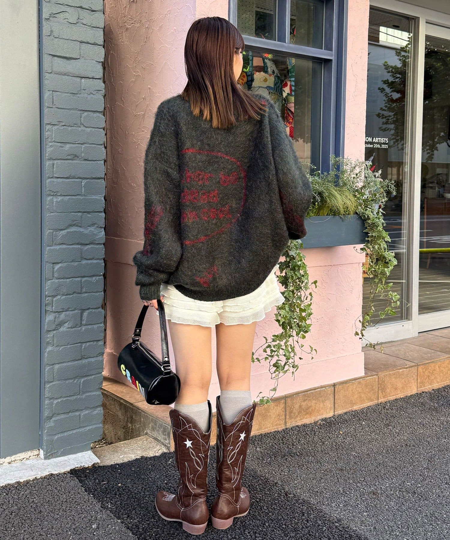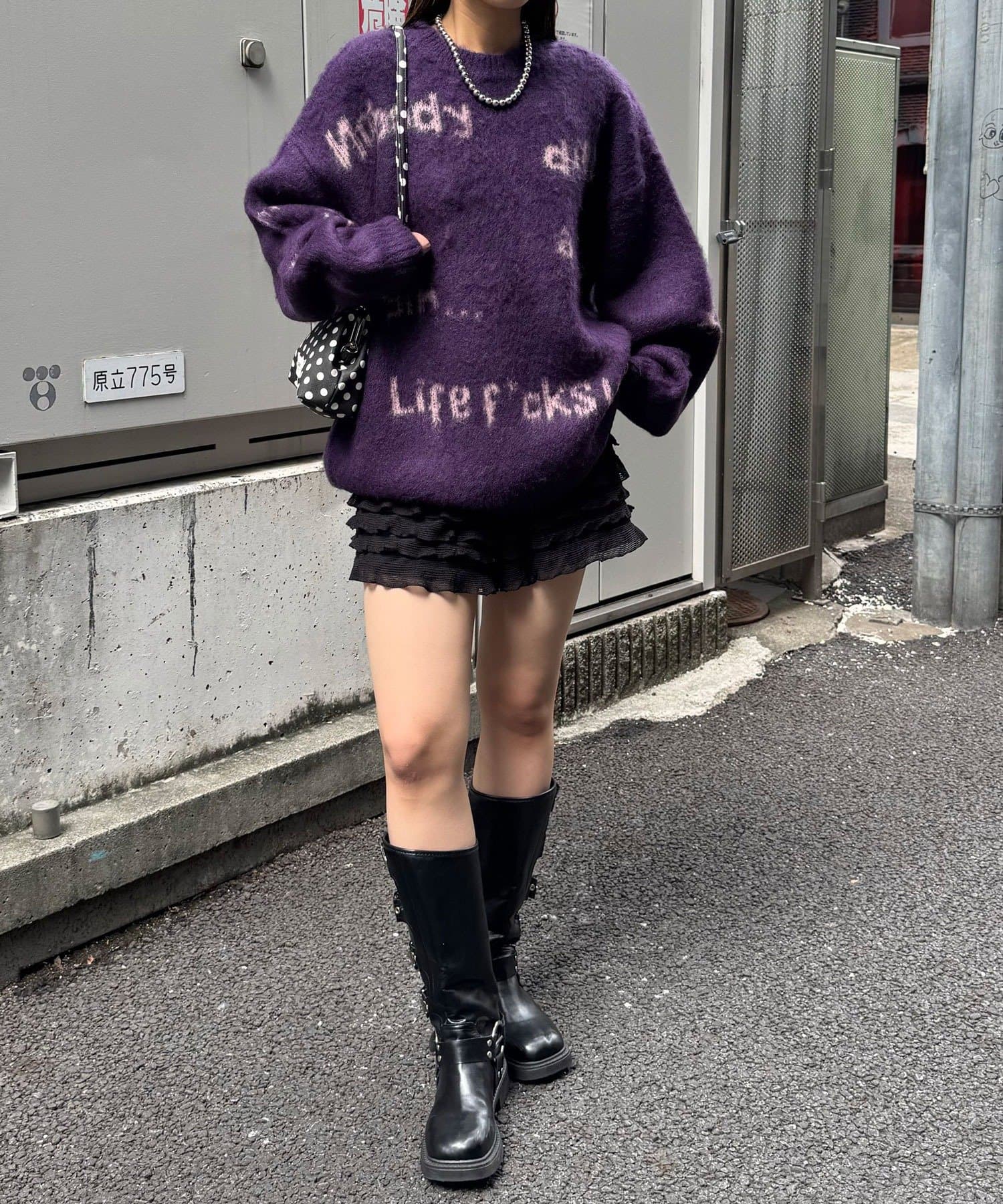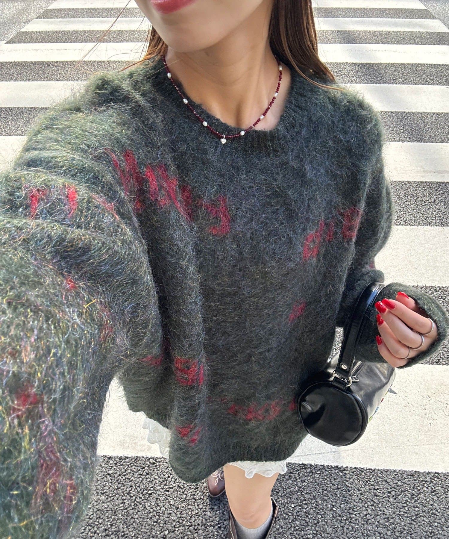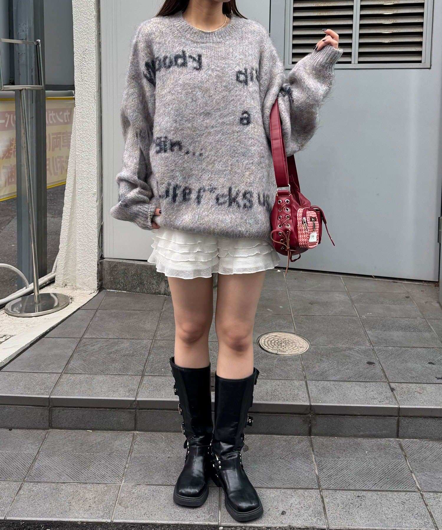 ふわふわシャギー感が可愛いオーバーサイズロゴニット。