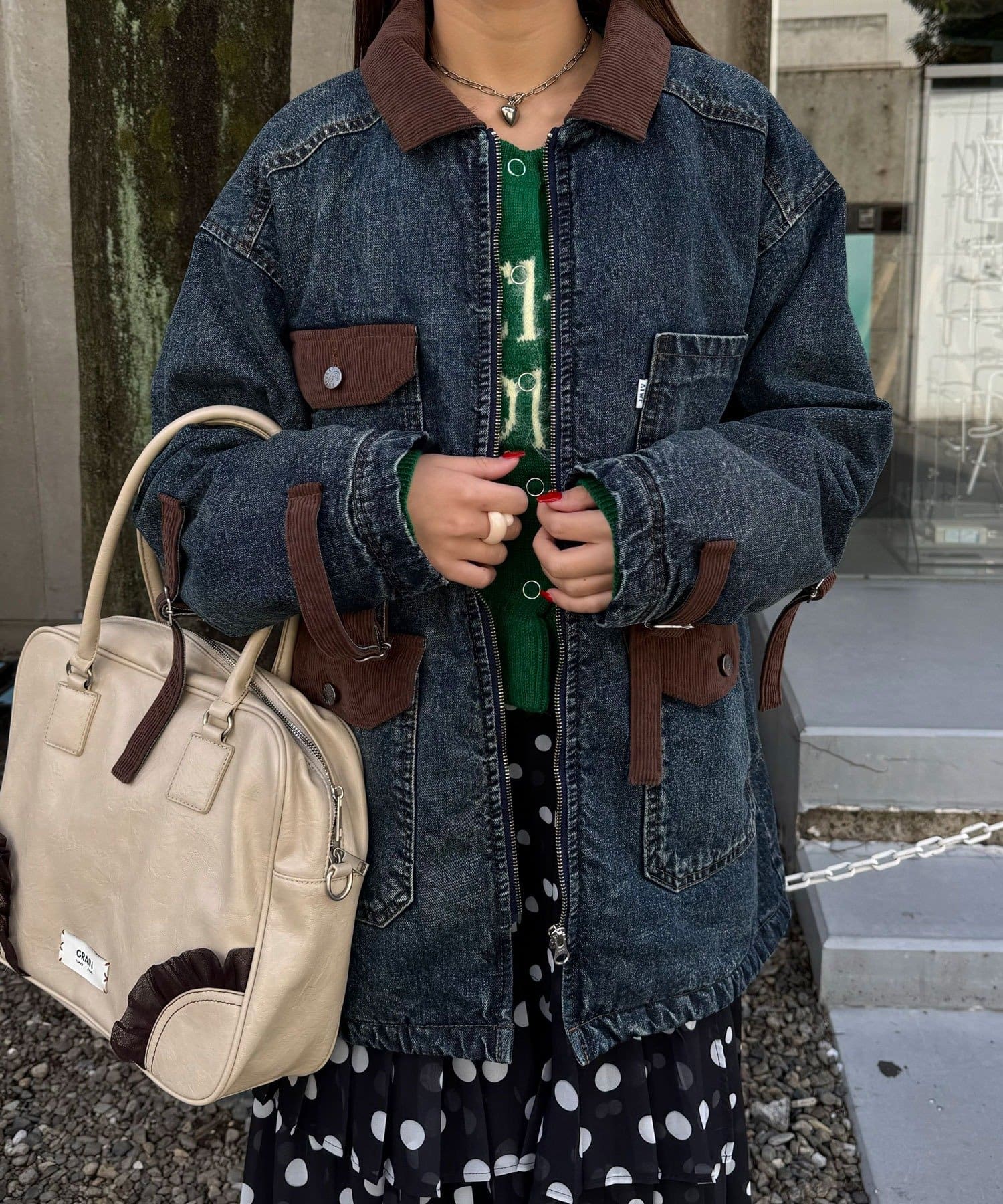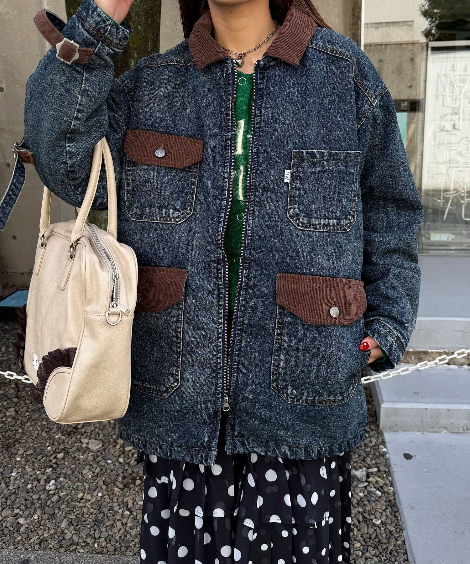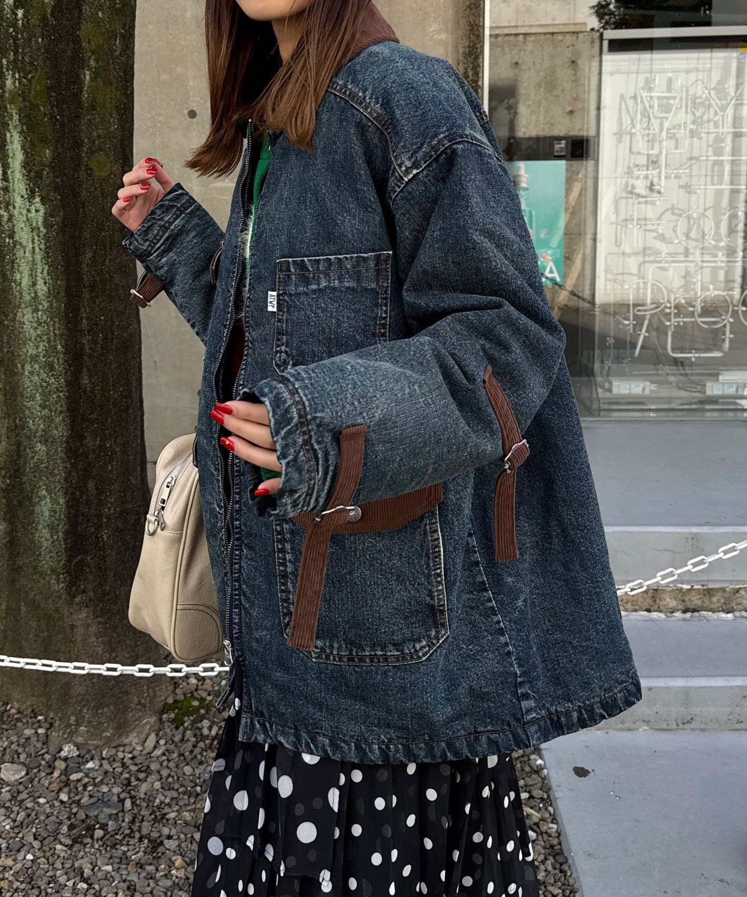 ポケットや襟にはコーデュロイ素材を使用し、さりげないアクセントをプラス。