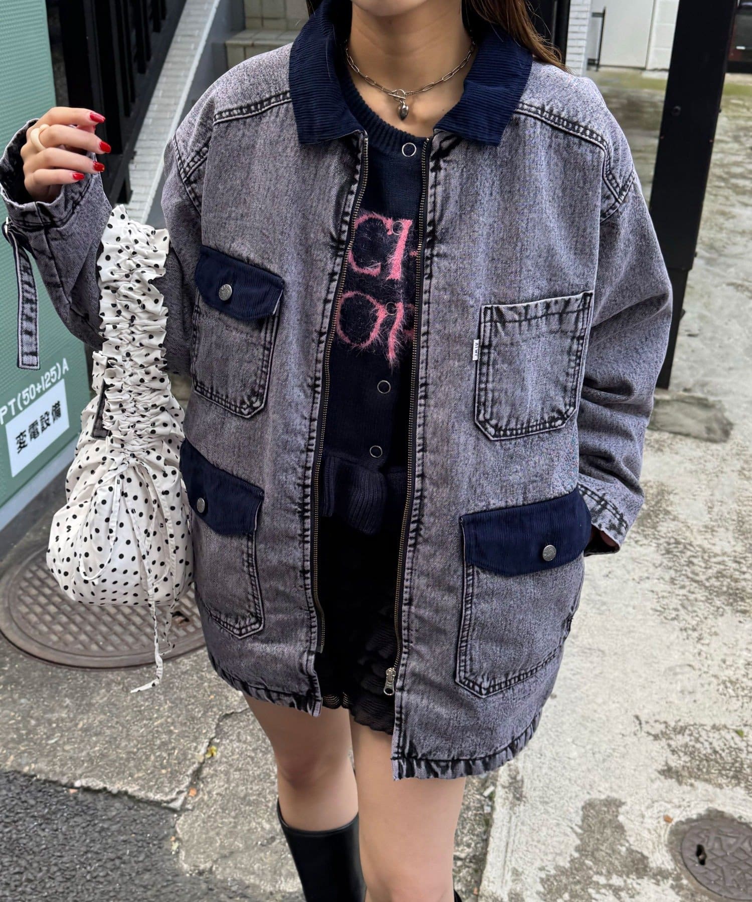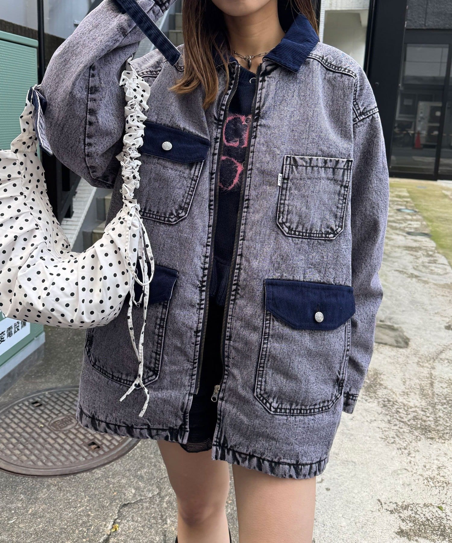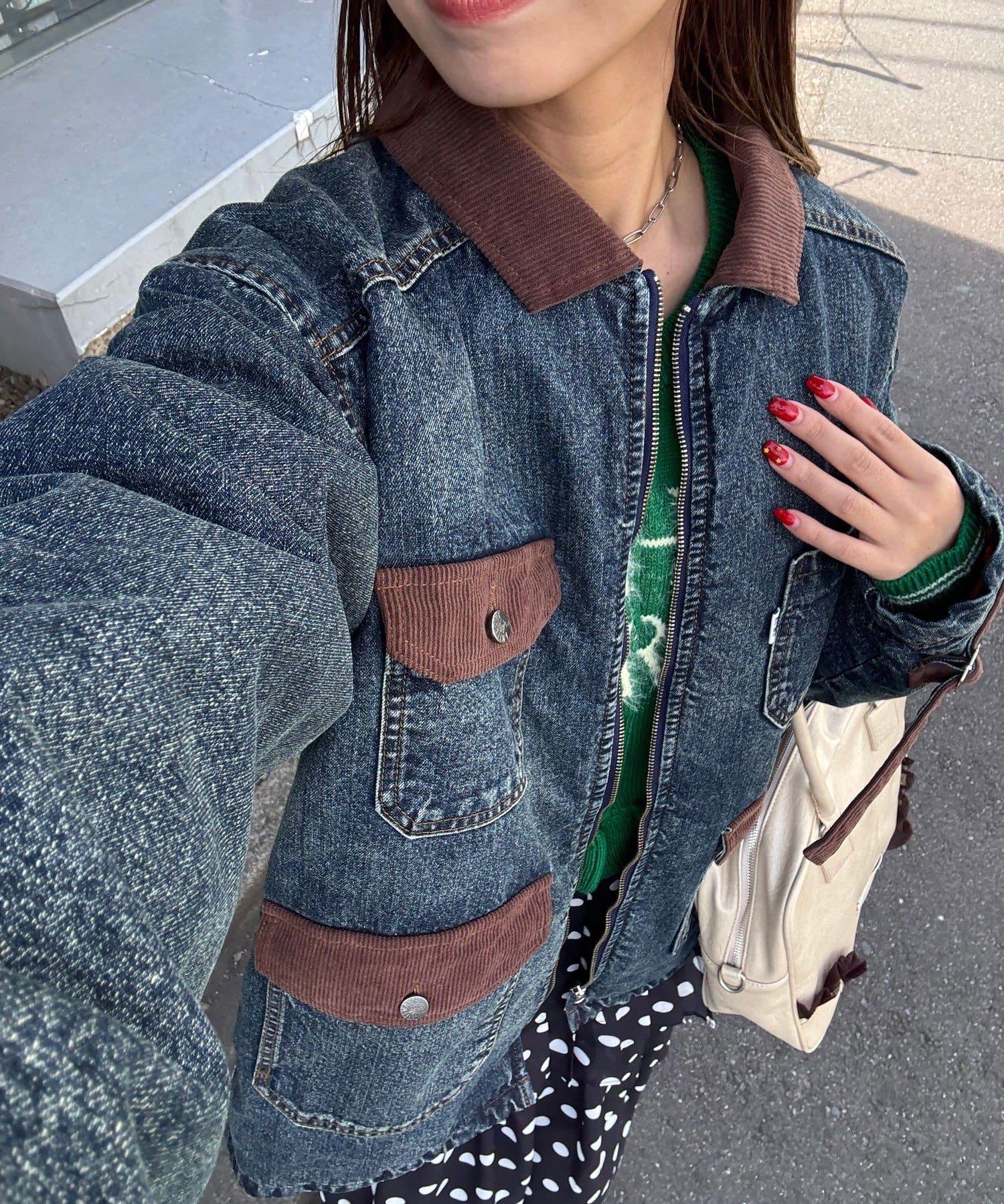 ポケットや襟にはコーデュロイ素材を使用し、さりげないアクセントをプラス。