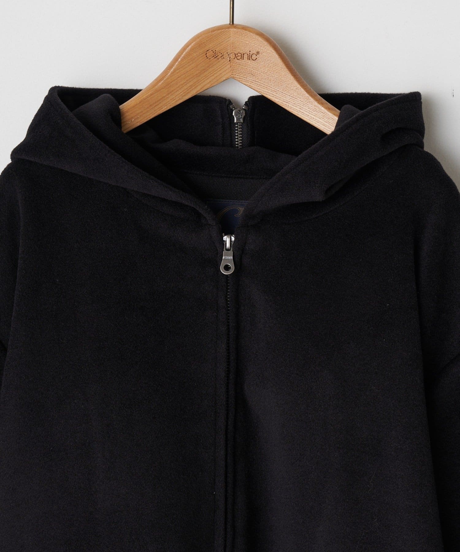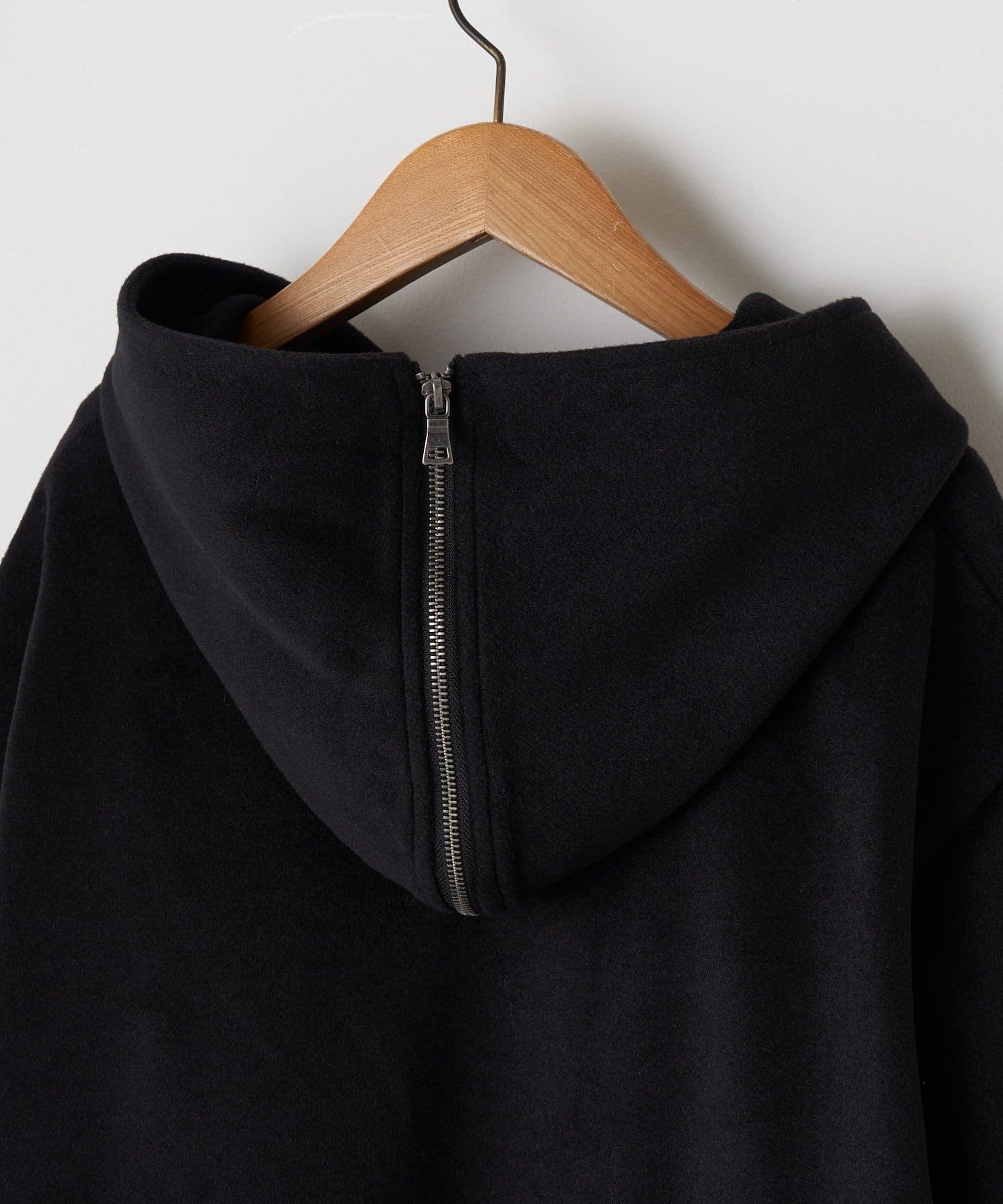 フードとして立てればストリート感のある雰囲気に、ヨークとして広げればやわらかく女性らしいムードにチェンジ。