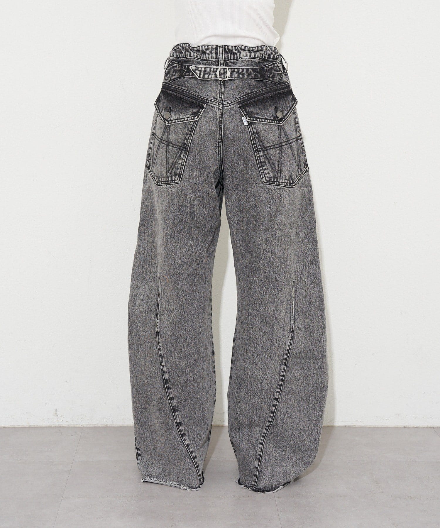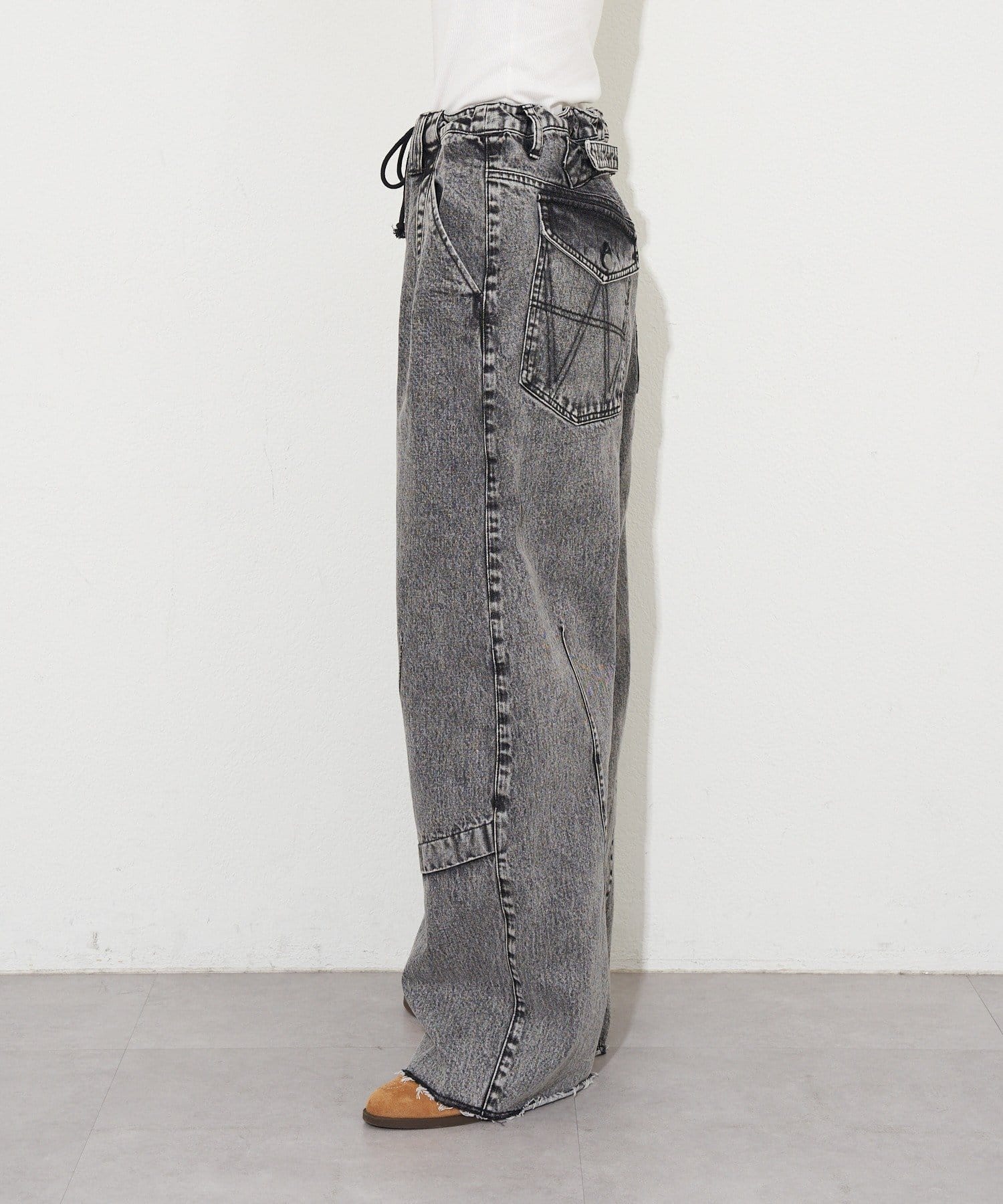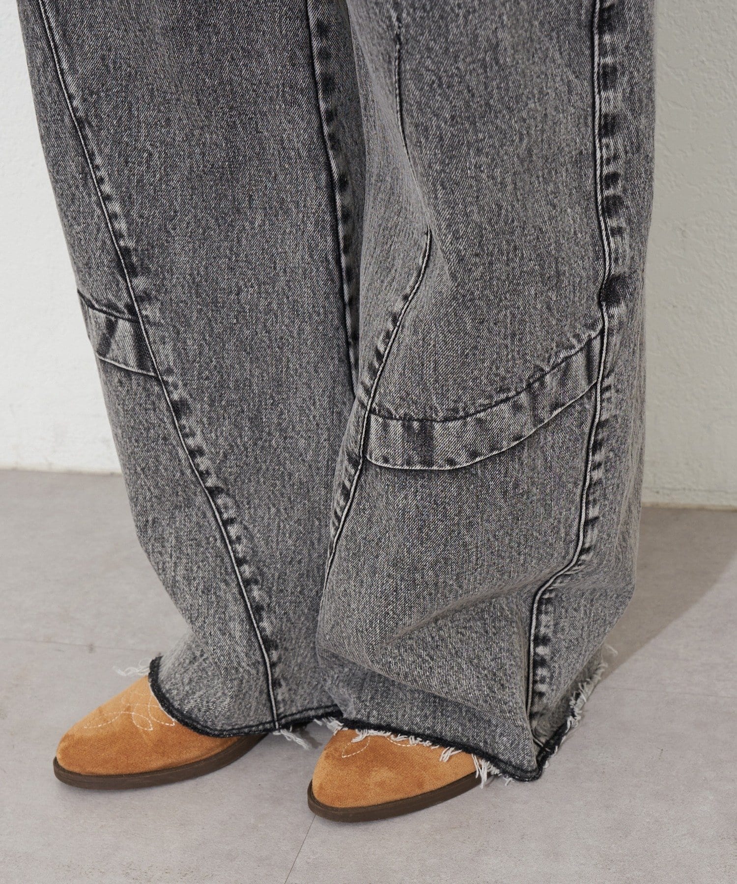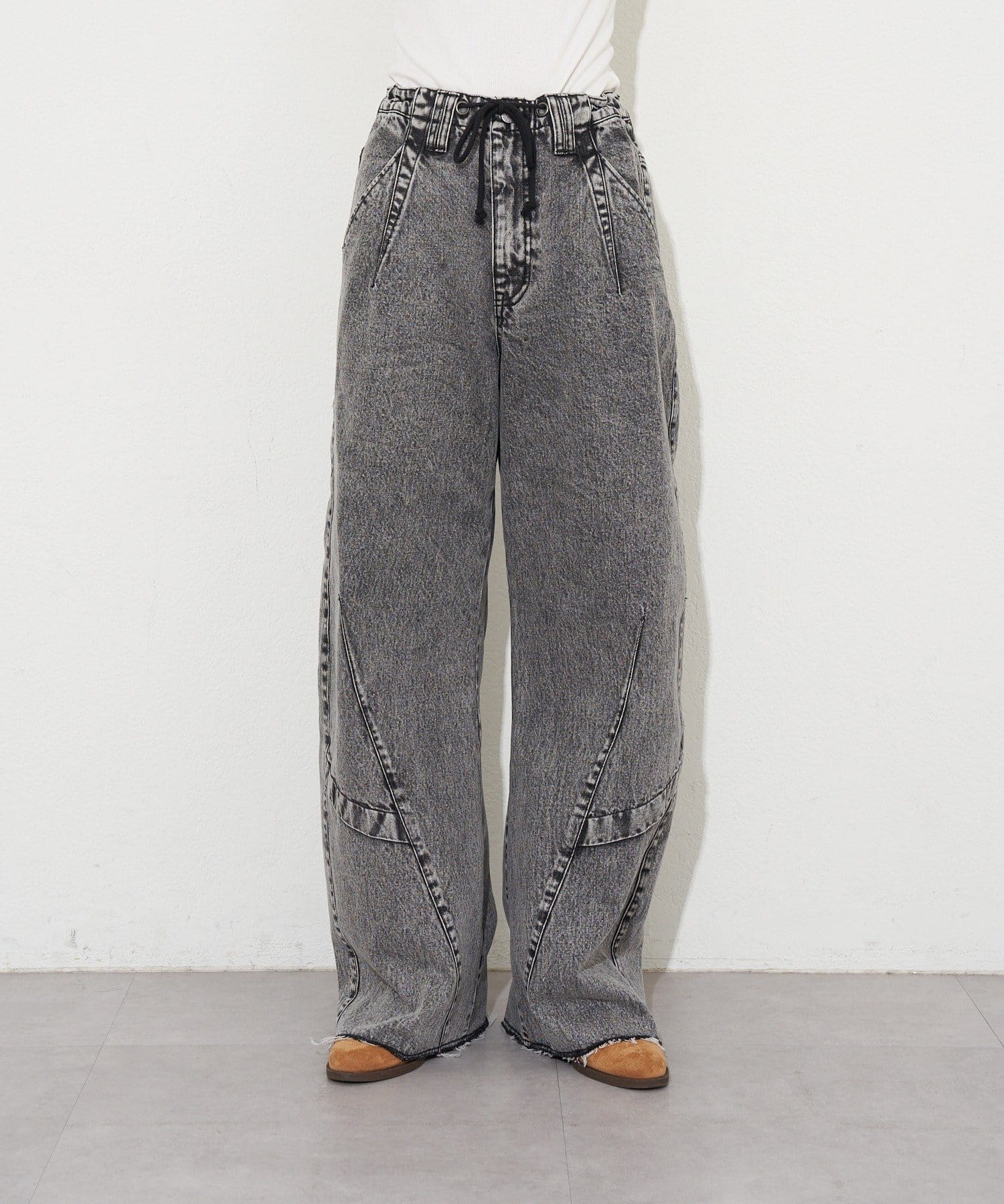 切替ラインで立体感を出した、存在感のあるカーブワイドデニム。