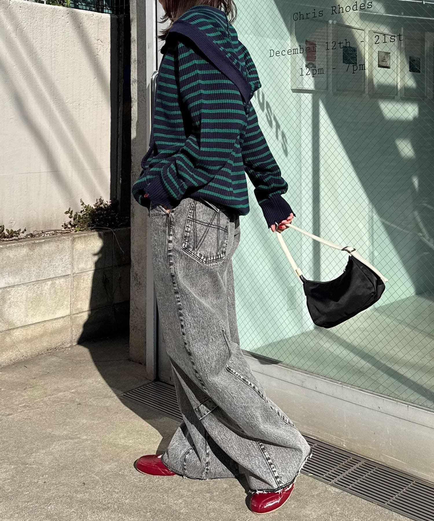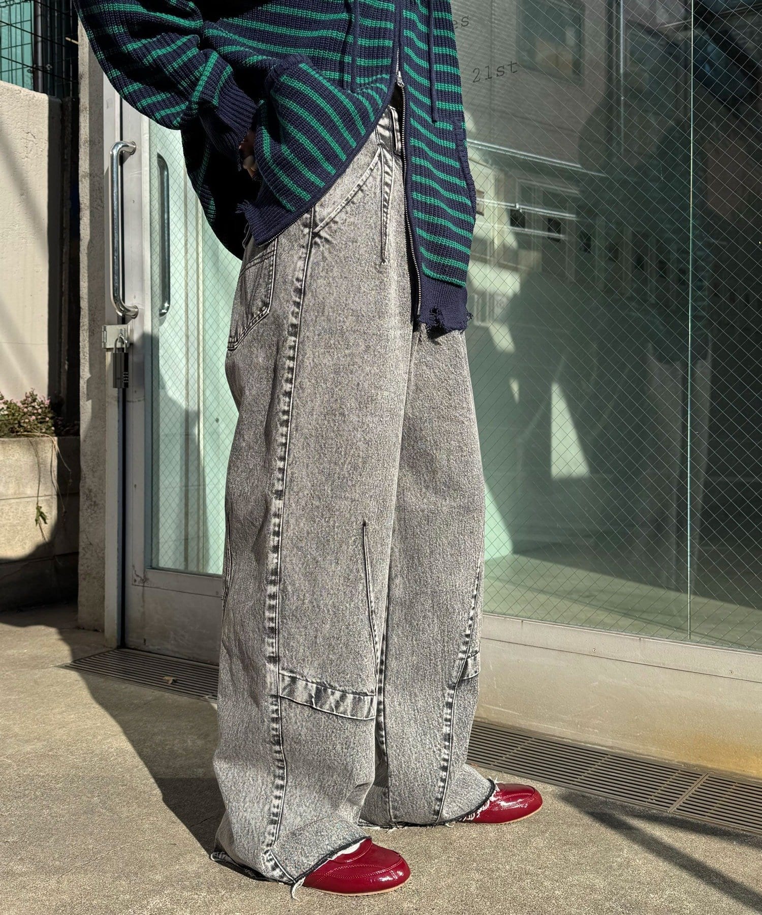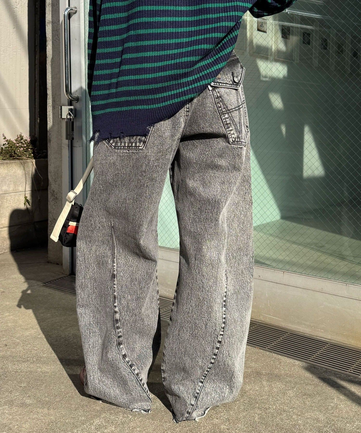 切替ラインで立体感を出した、存在感のあるカーブワイドデニム。