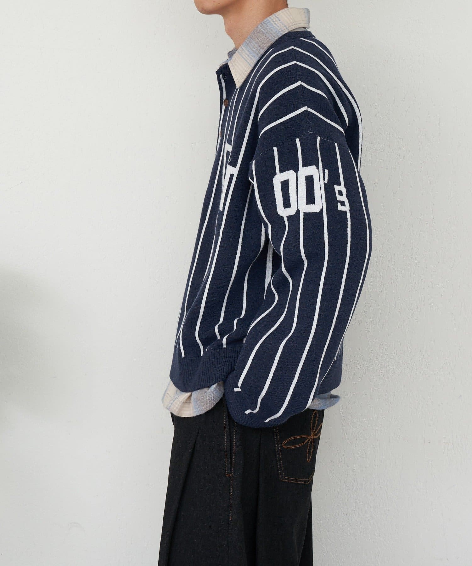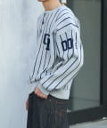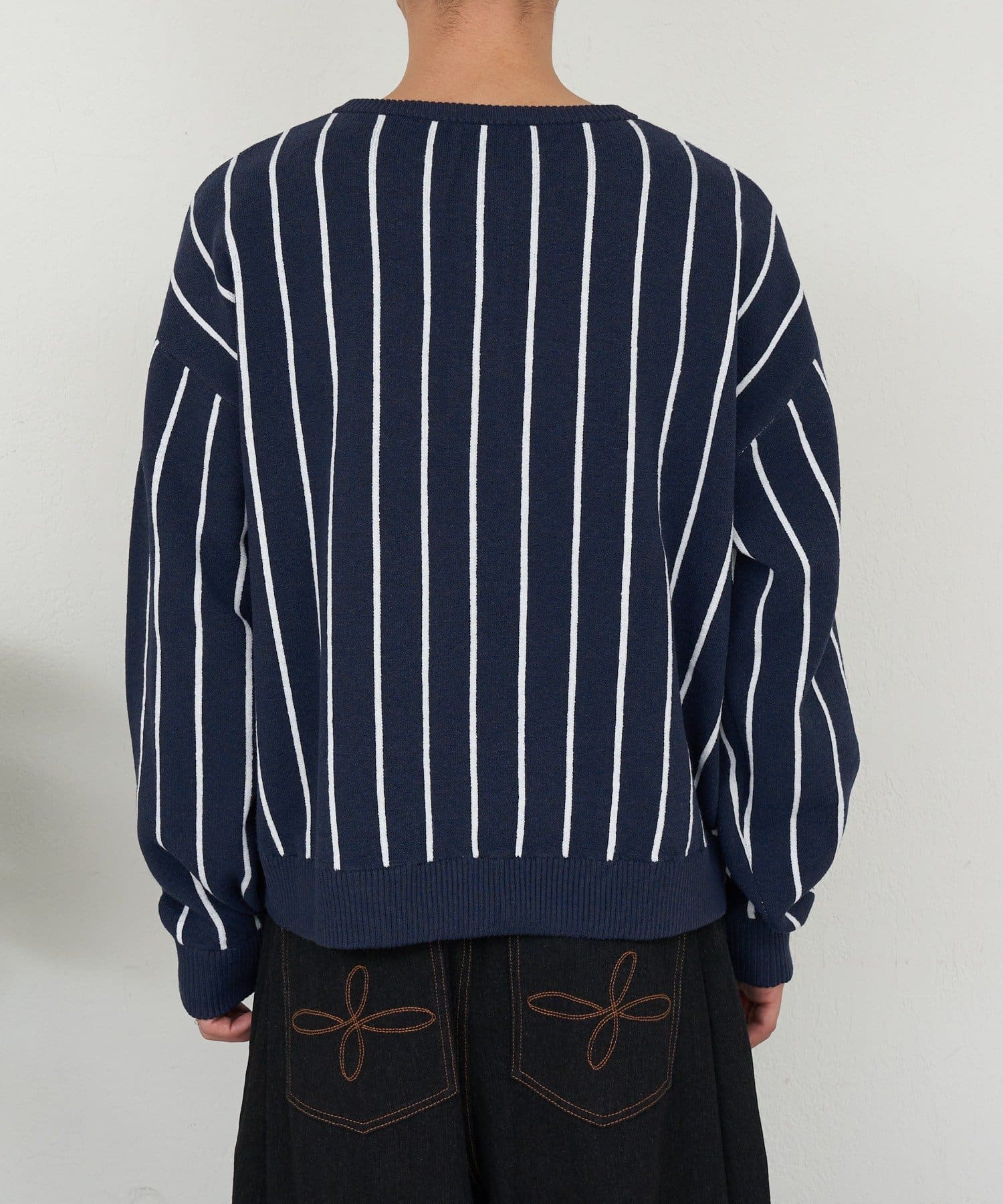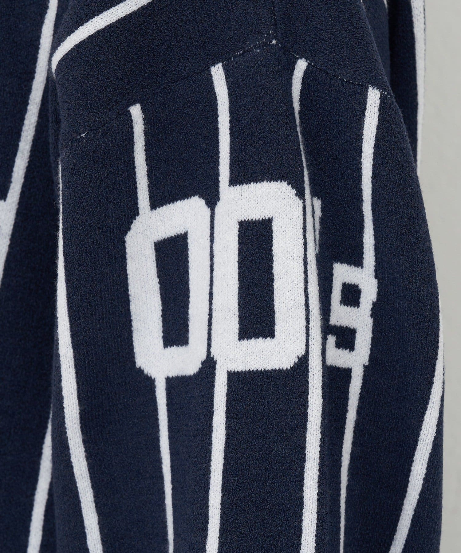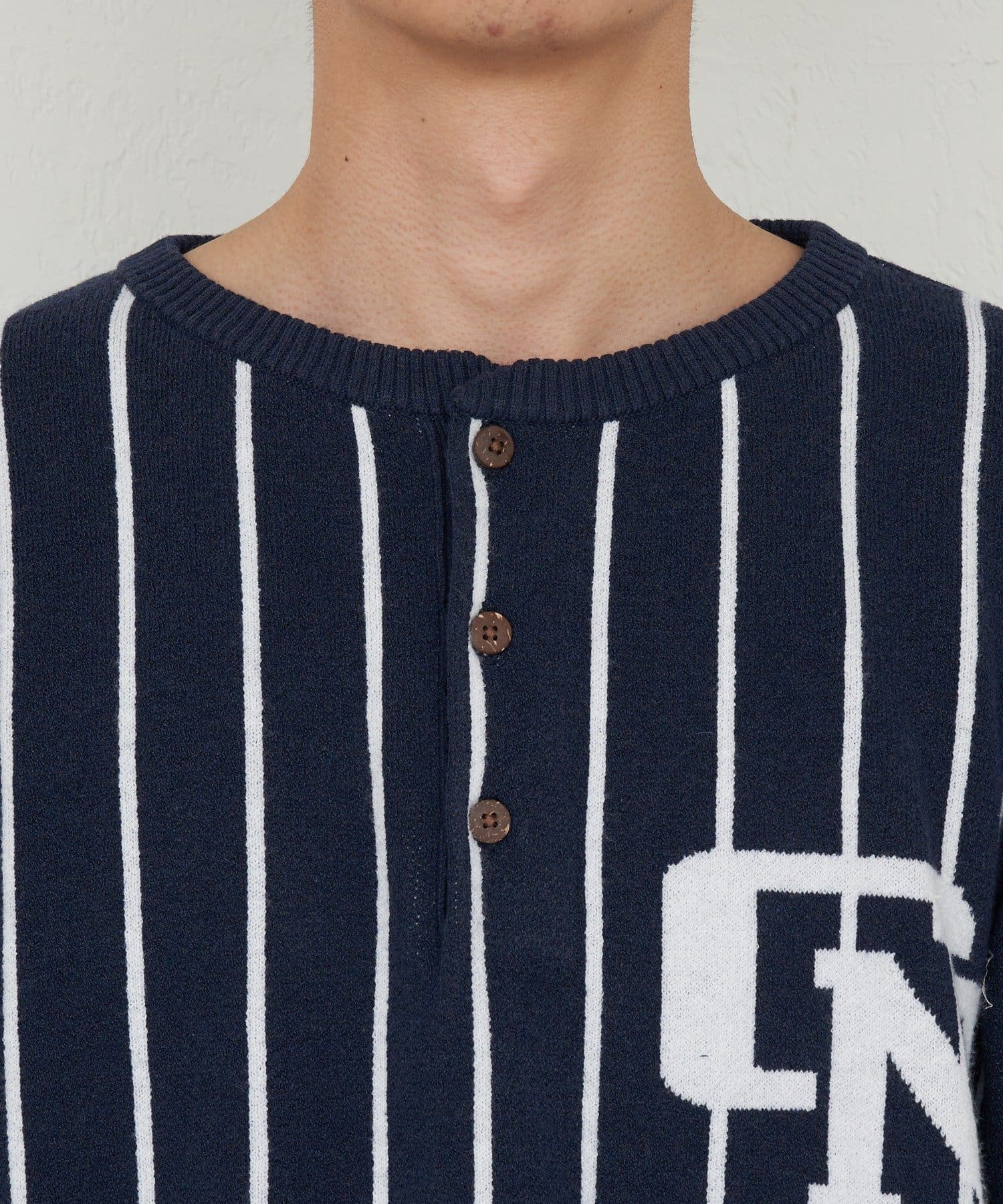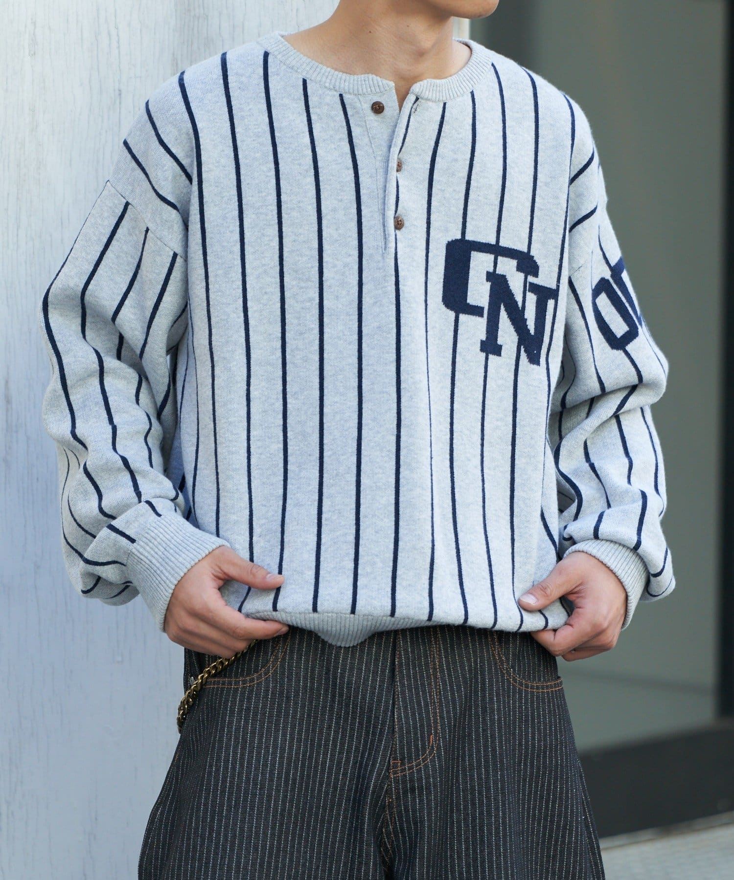 ストライプデザインが目を引くベースボールスウェットライクニット。