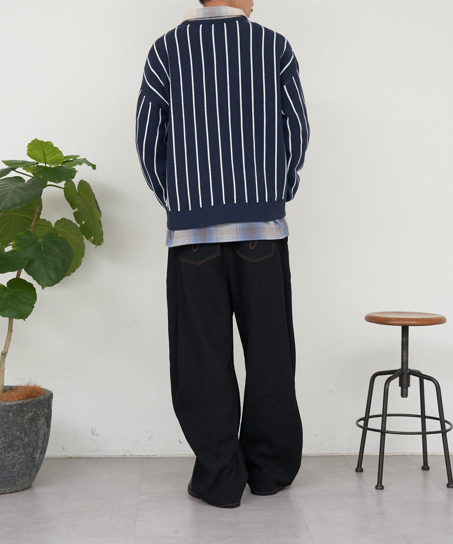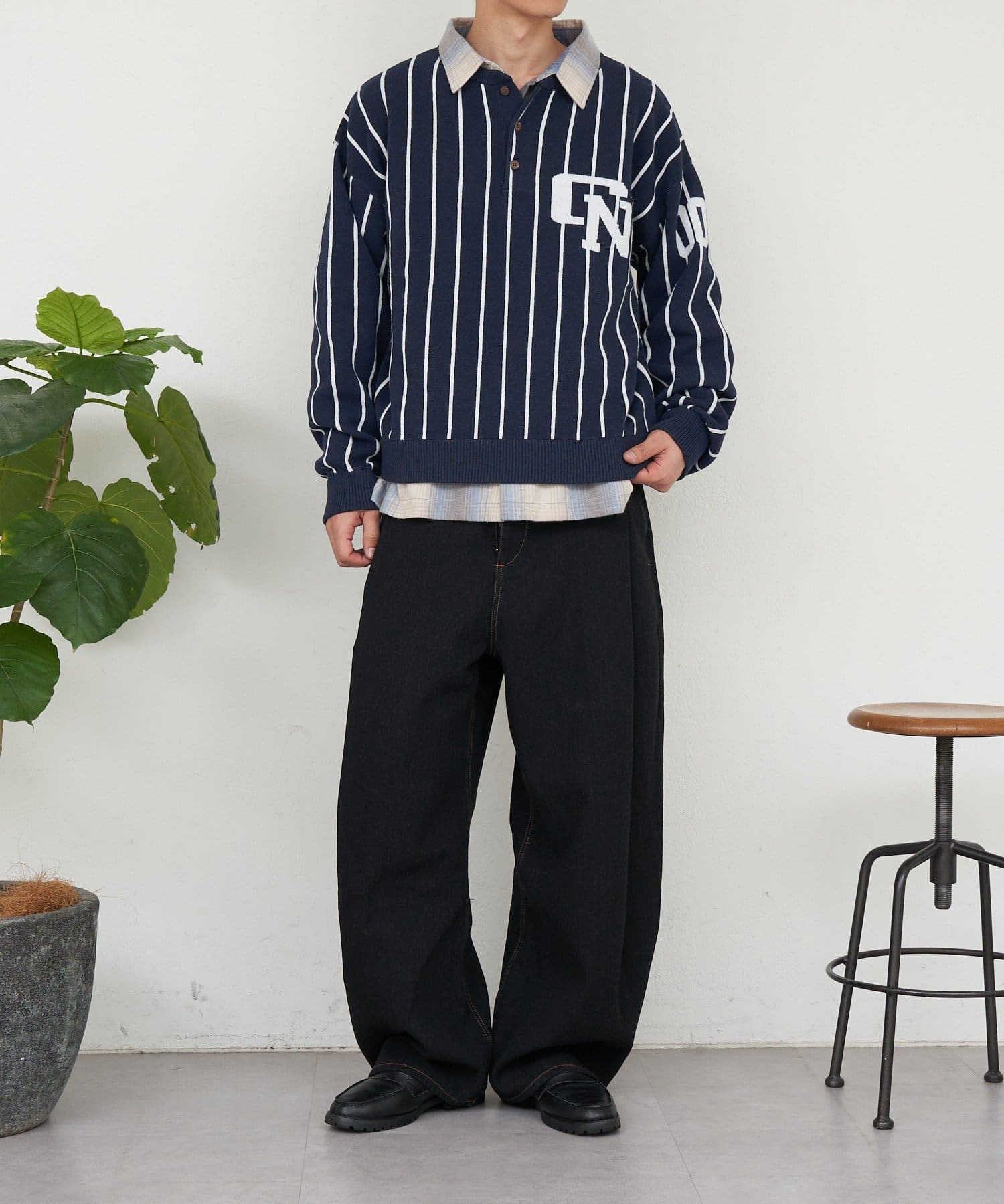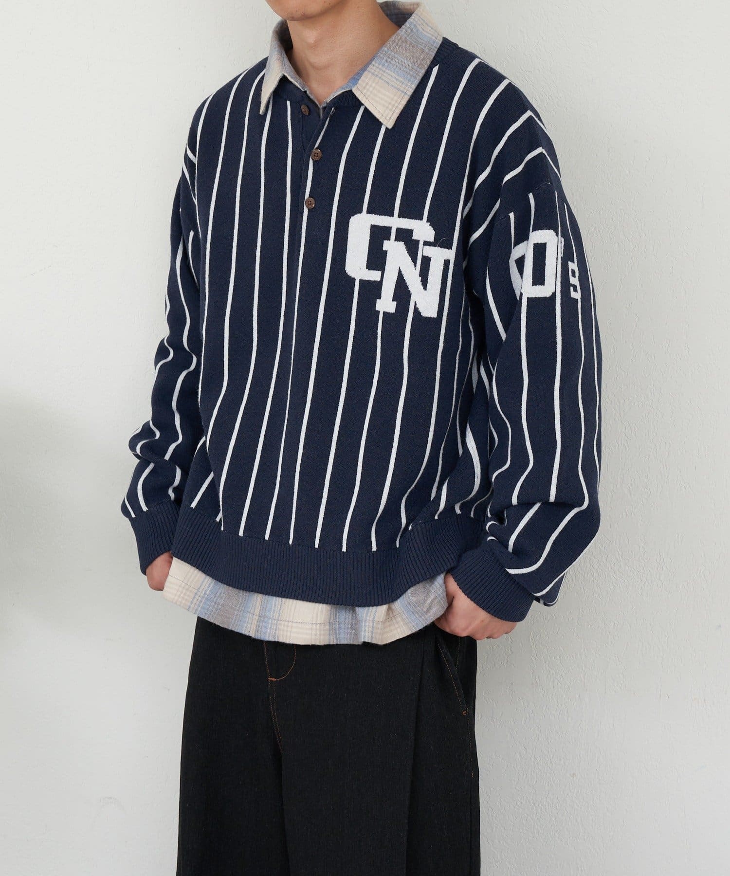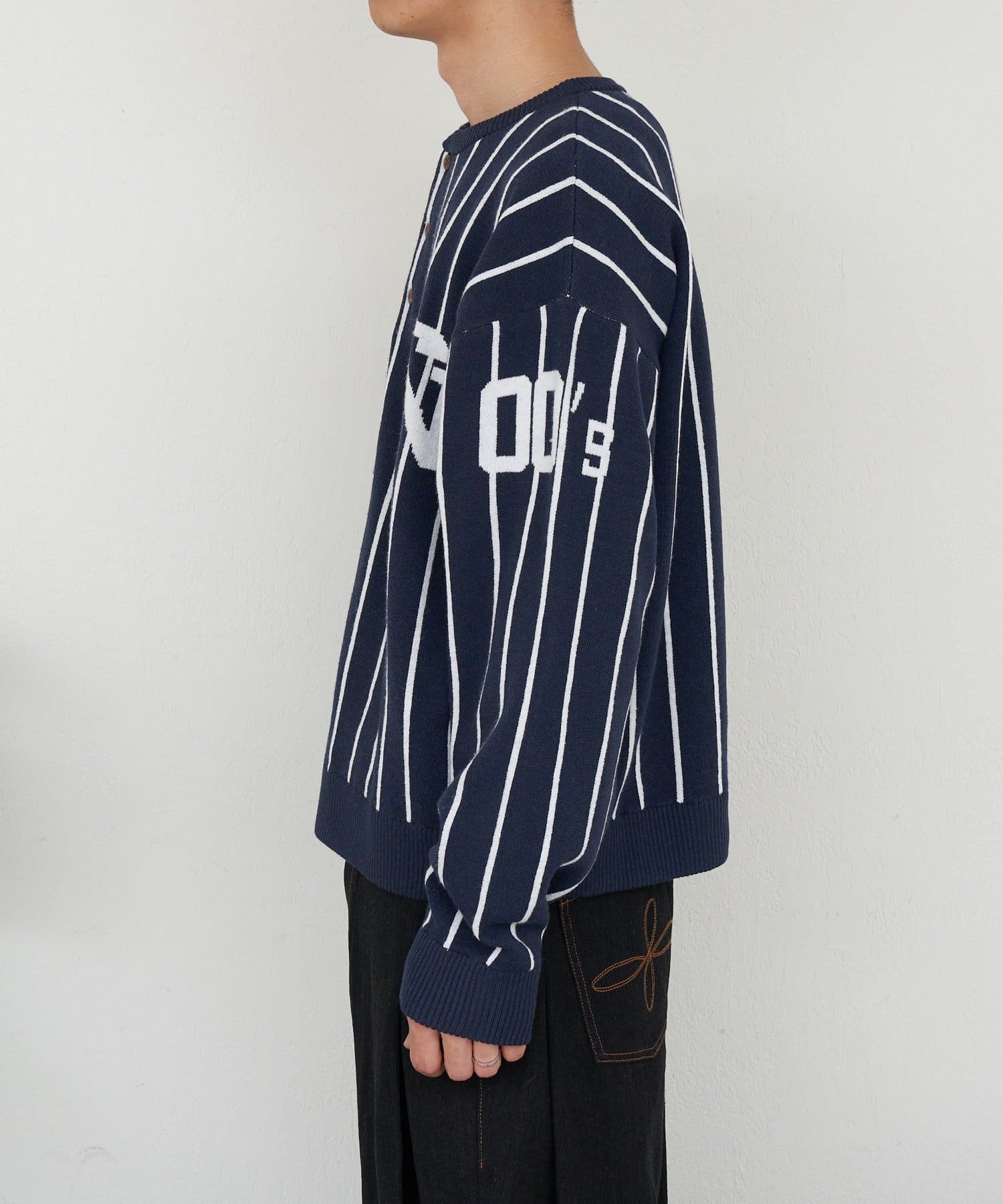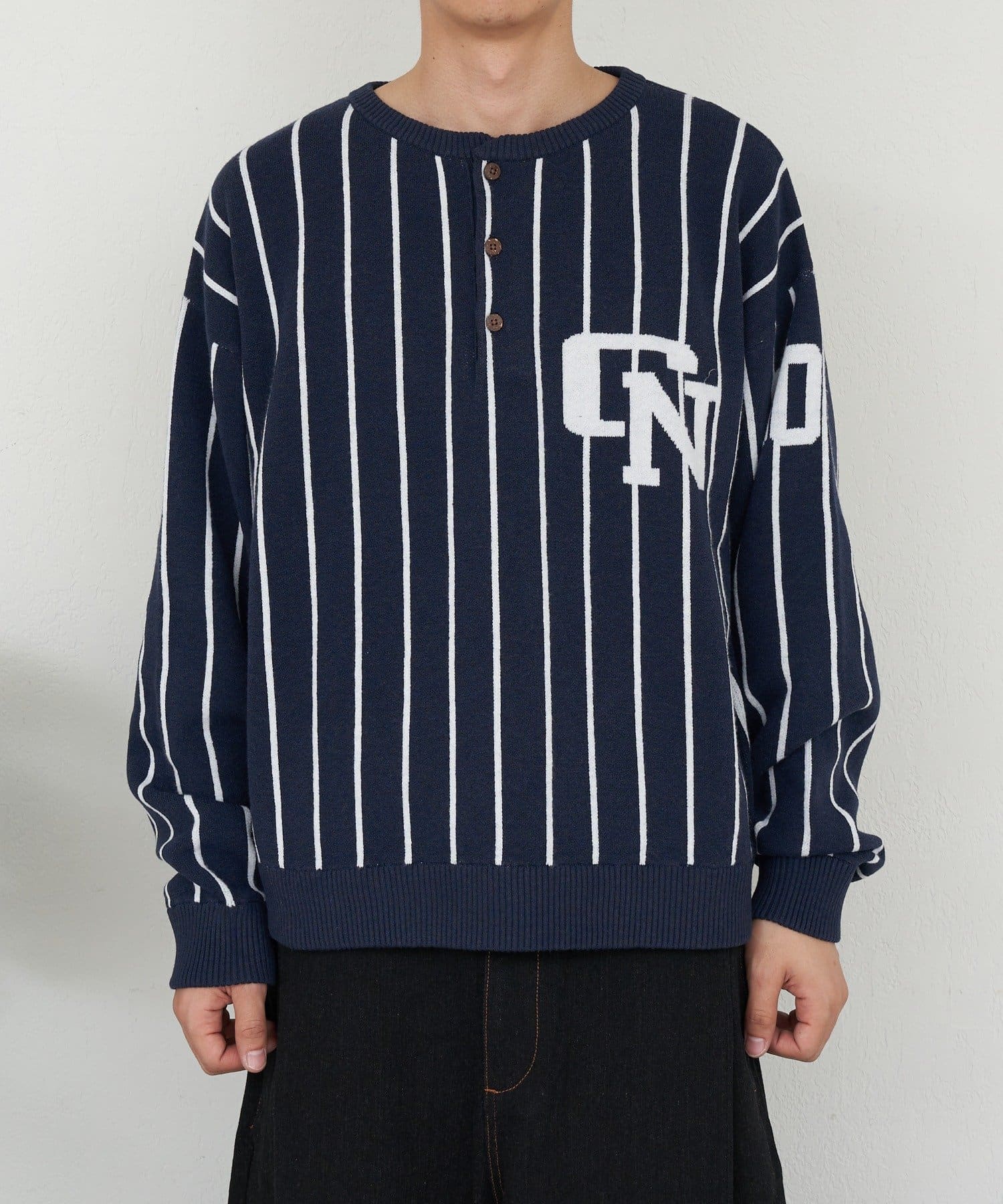 ストライプデザインが目を引くベースボールスウェットライクニット。
