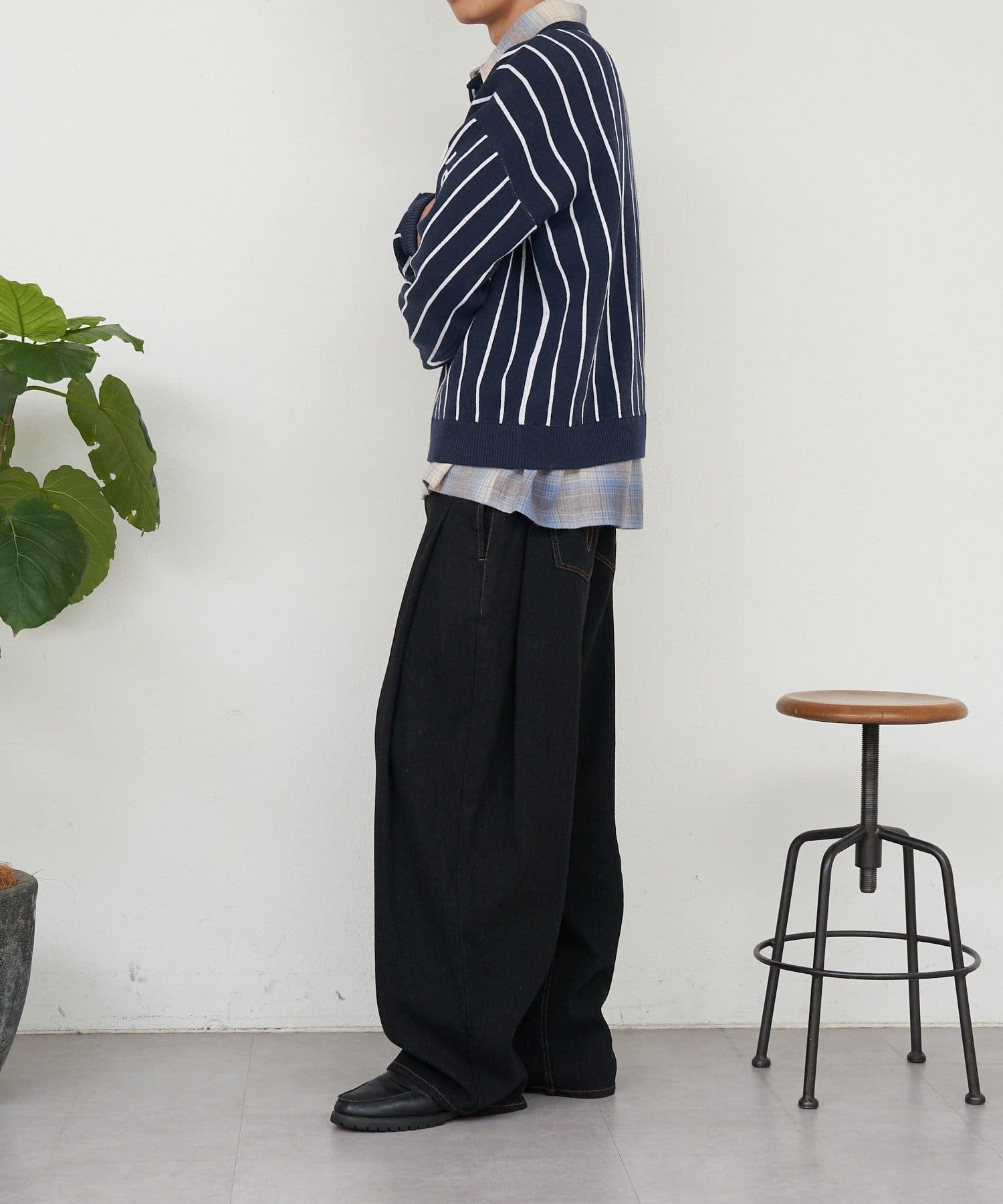 デニムやチノパンに合わせて、シンプルながら存在感のあるカジュアルコーデに。