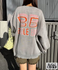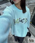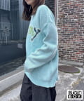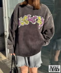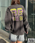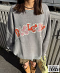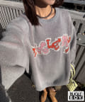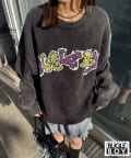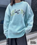 古着っぽい褪せた色合いと鮮やかなカラーのロゴデザインが目を引く、ゆったりシルエットのロゴニット。