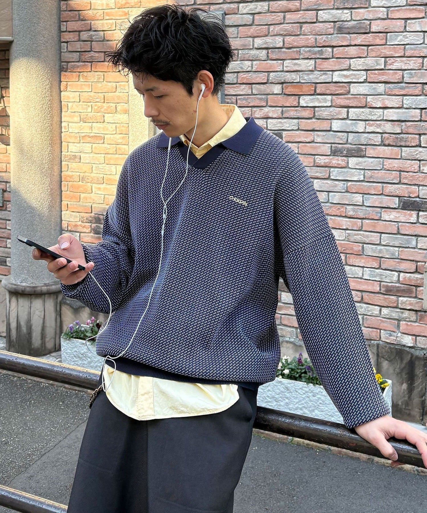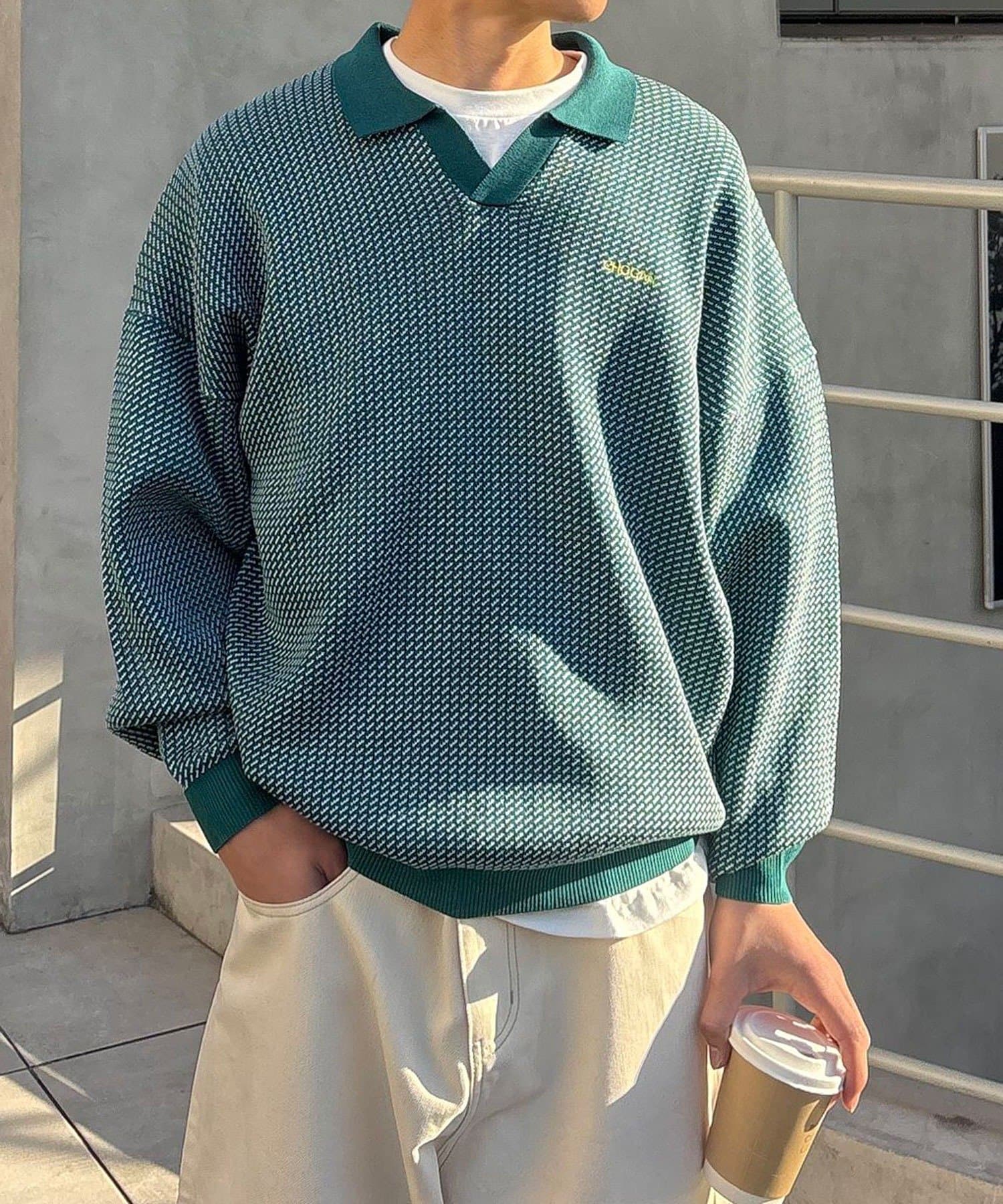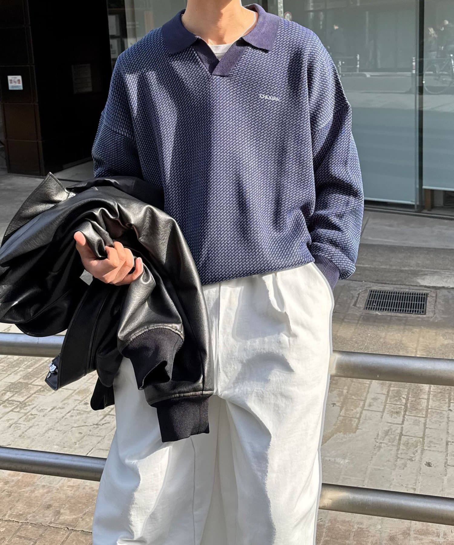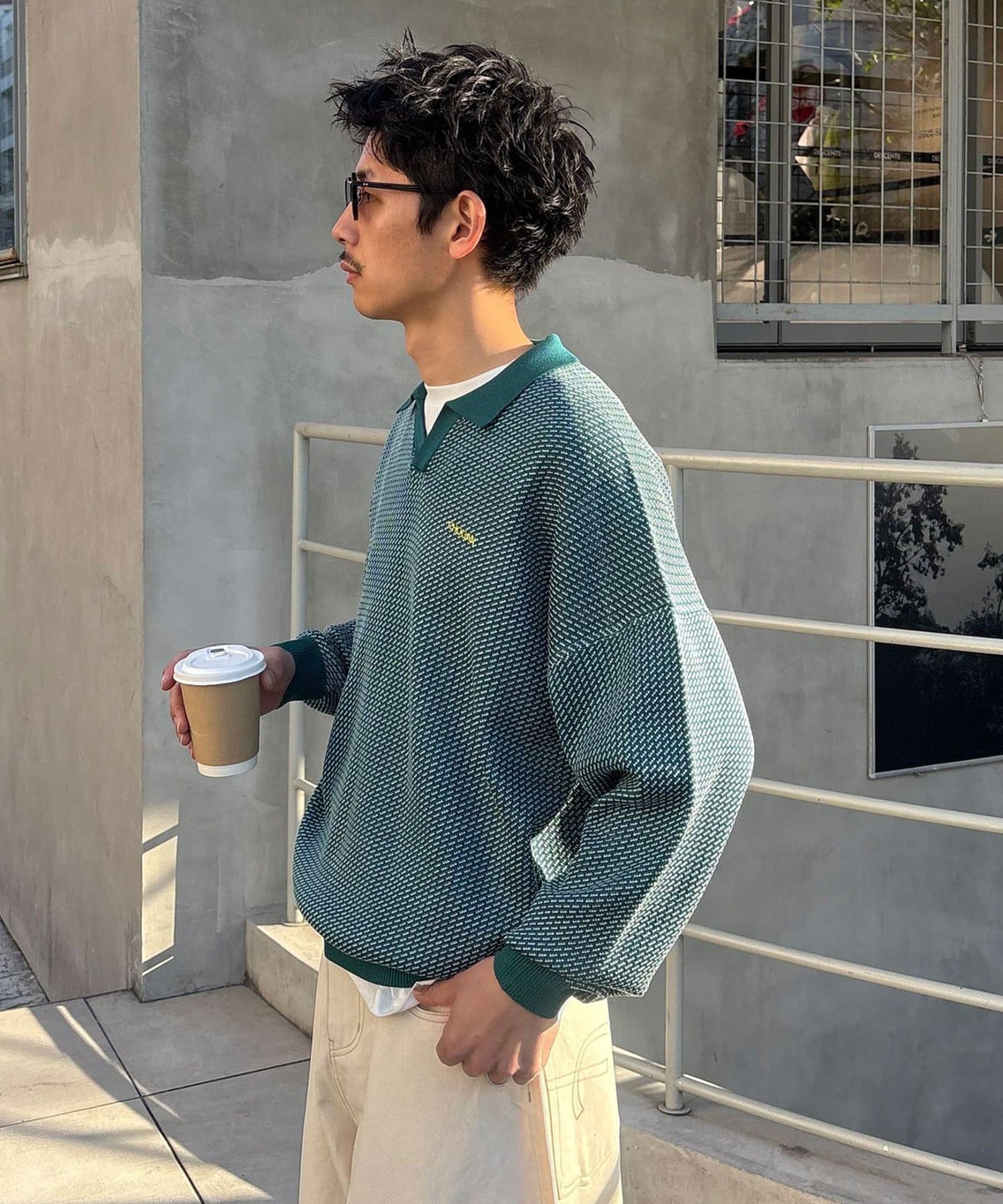 ゆるっとしたシルエットが今っぽいニットポロシャツ。