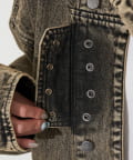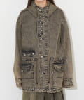 ワークテイストを感じるディティールを詰め込んだ、フード付きデニムジャケット。