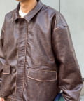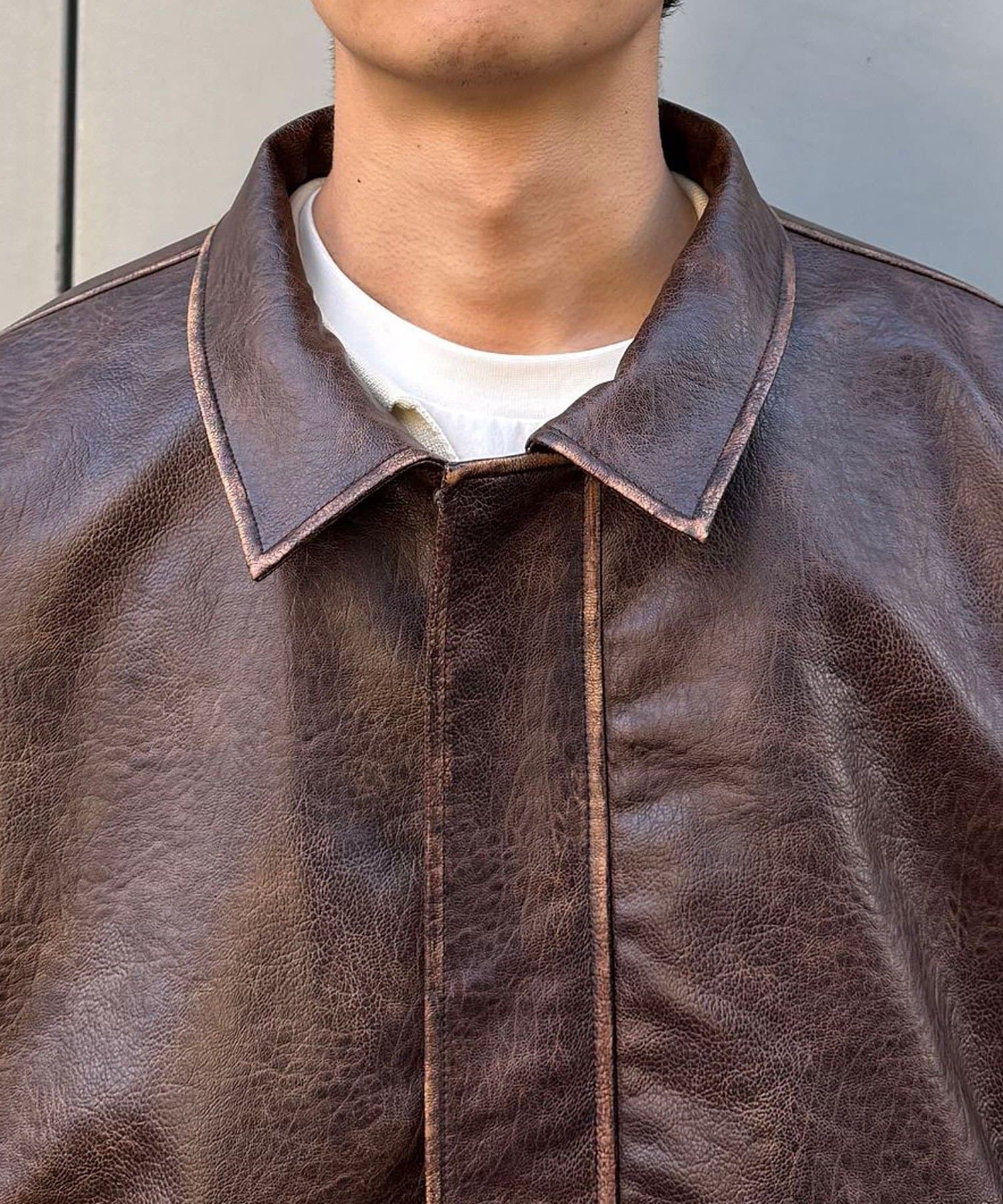 着込んだような風合いが魅力の、ヴィンテージライクなフェイクレザージャケット。