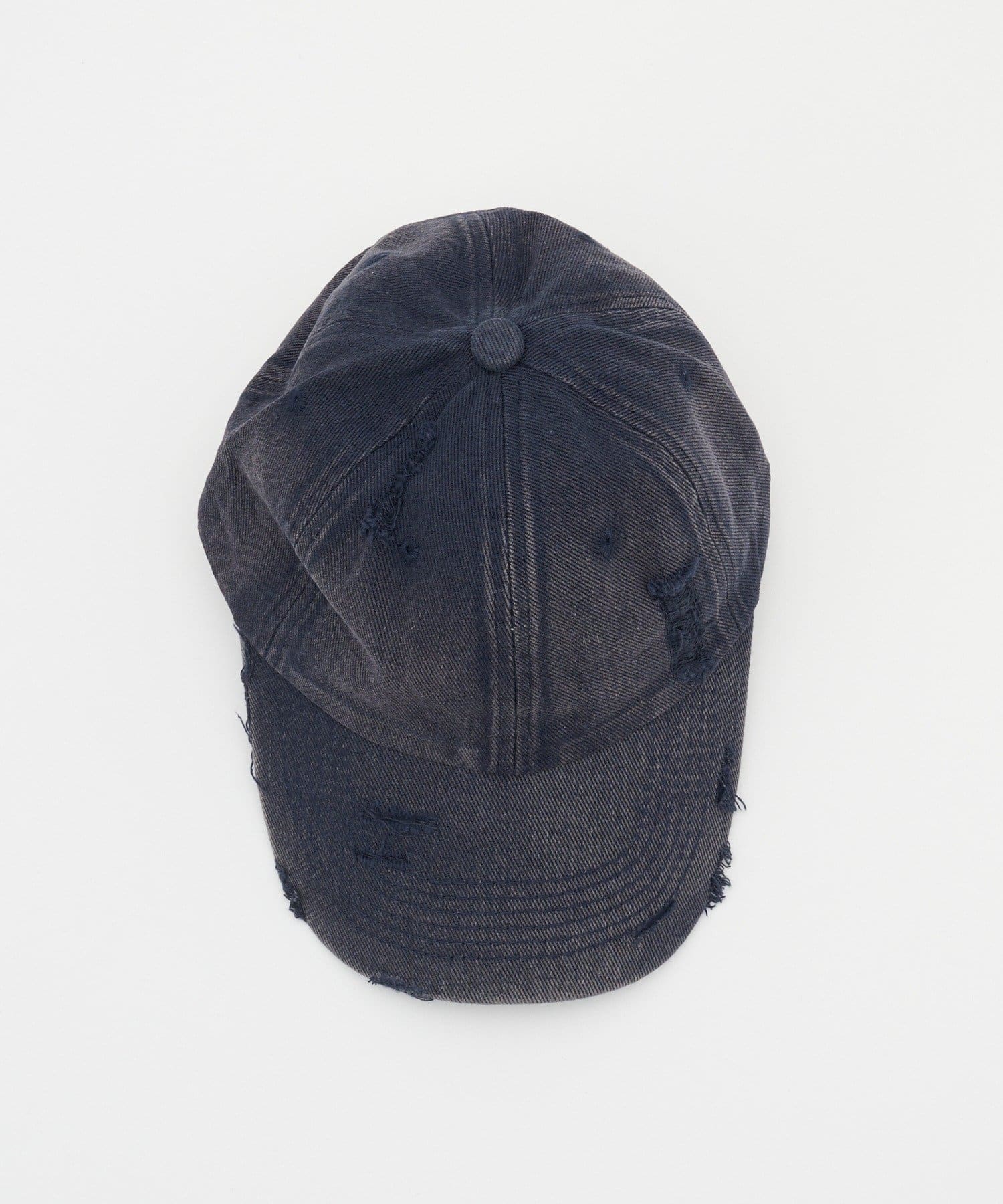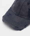 色褪せたような風合いと、計算されたダメージ加工が目を引くリメイクヴィンテージライクキャップ。