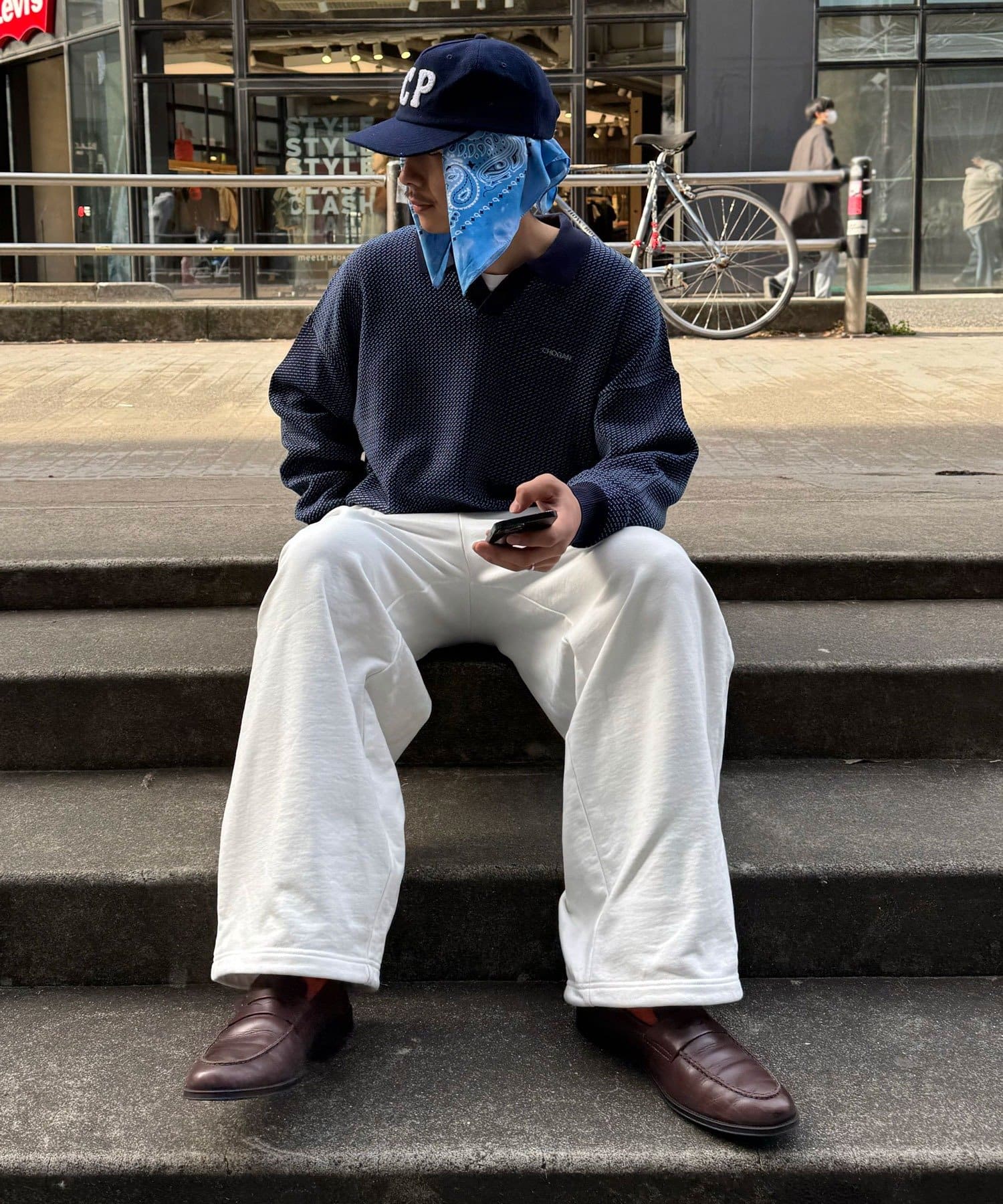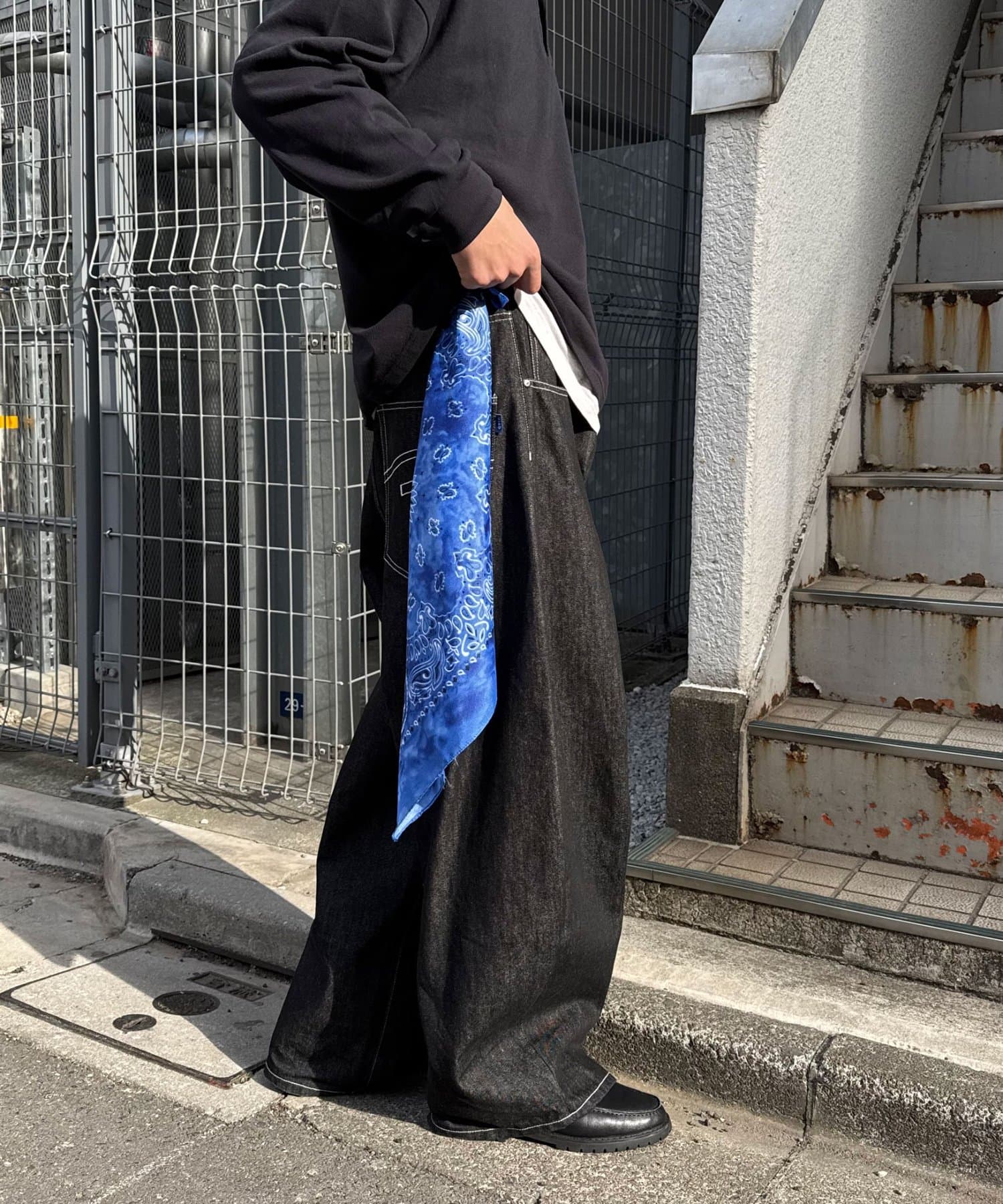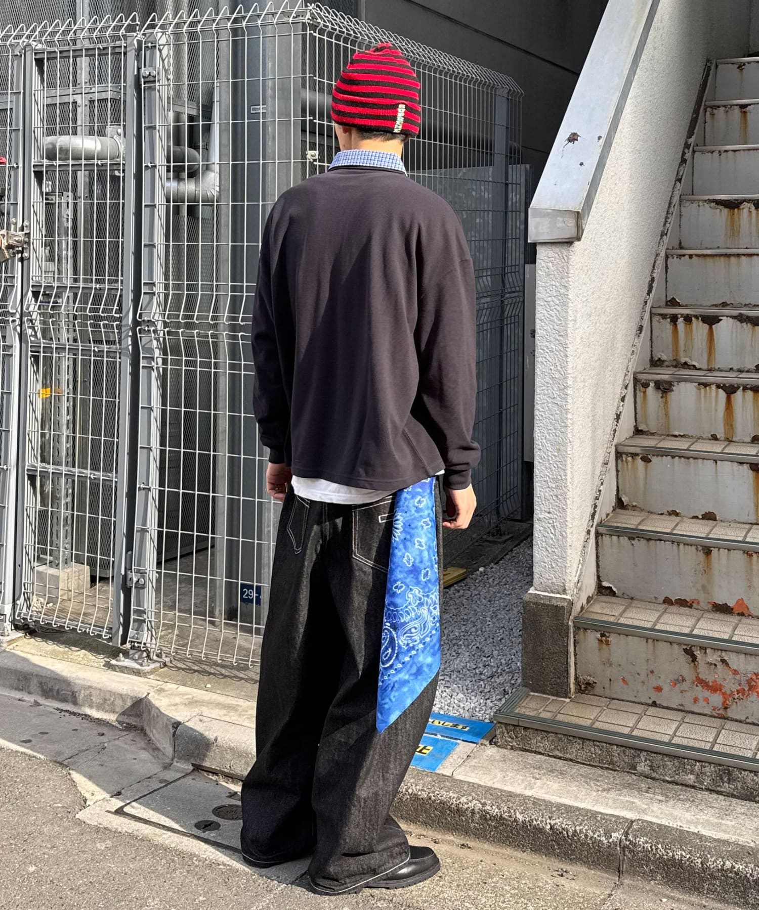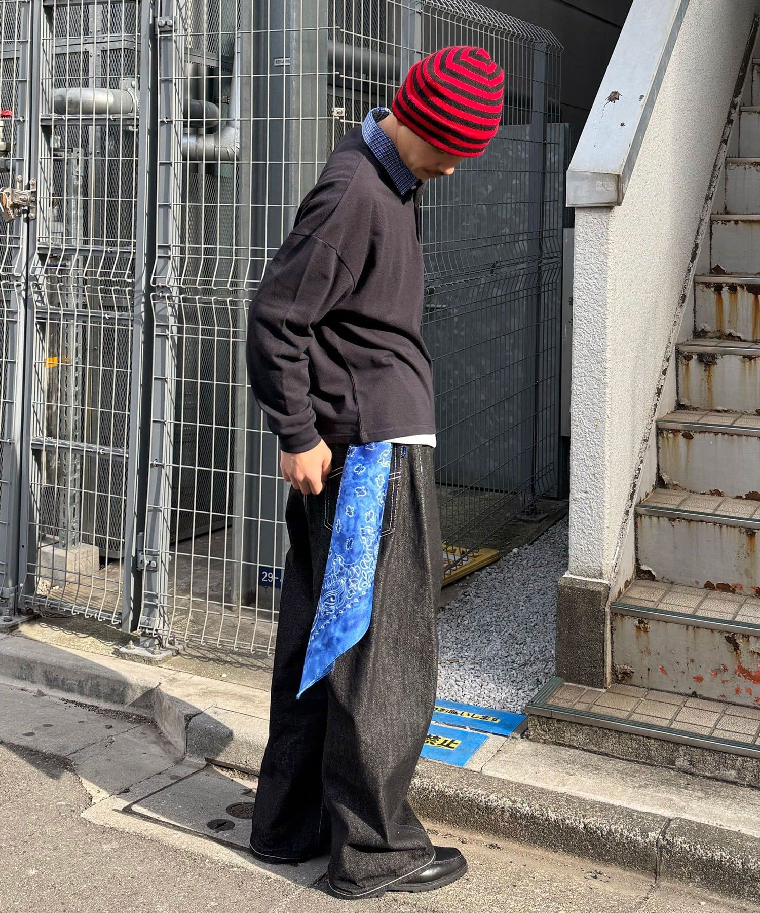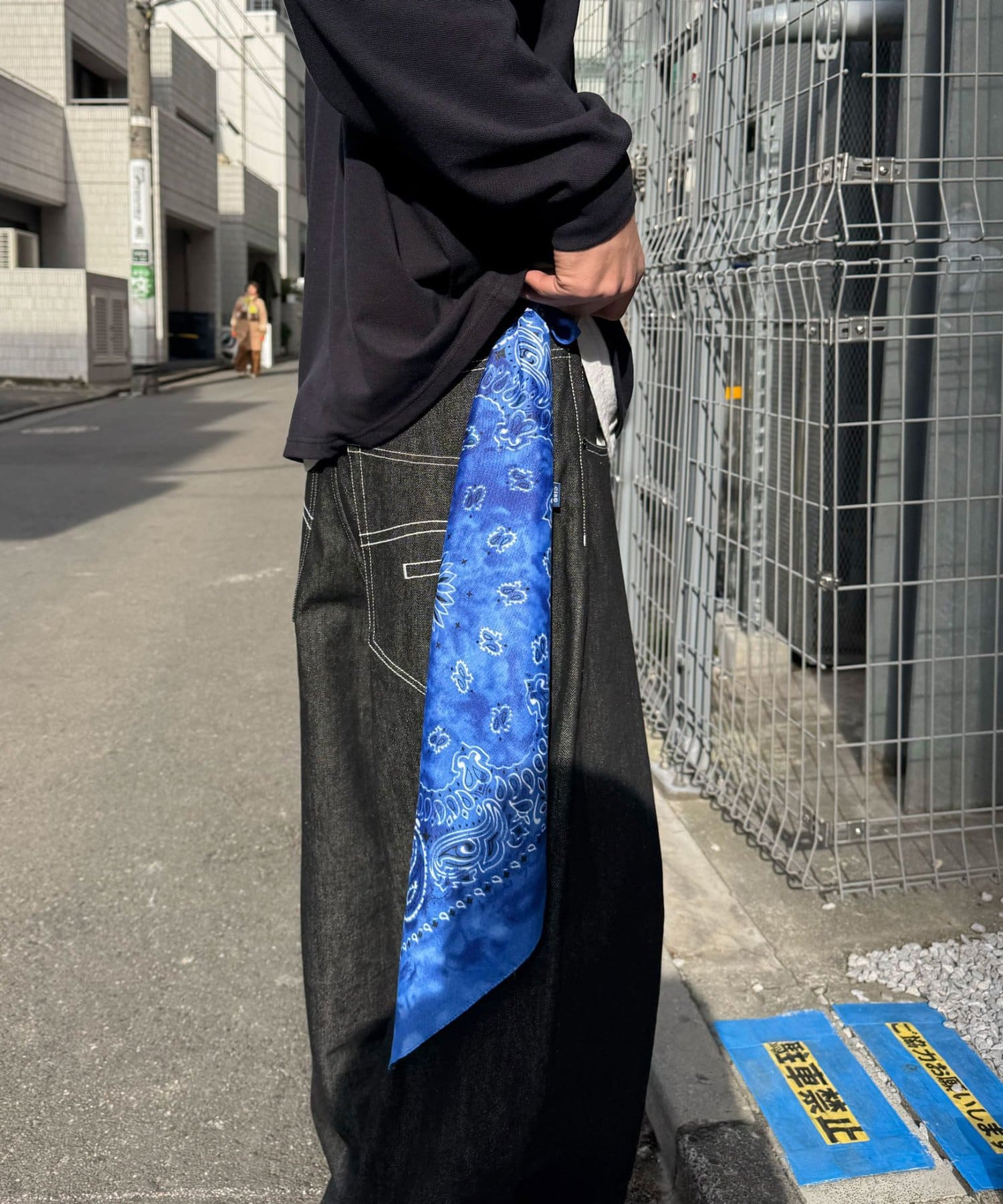 デニムのベルトループに通して垂らしたり、首元に巻いてアクセントにするのがおすすめ。