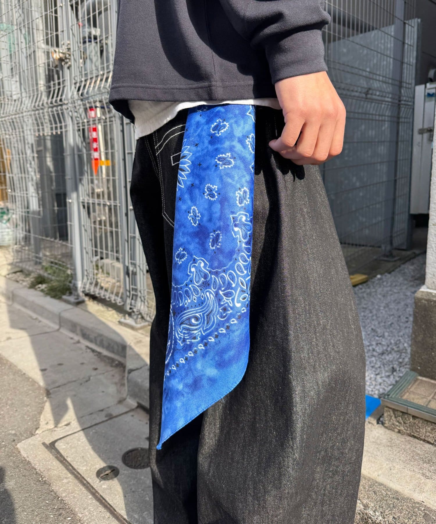 タイダイ染めのムラ感とバンダナ柄を組み合わせた、アレンジ自在なバンダナ。