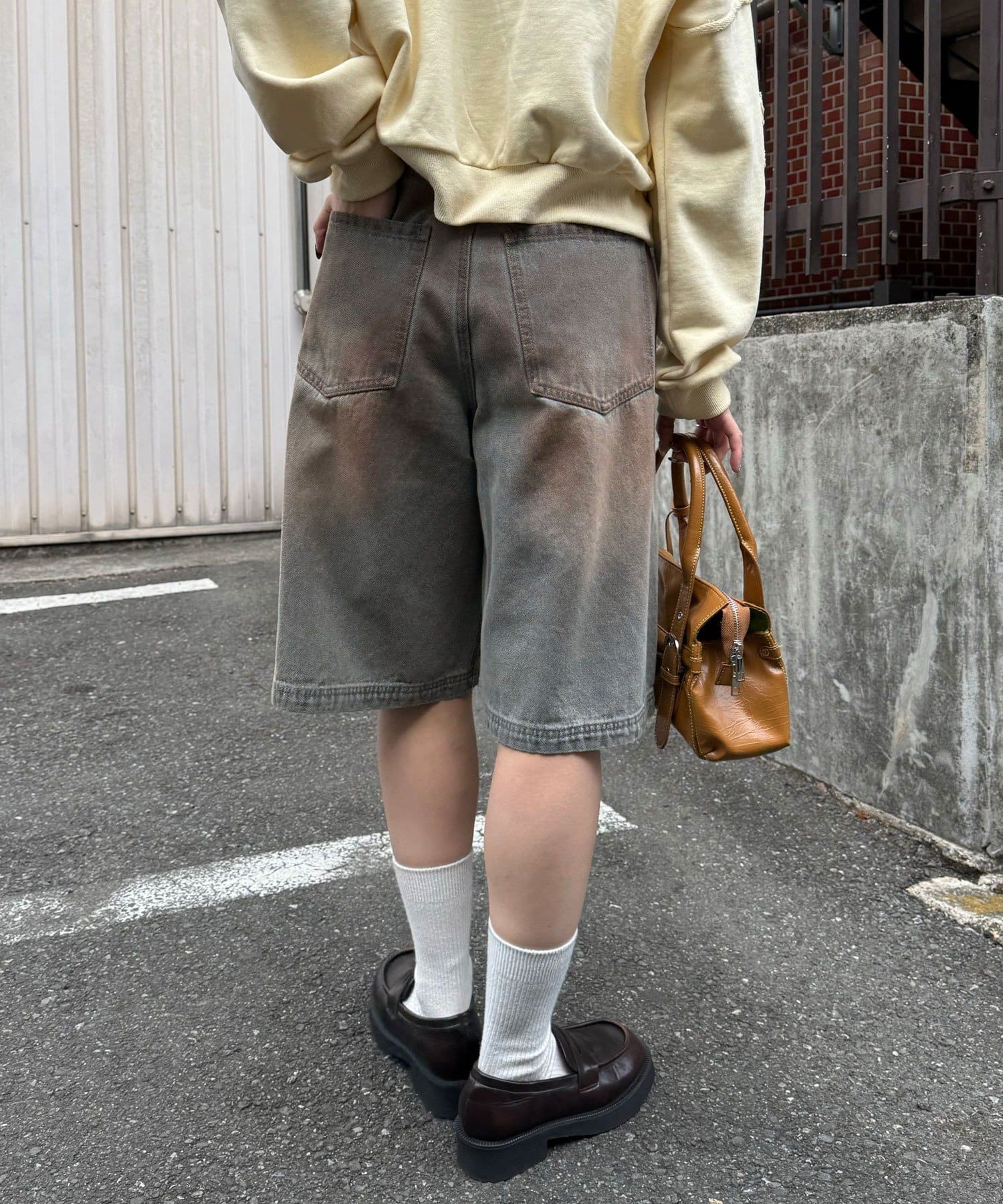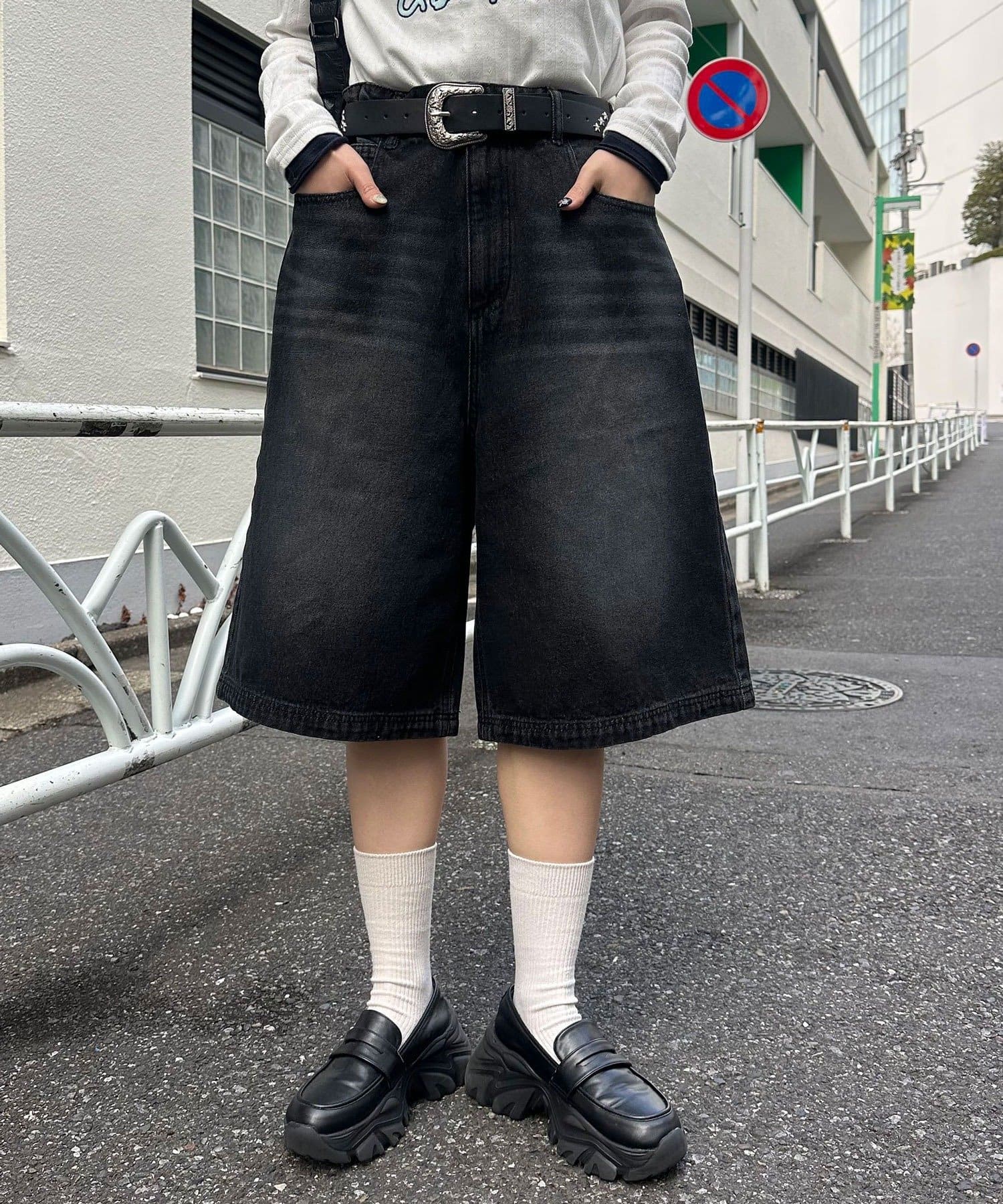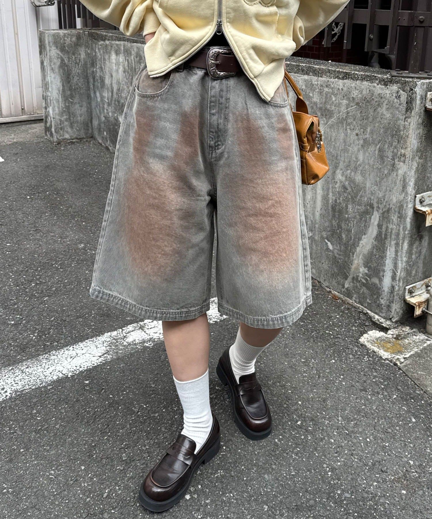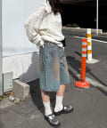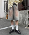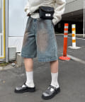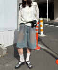 ヴィンテージライクな色落ち加工が目を引く、バギーシルエットのデニムショーツ。