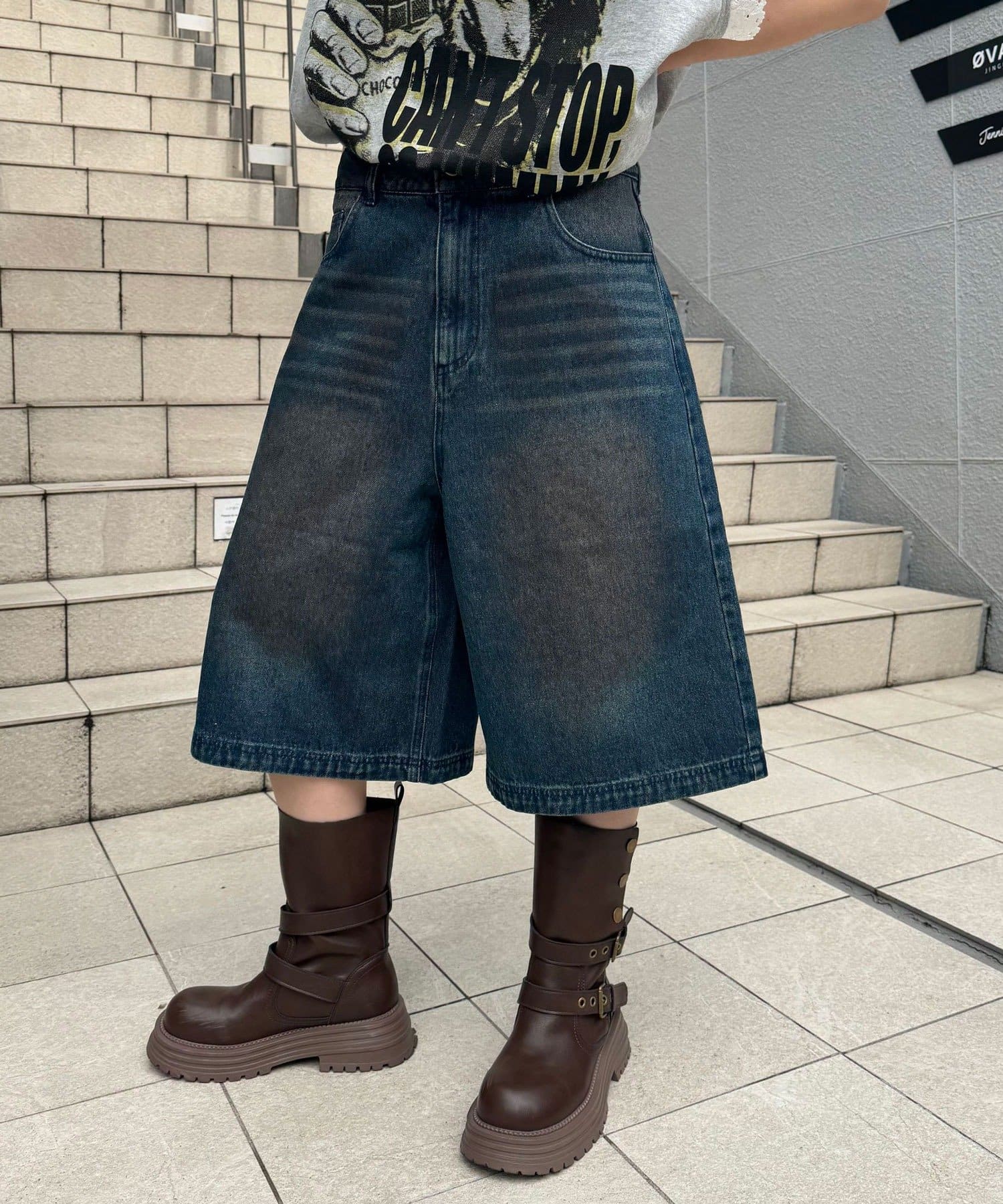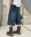 ヴィンテージライクデニムバギーショーツ