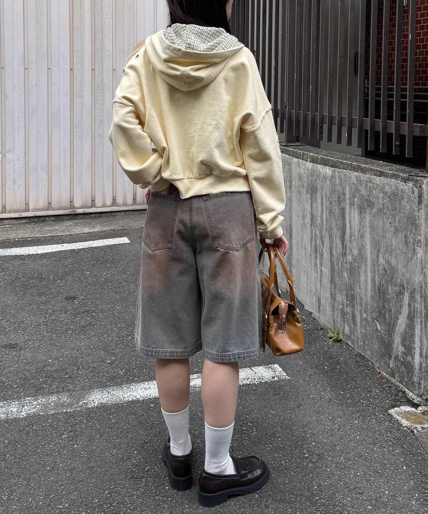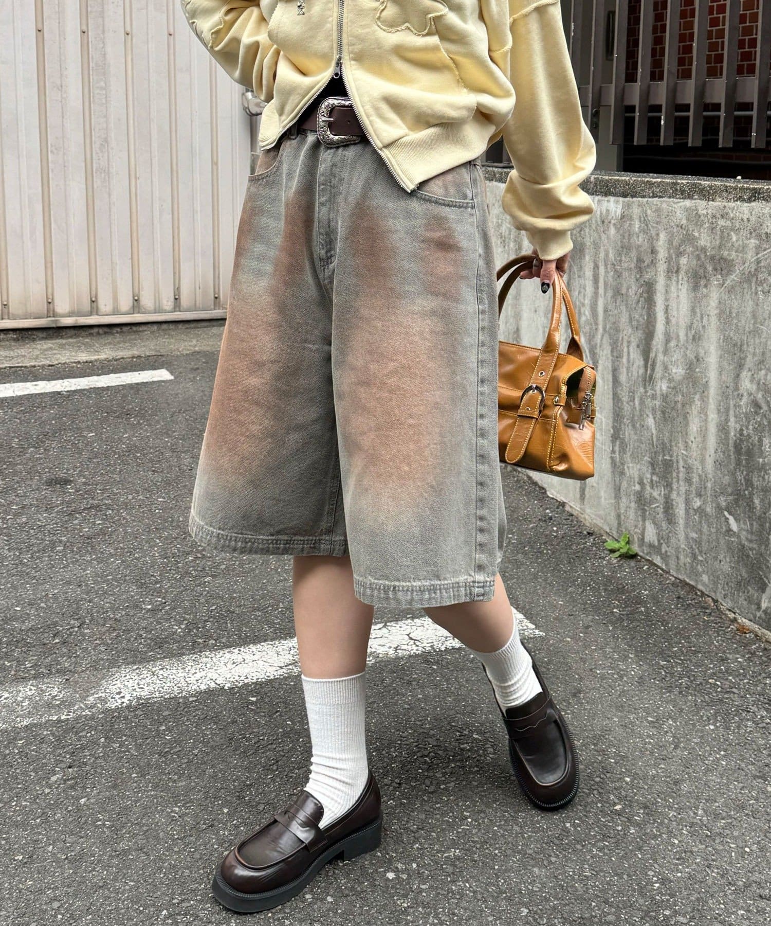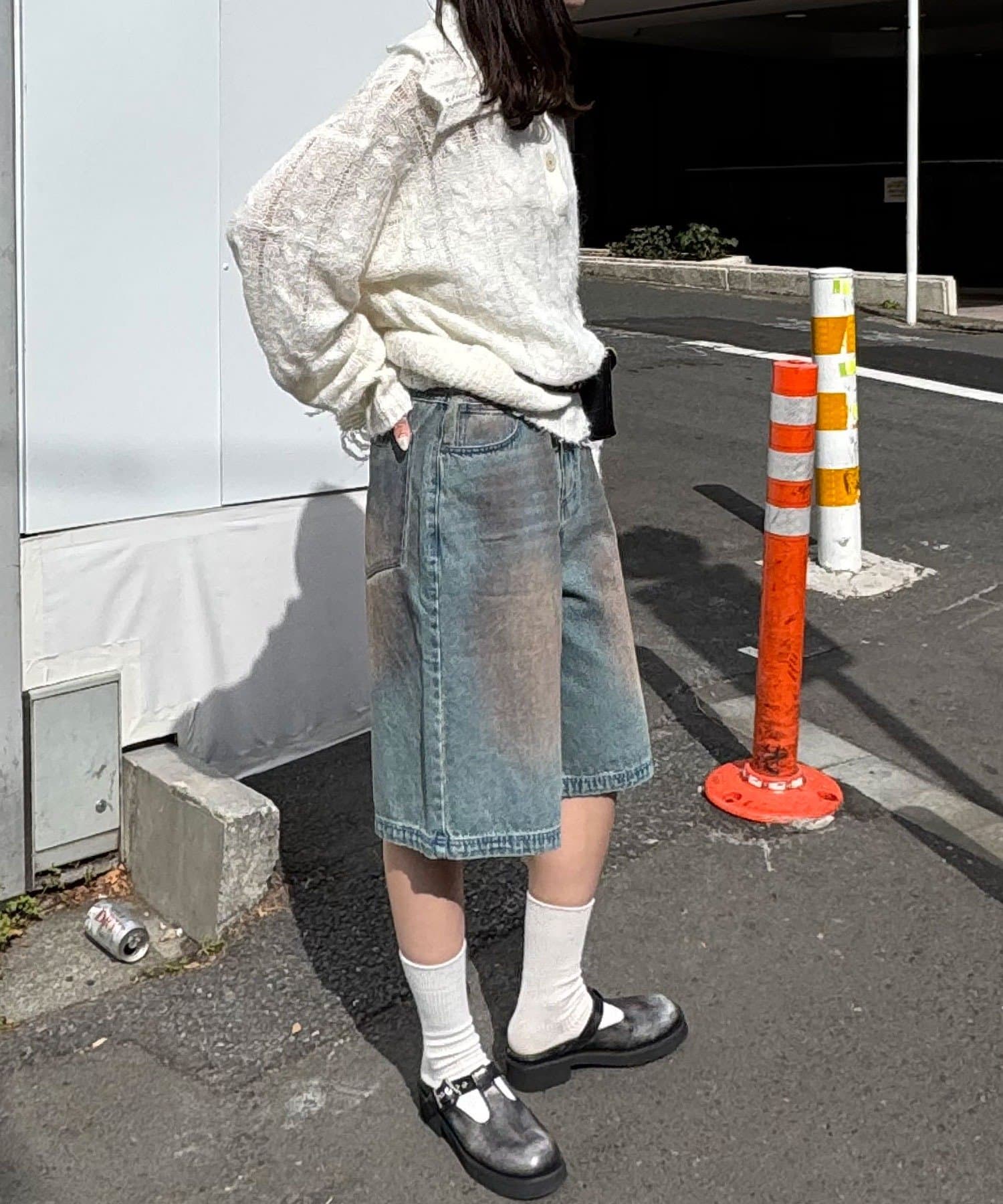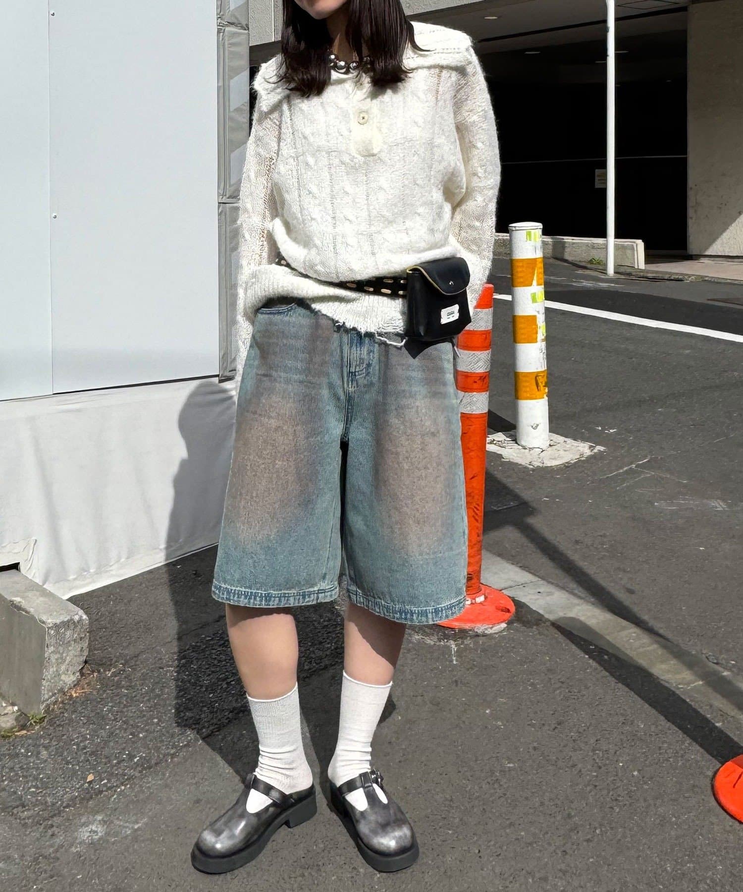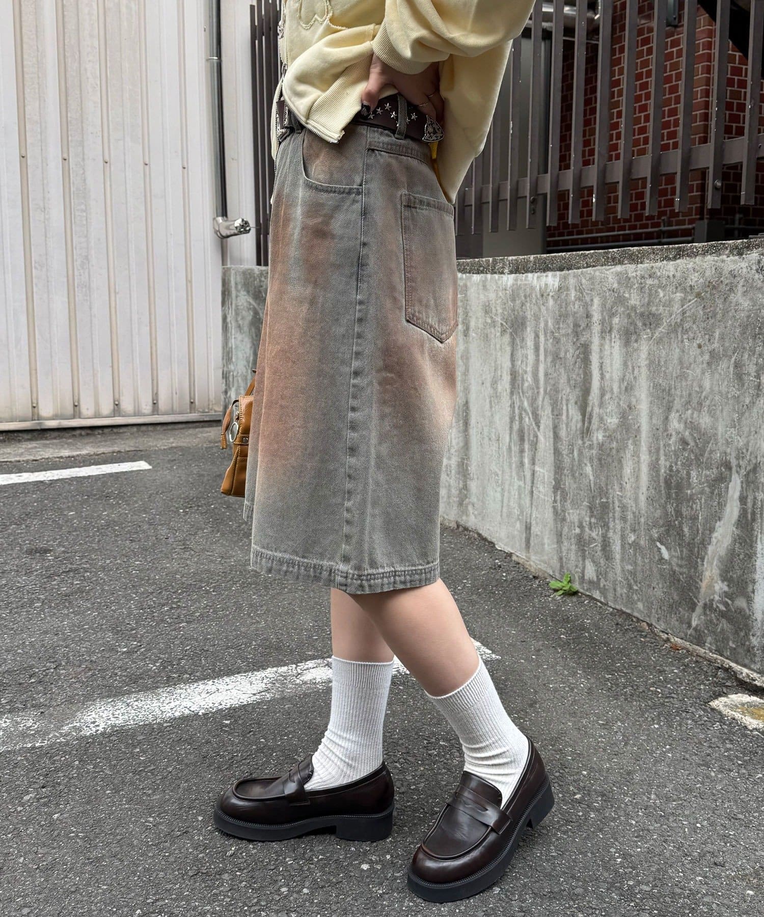白ソックスにローファーを合わせた、少しクラシックな足元で引き締めるのが今っぽくておすすめ。