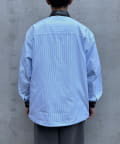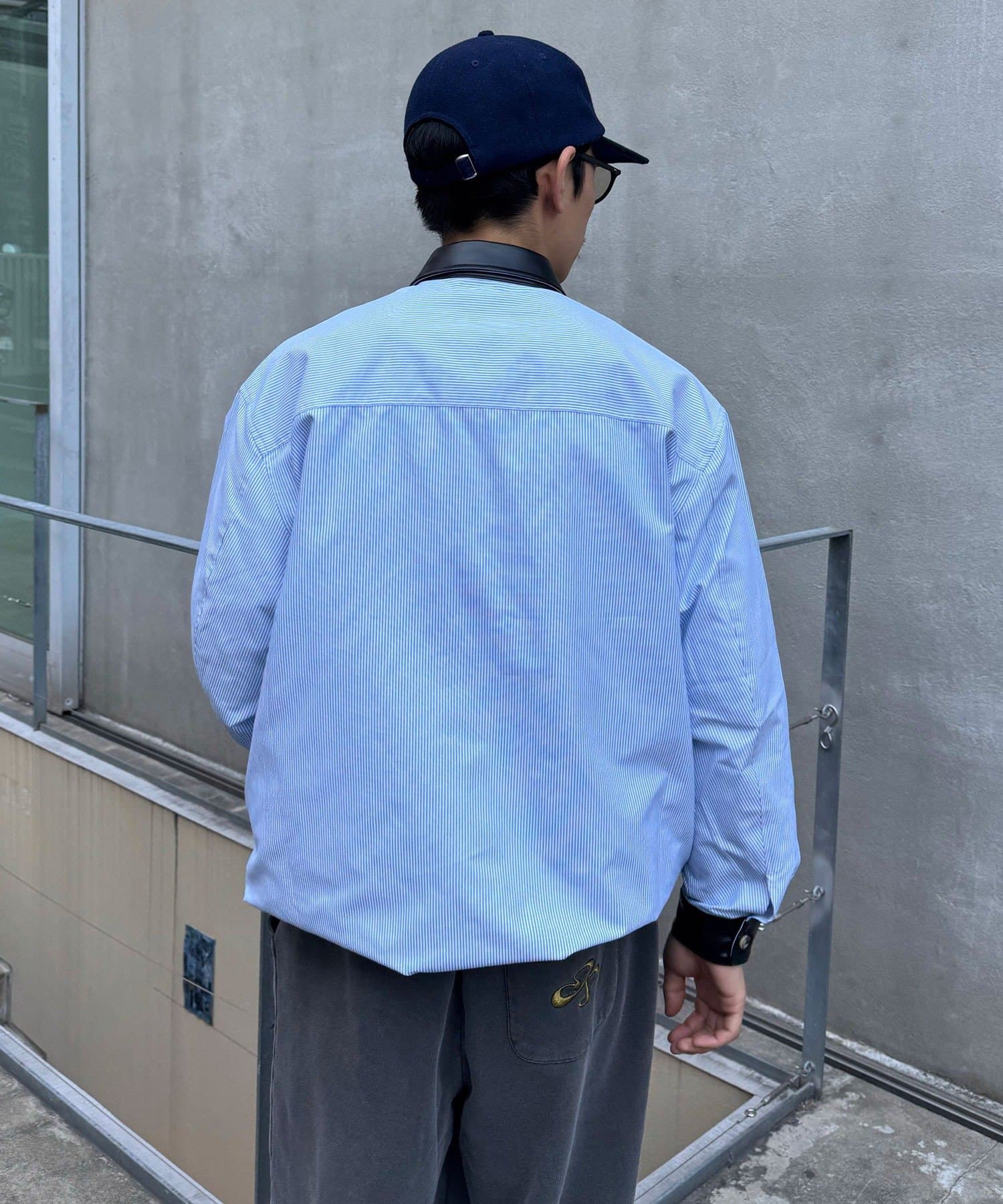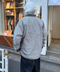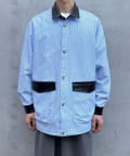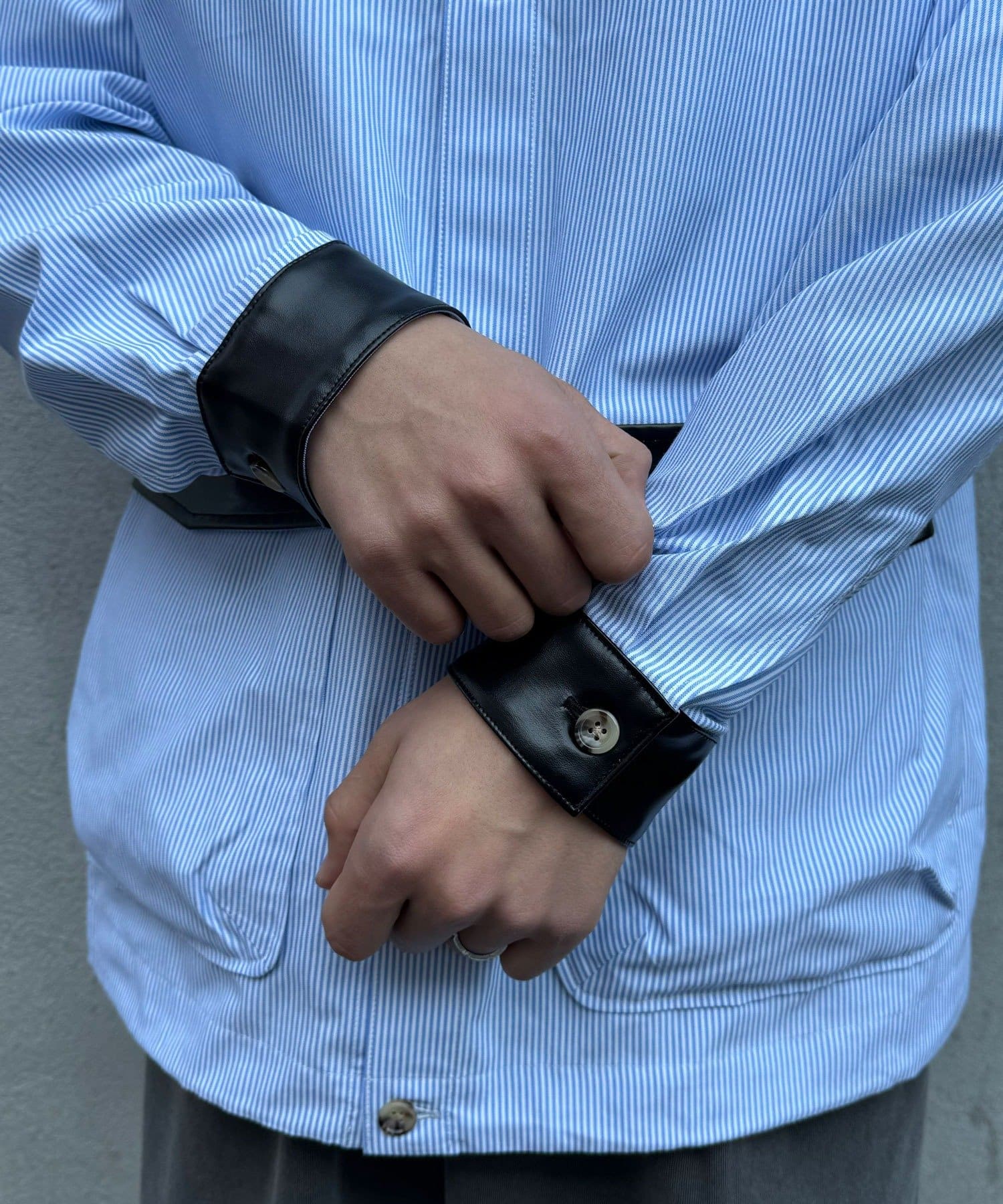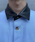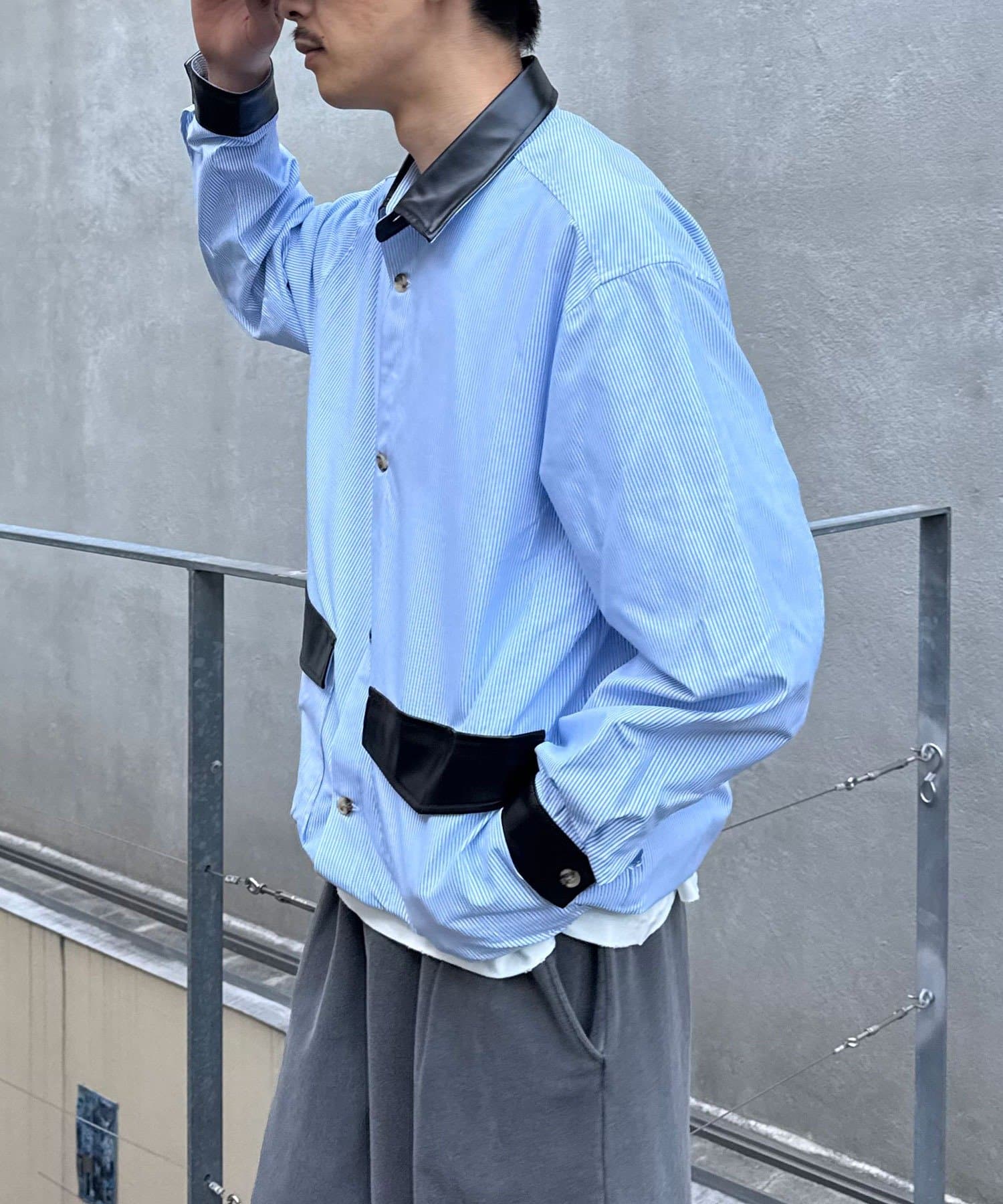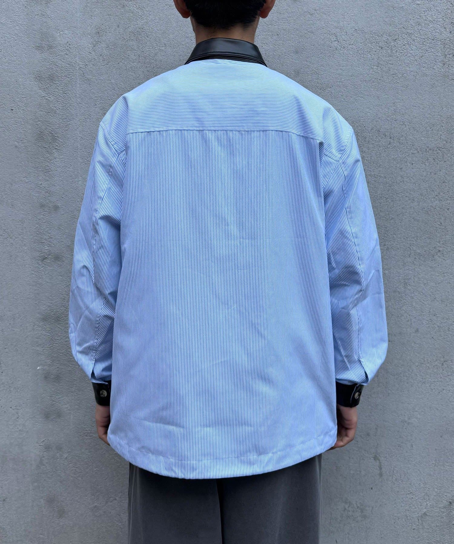 レザー襟切り替えストライプシャツジャケット