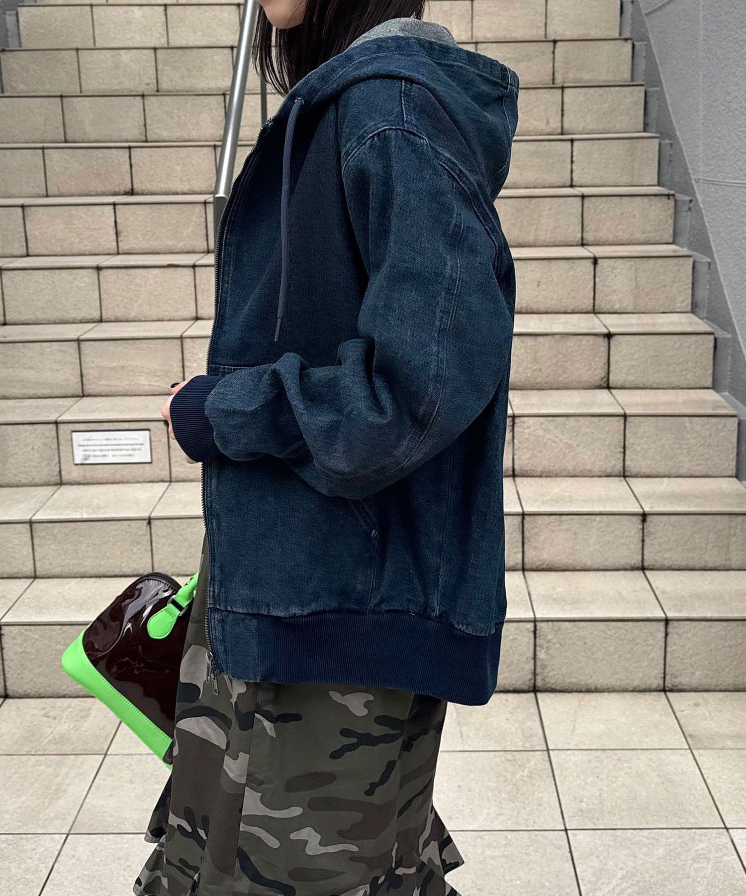 デニムダブルジップパーカー