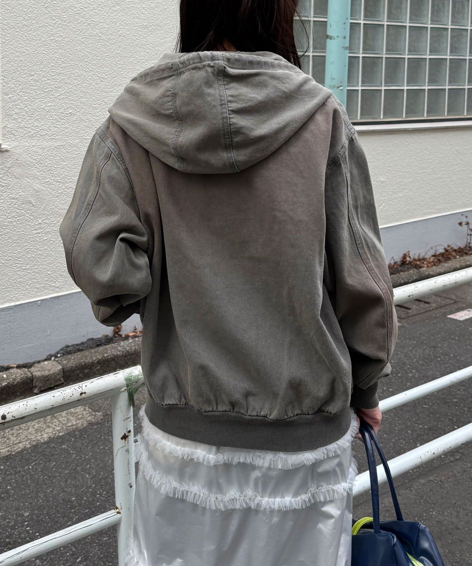 ゆったりとしたオーバーサイズシルエットと、程よく厚みのある生地感で、季節の変わり目のライトアウターとして重宝します。