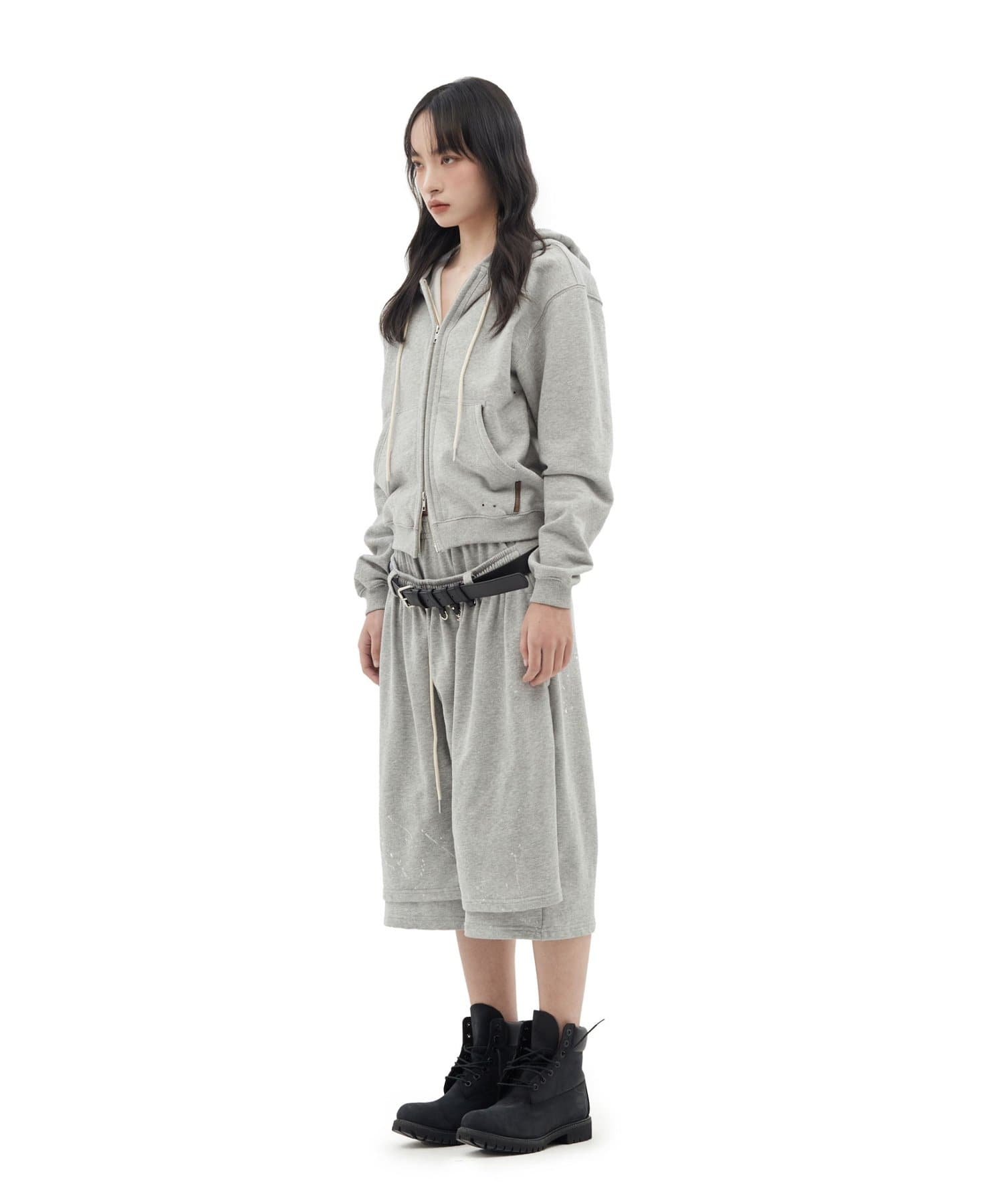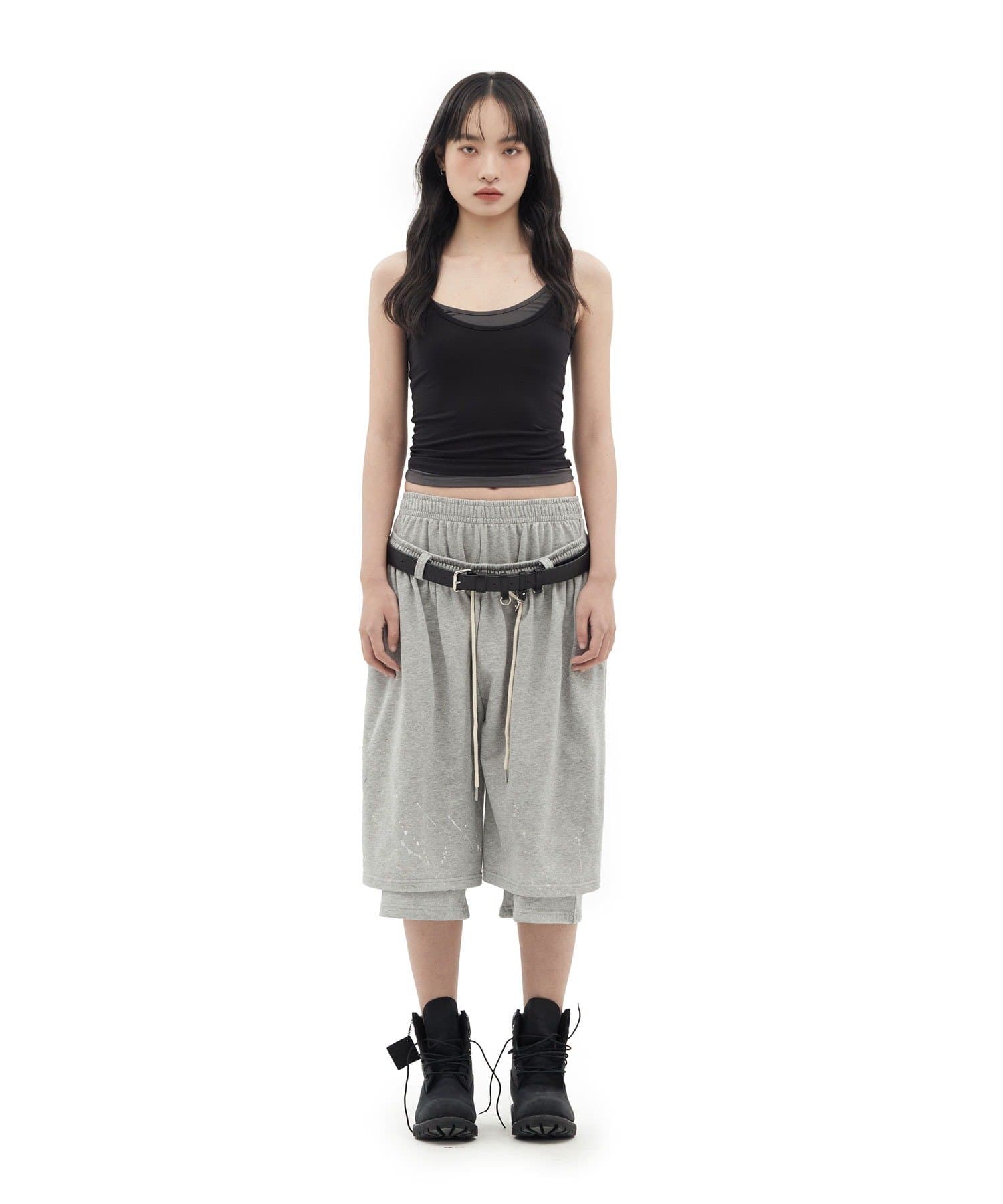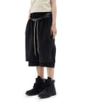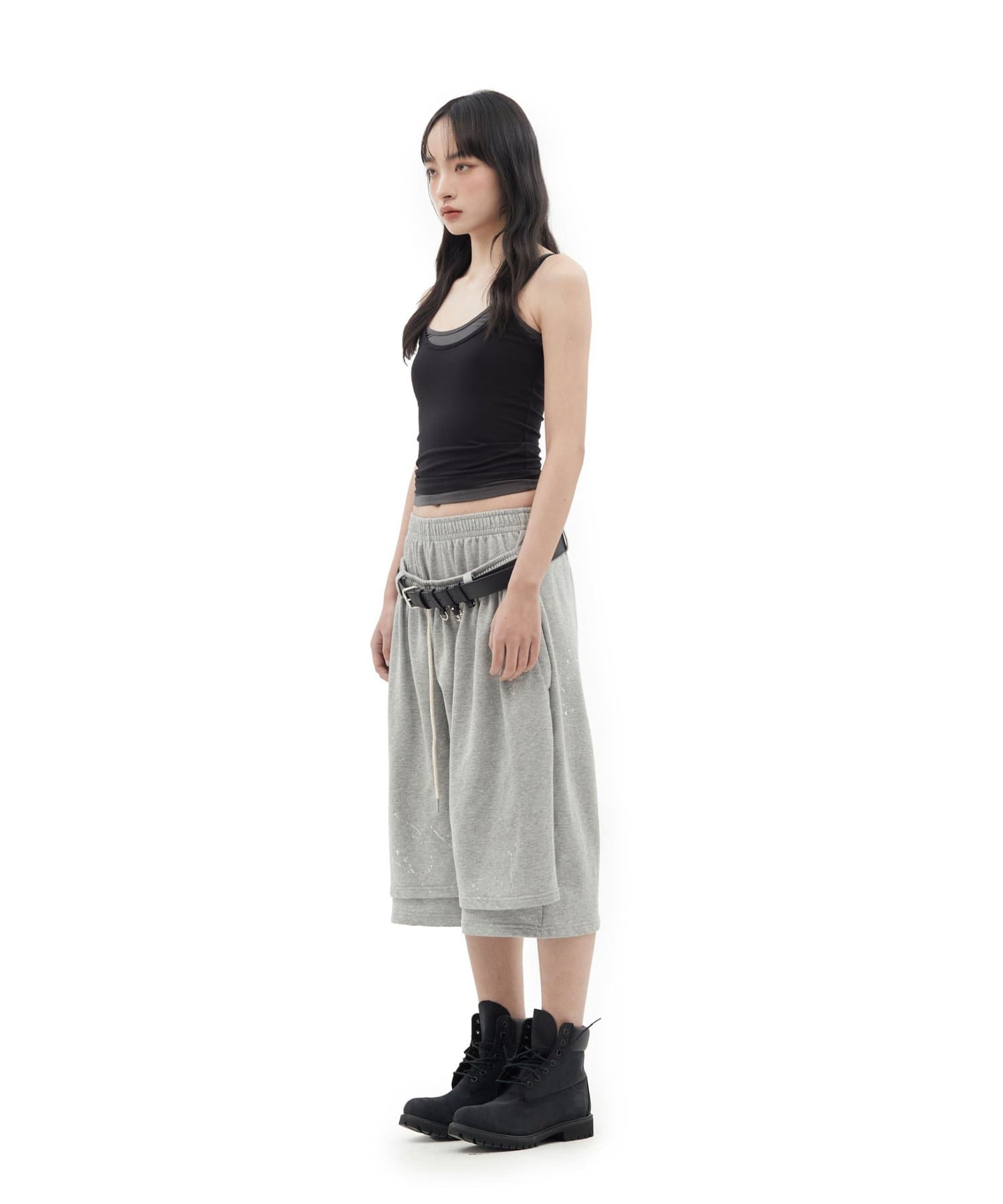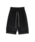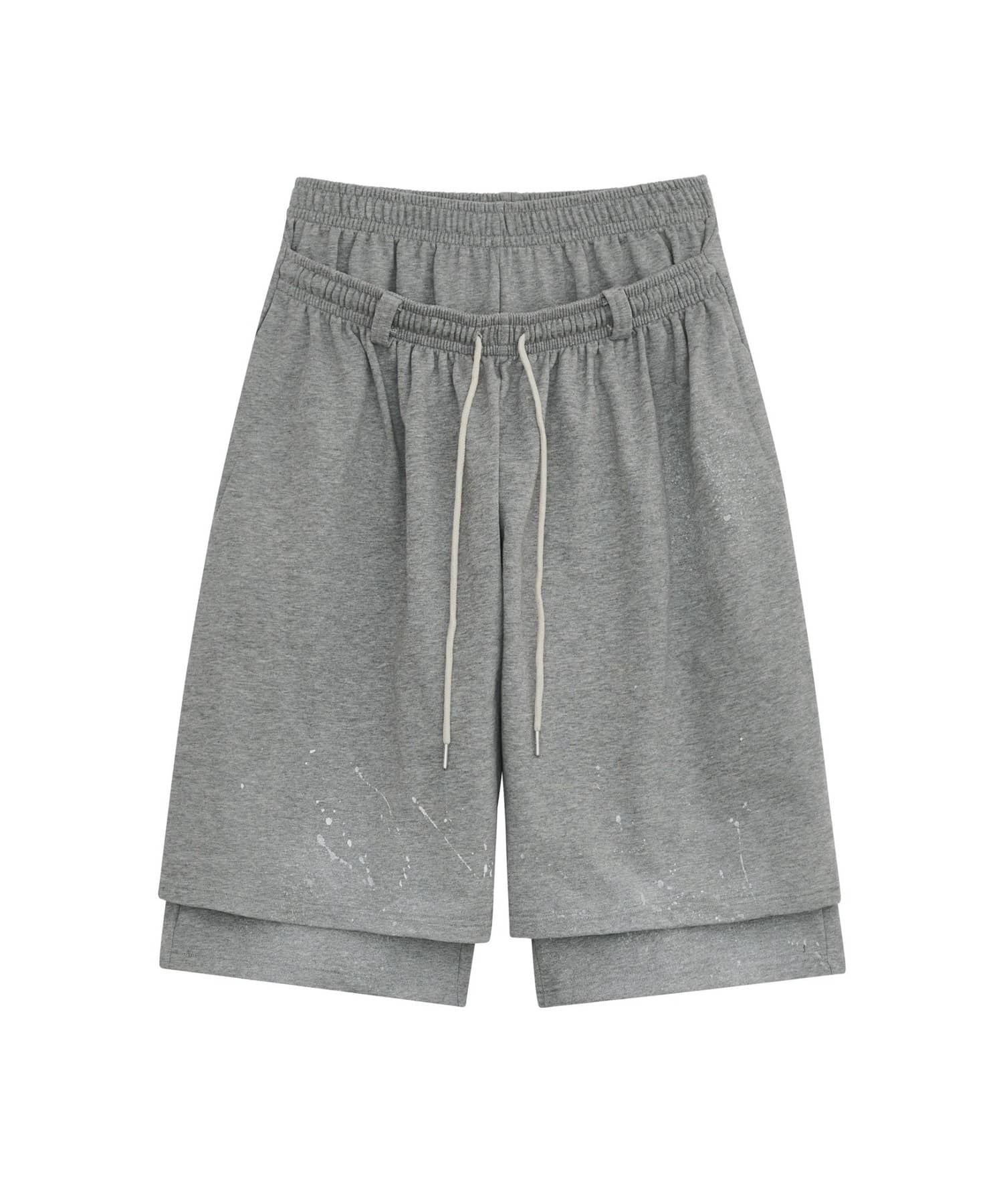 2枚重ねて穿いているような立体的なレイヤードシルエットが目を惹く、デザインスウェットショーツ。
