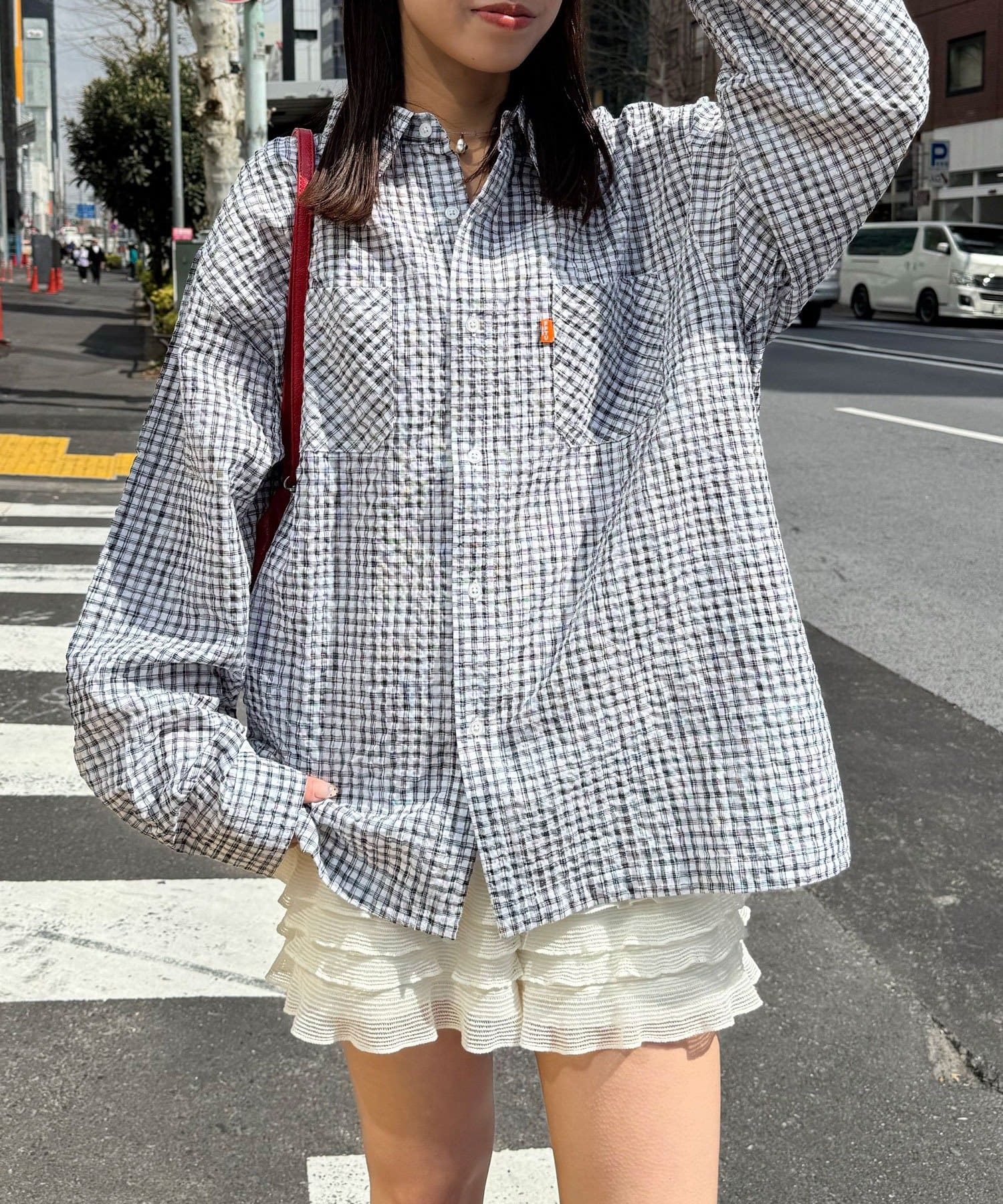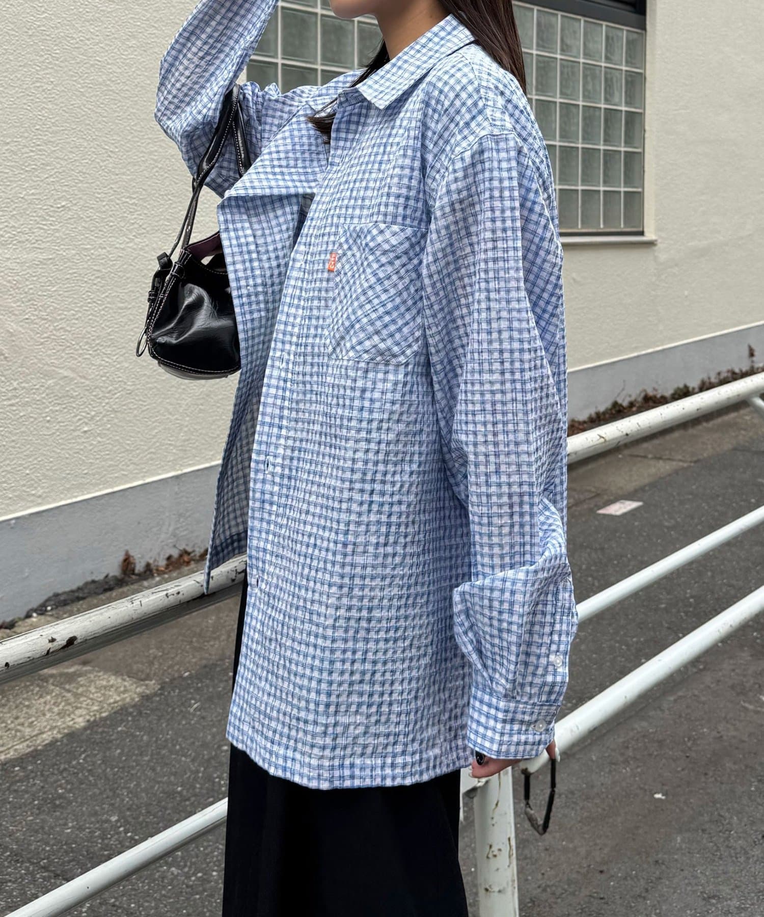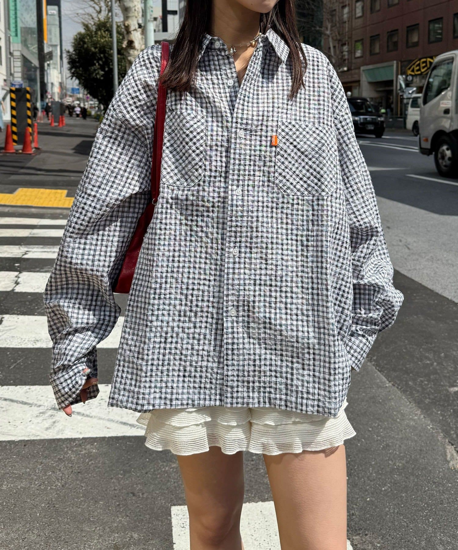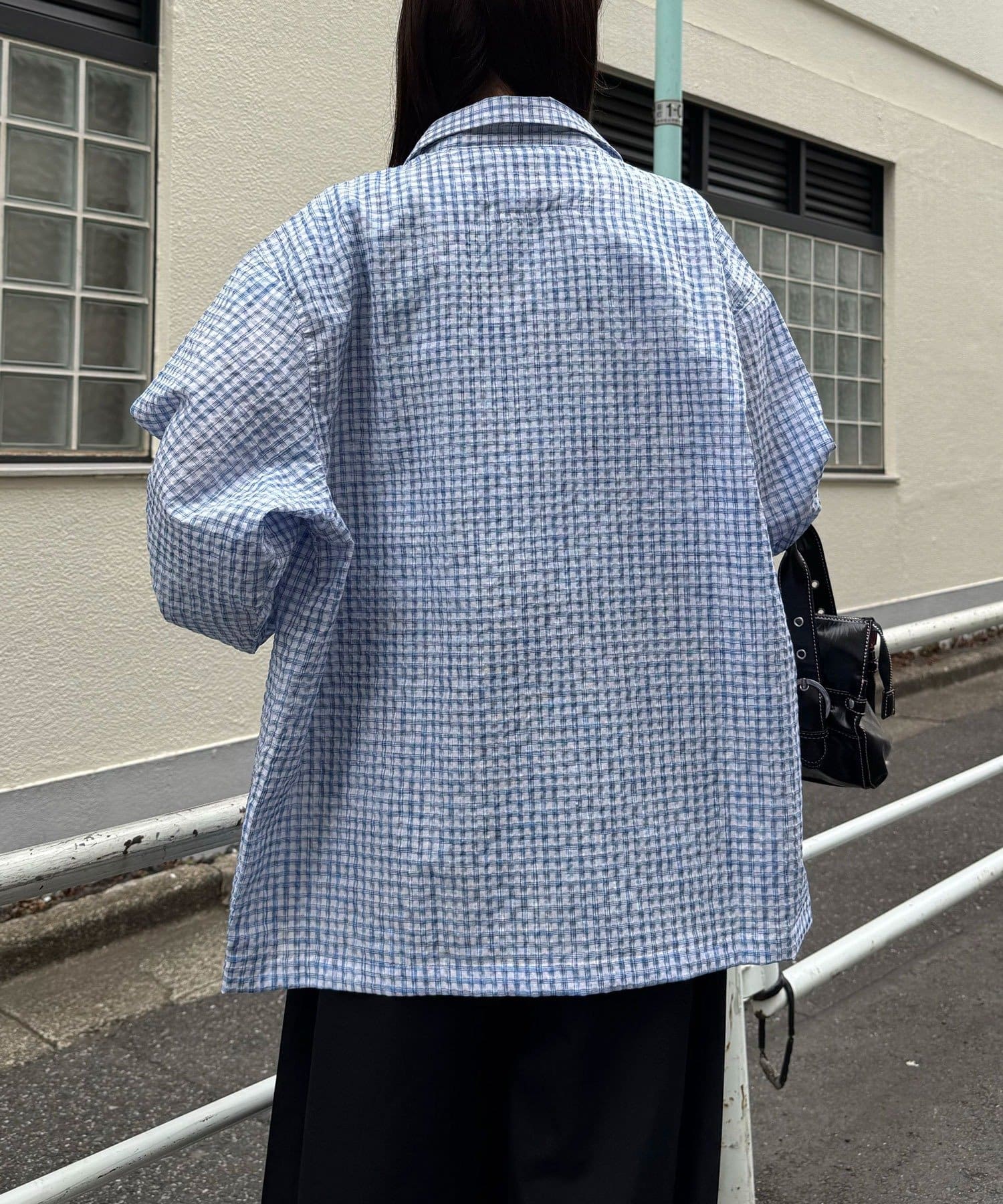 表情豊かな凹凸感が特徴のサッカー生地を使用した、清涼感あふれるチェックシャツ。