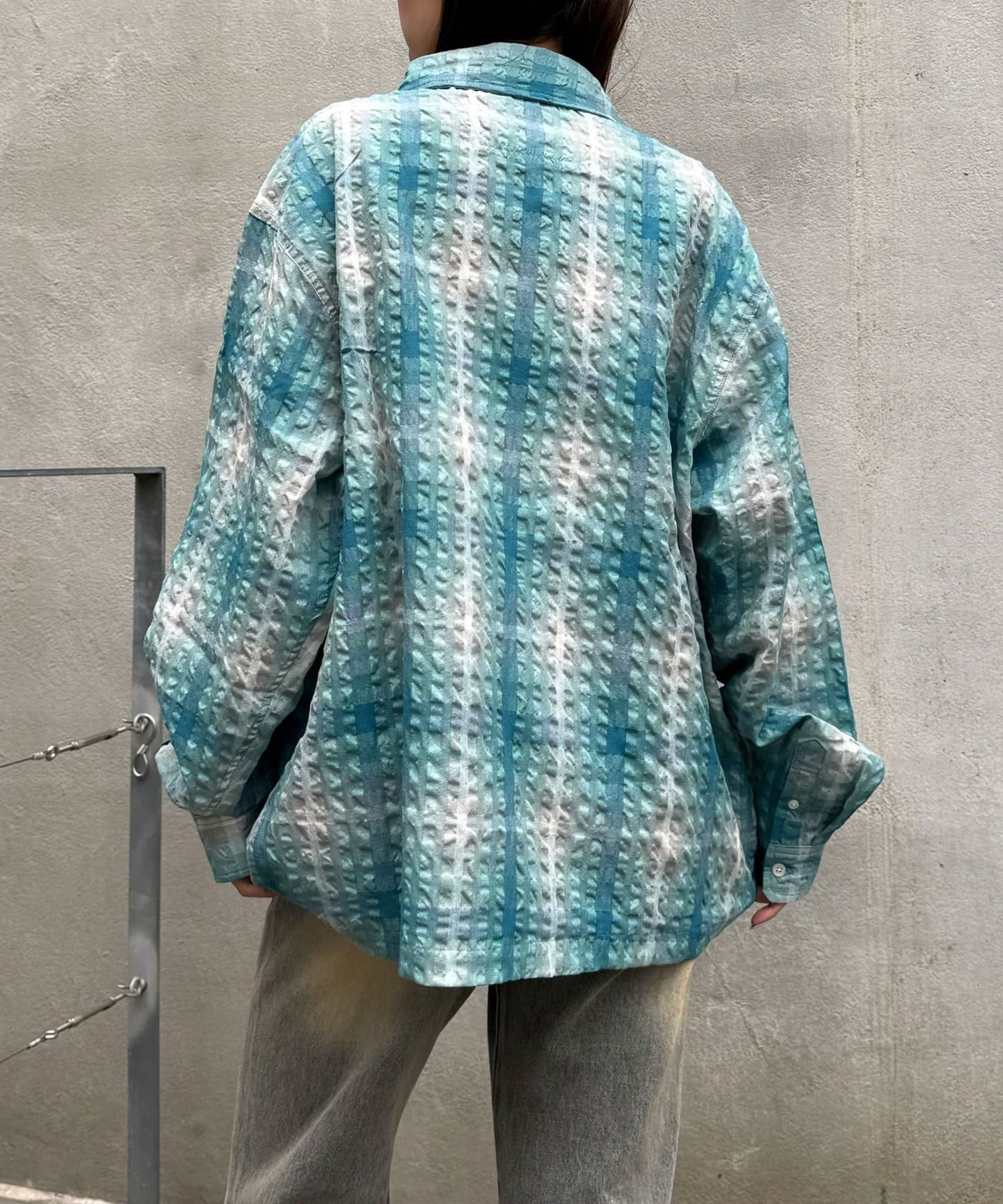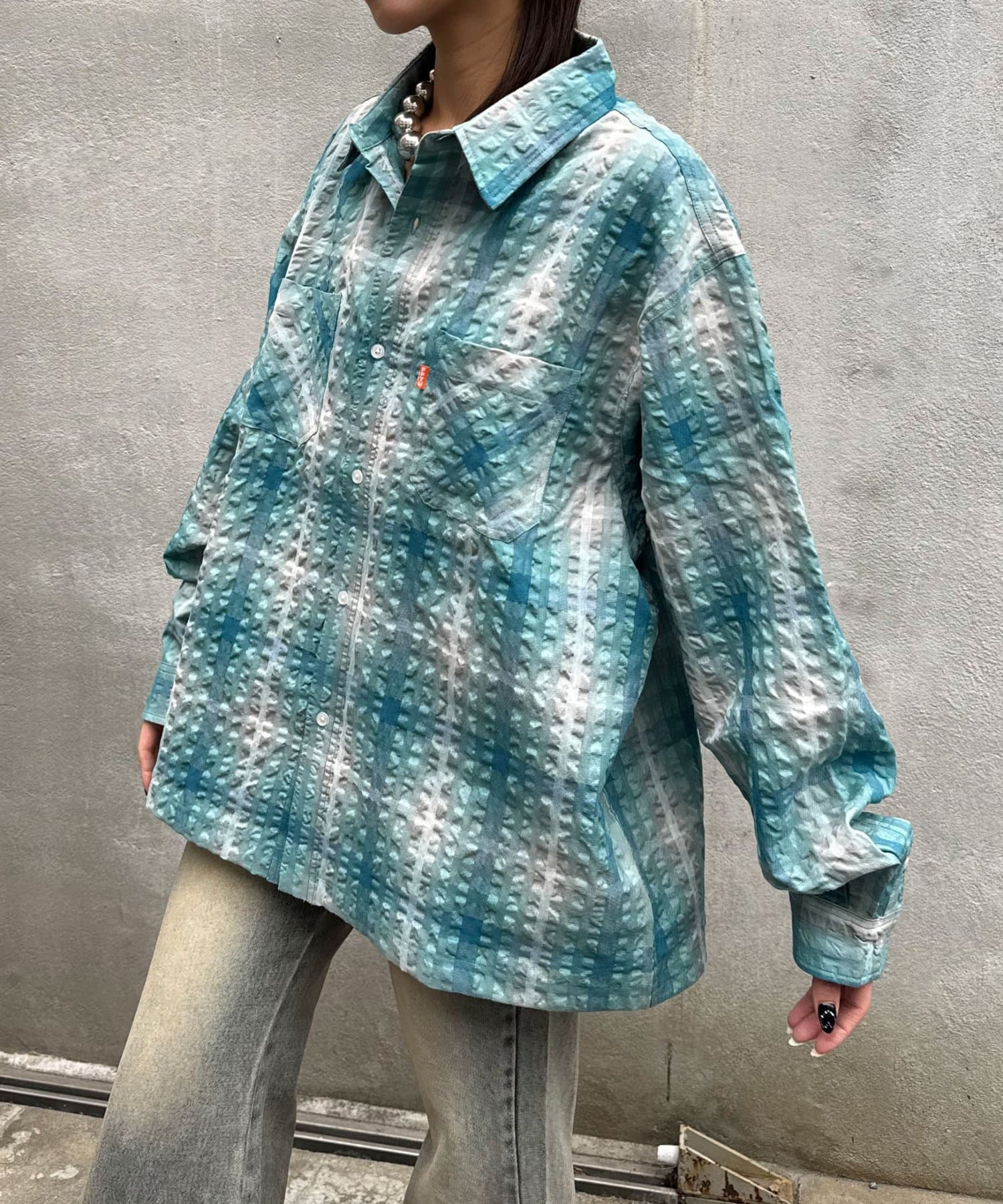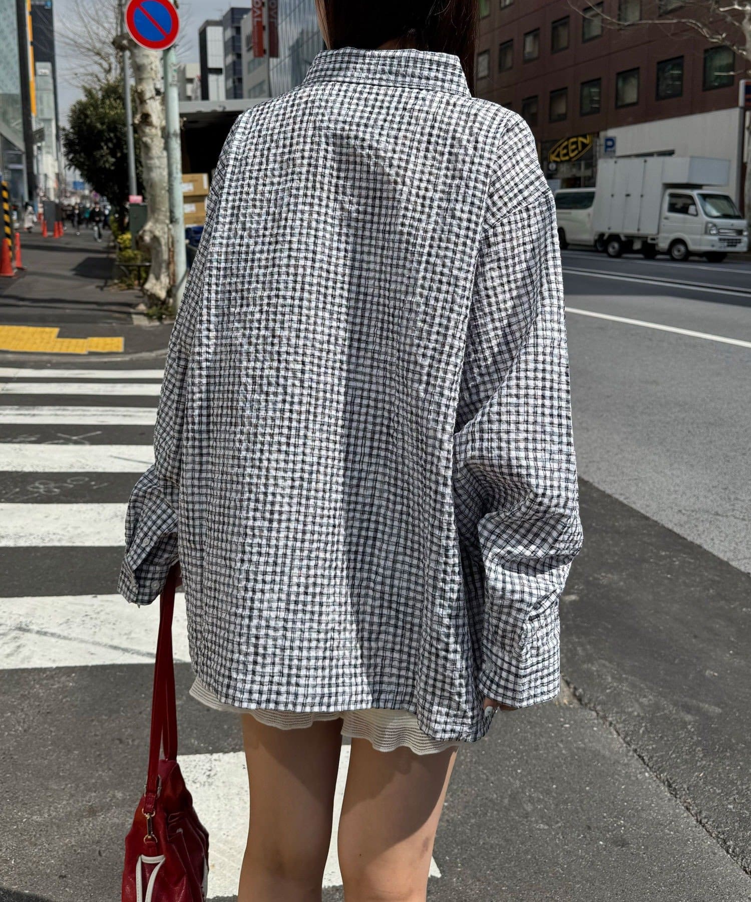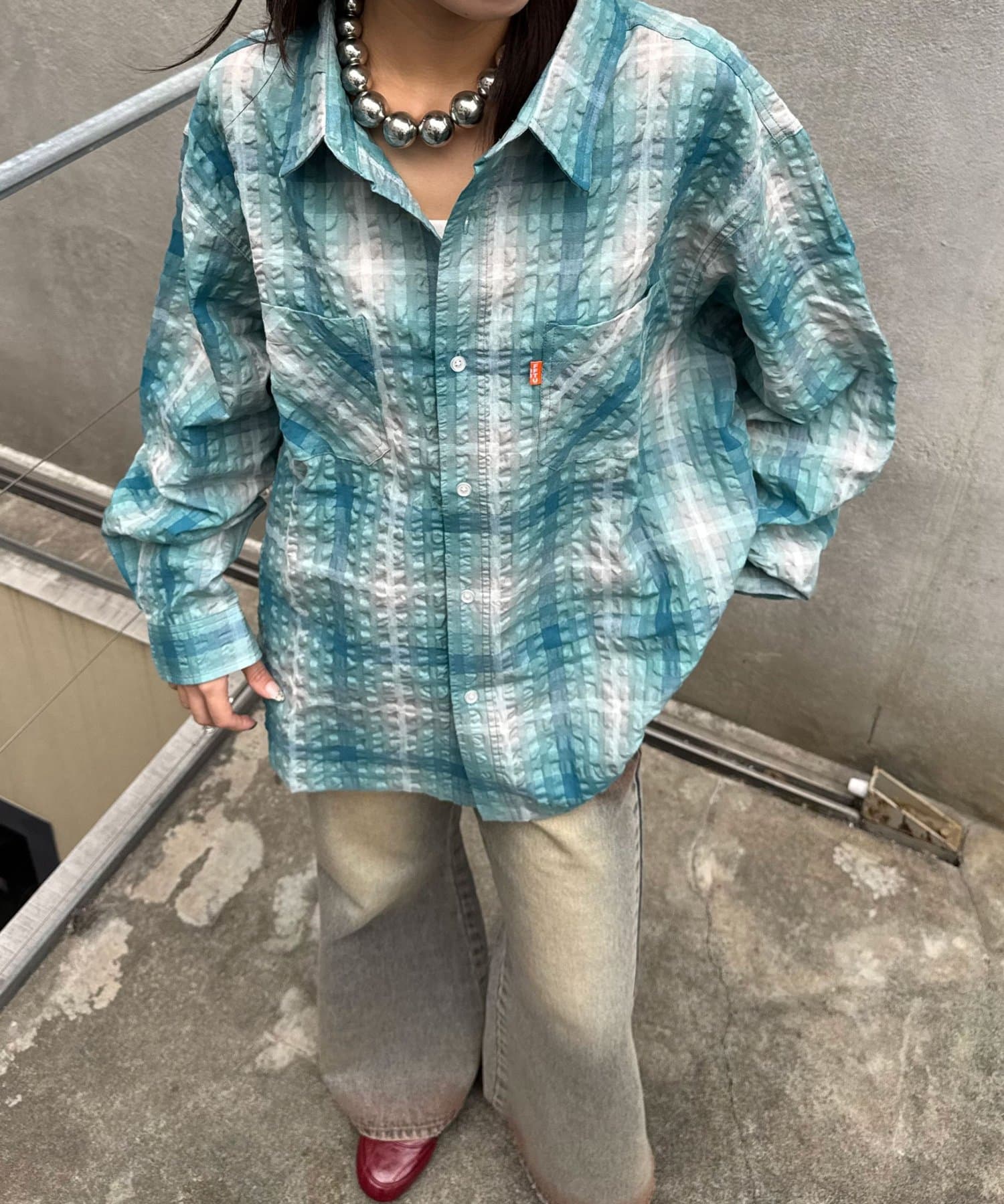 表情豊かな凹凸感が特徴のサッカー生地を使用した、清涼感あふれるチェックシャツ。