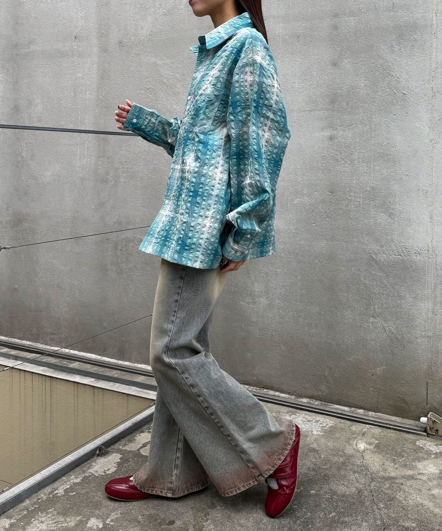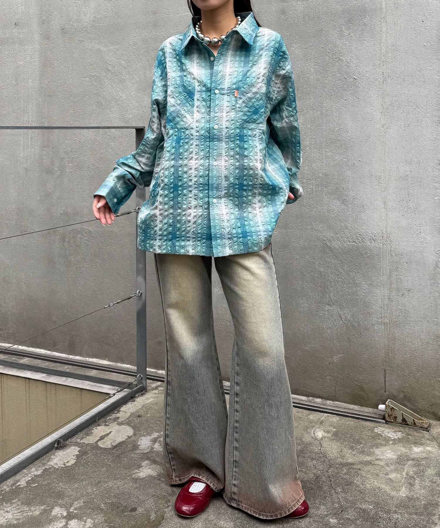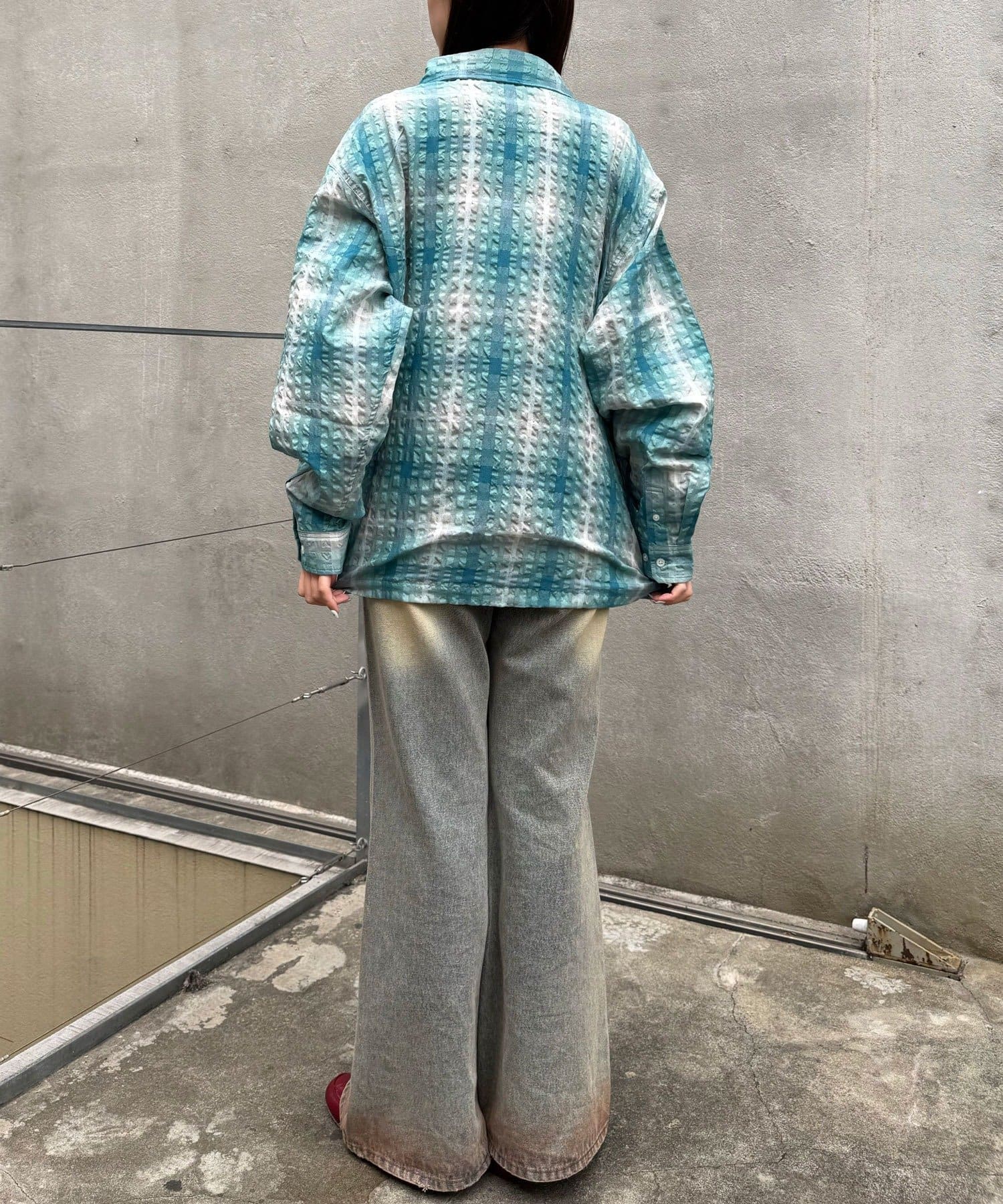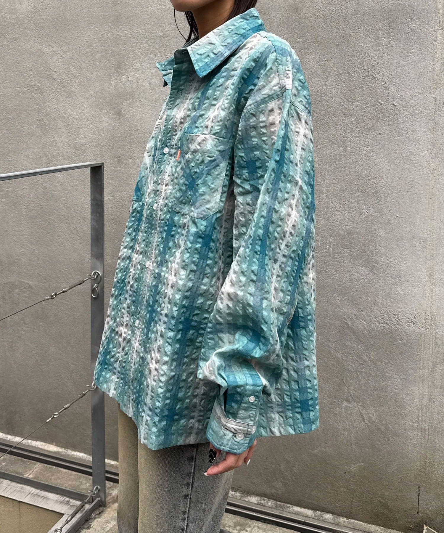 表情豊かな凹凸感が特徴のサッカー生地を使用した、清涼感あふれるチェックシャツ。