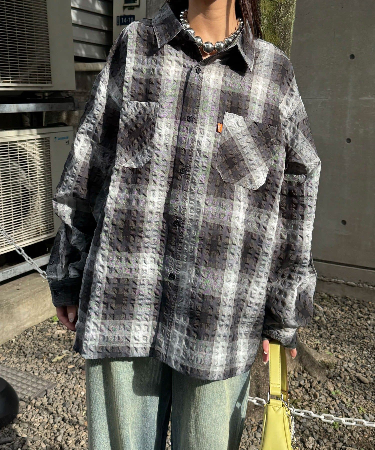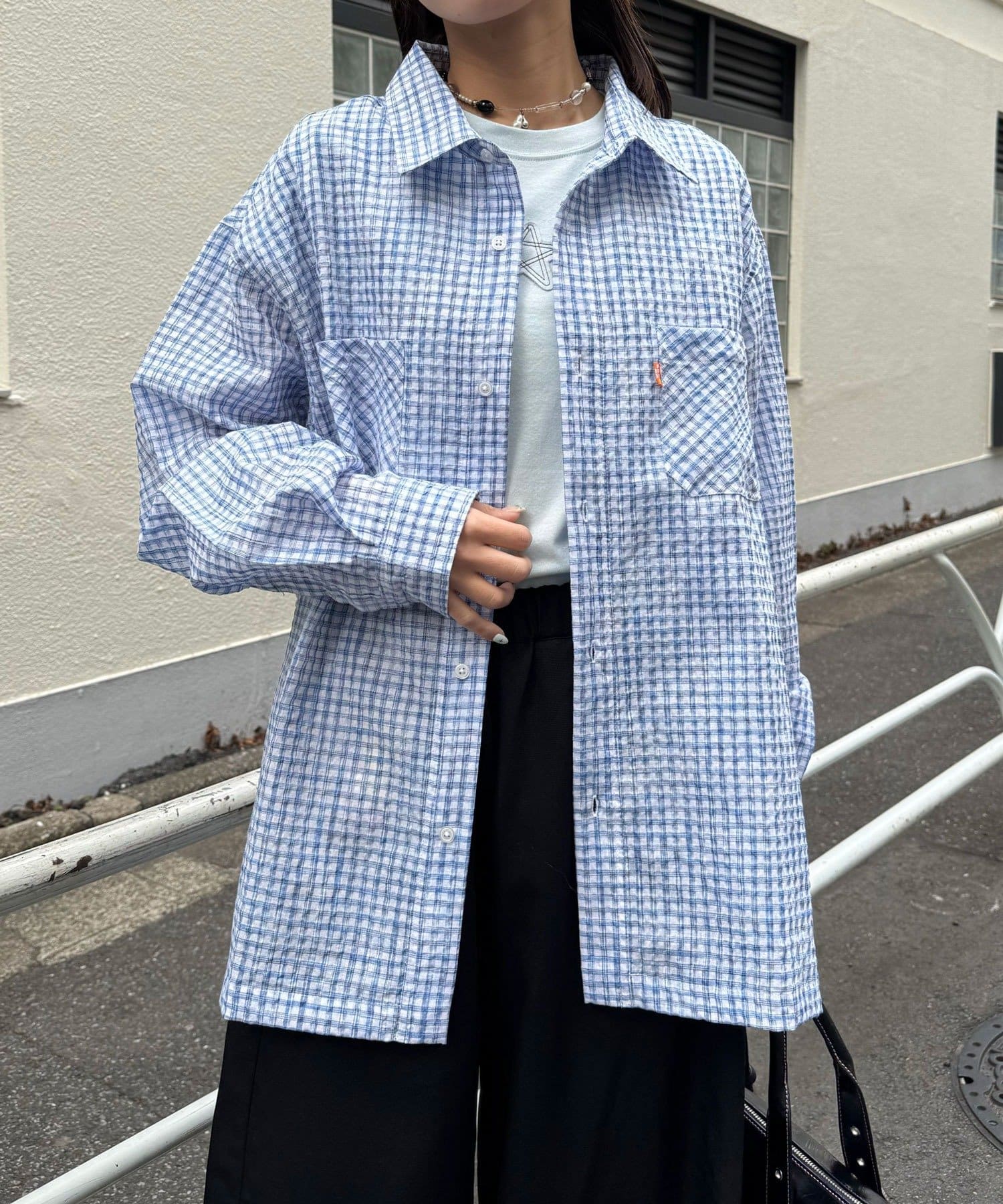 【♡15で1500円OFFクーポン!?】チェックサッカー長袖シャツ