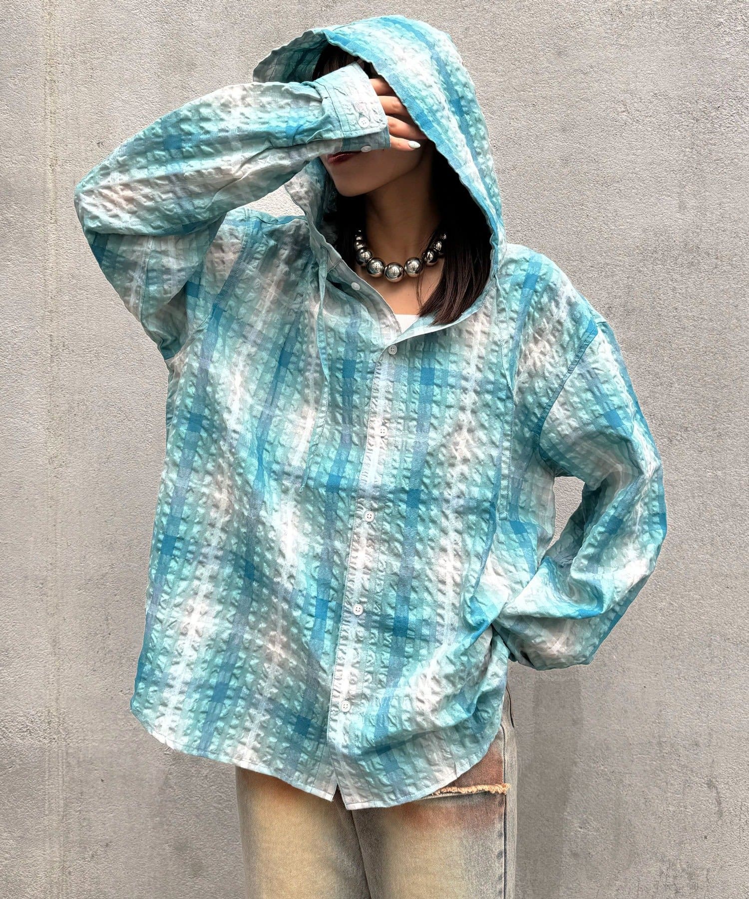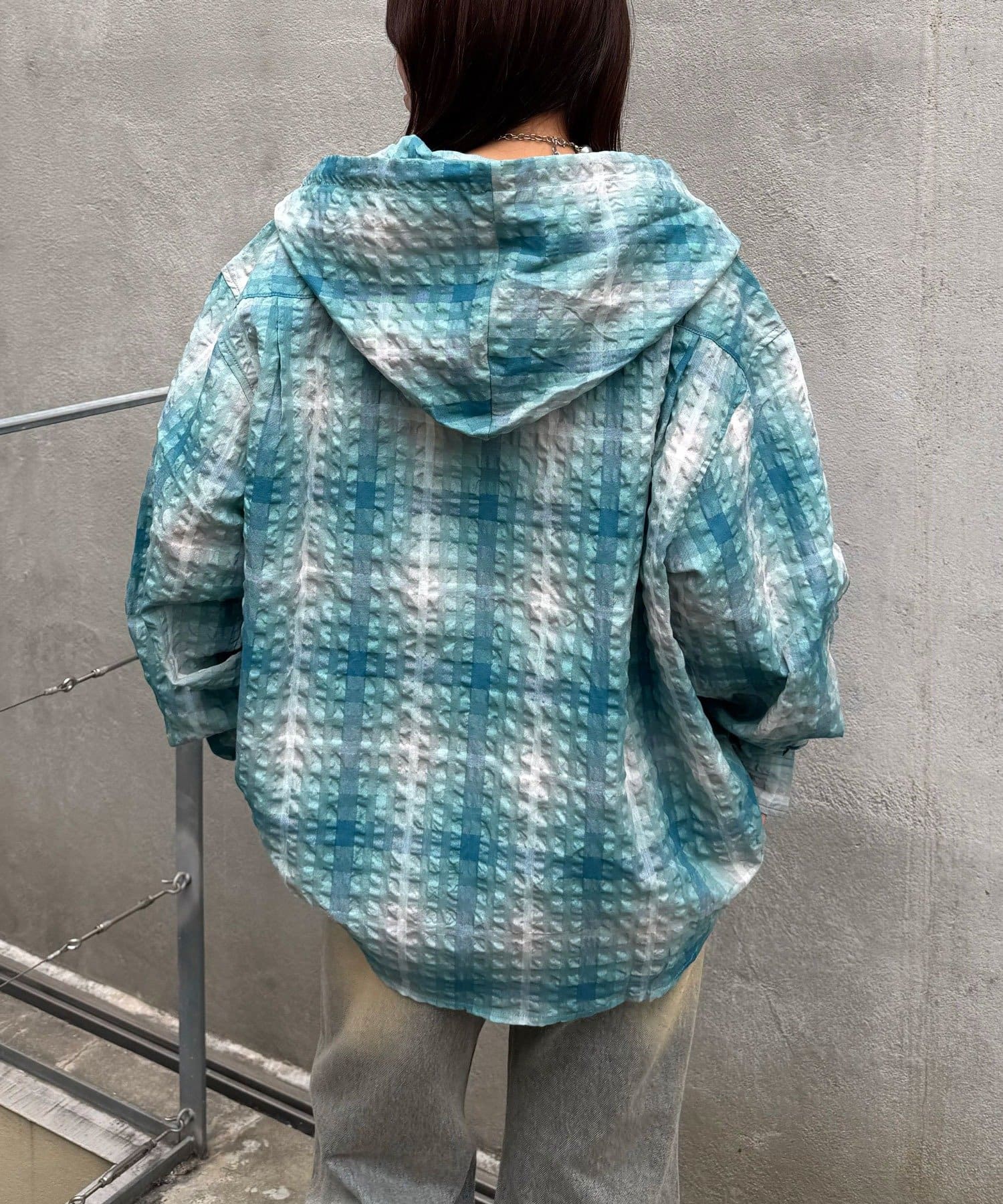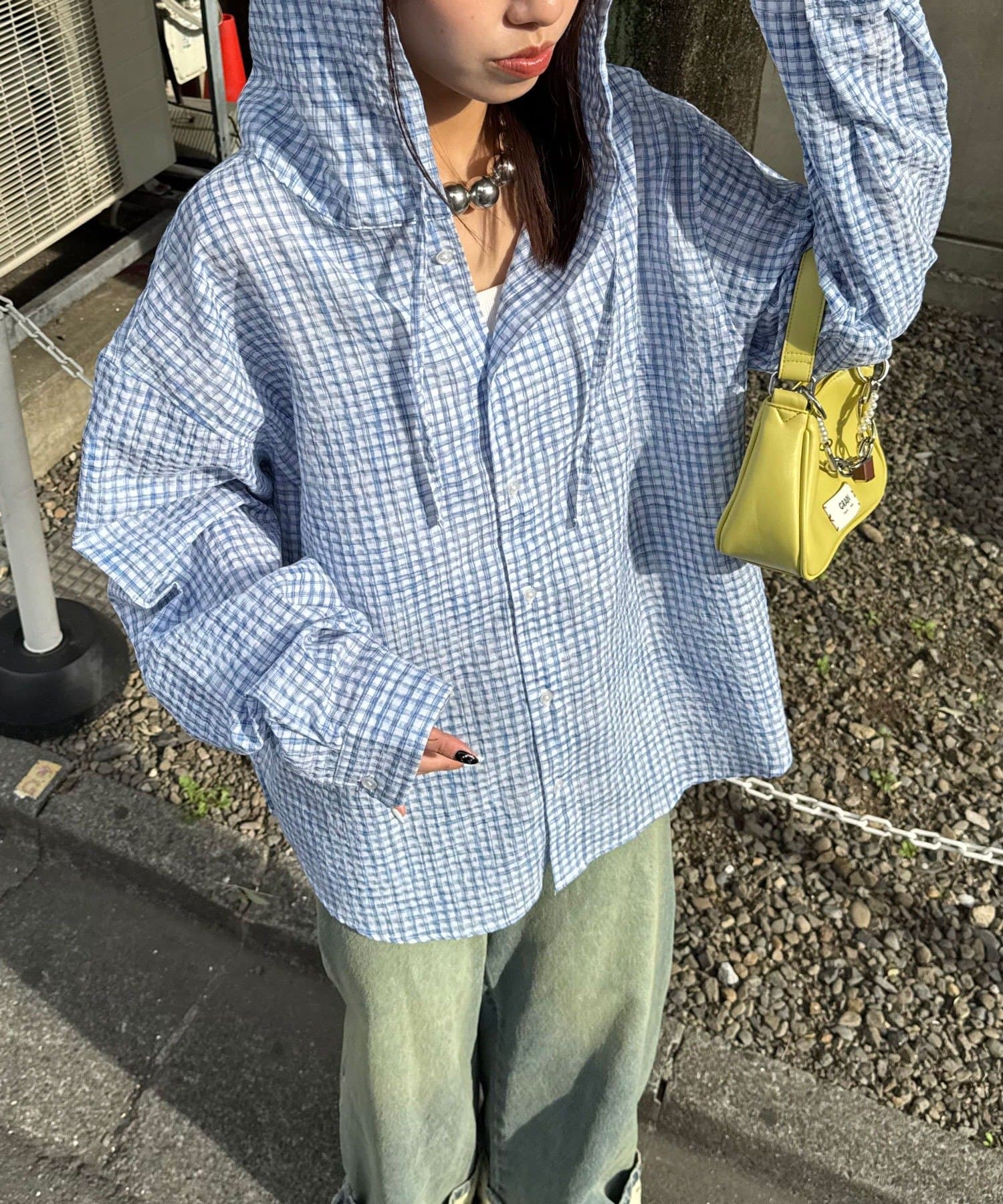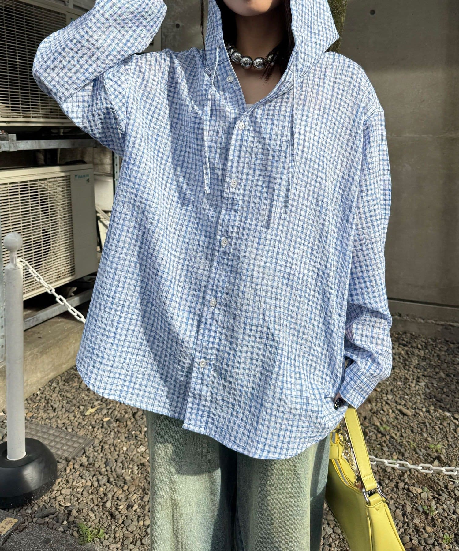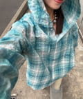 さらりと羽織れるチェック柄フードシャツ