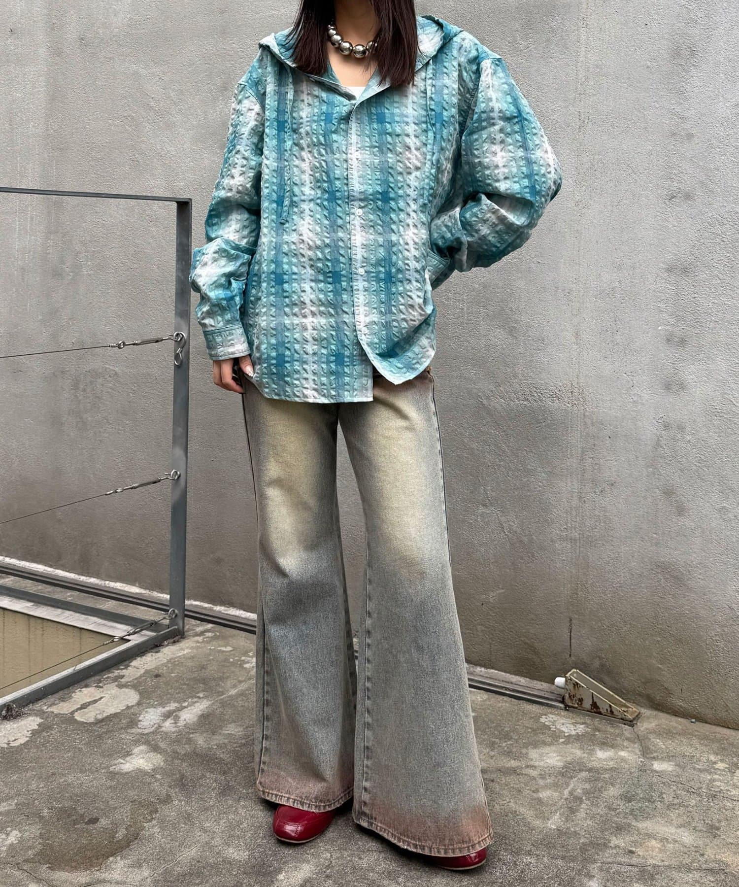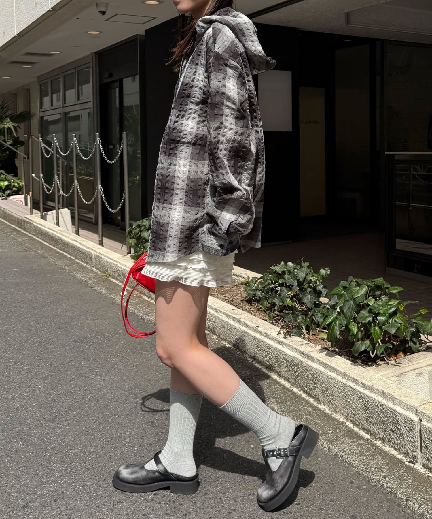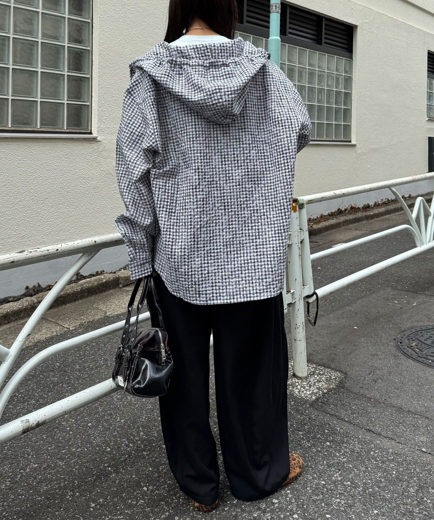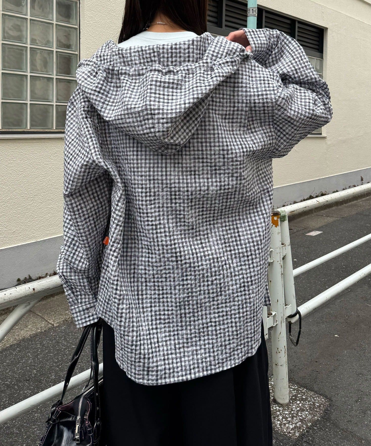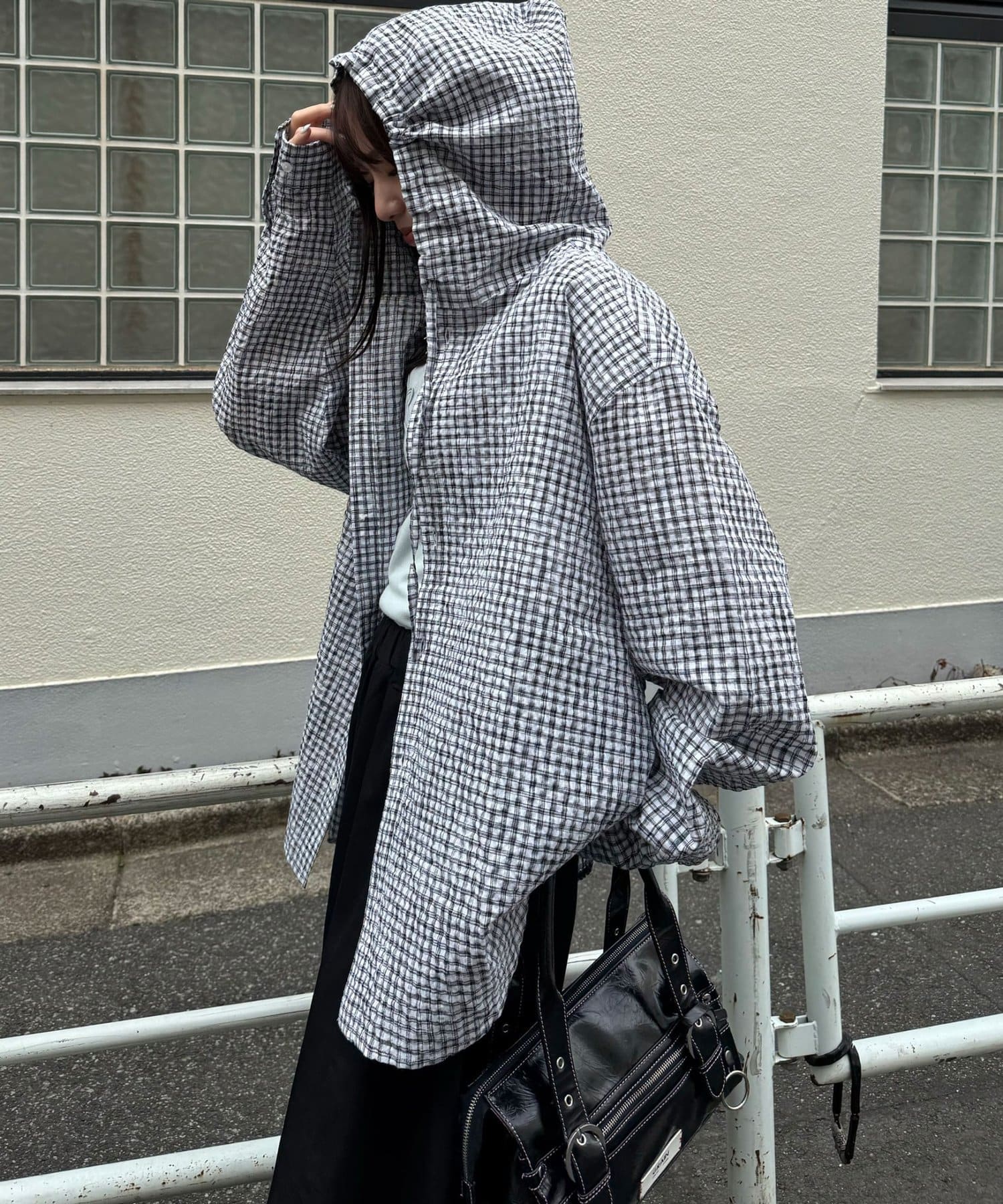 さらりと羽織れるチェック柄フードシャツ
