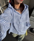 TOP > CIAOPANIC > レディース > トップス > シャツ/ブラウス(ボタン) > 【♡15で1500円OFFクーポン!?】チェックサッカー フードシャツ
