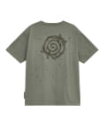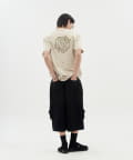 背面に施されたインパクトのあるアートワークが、バックスタイルに遊び心を加え、単調になりがちなTシャツスタイル特有の退屈さを解消しています。